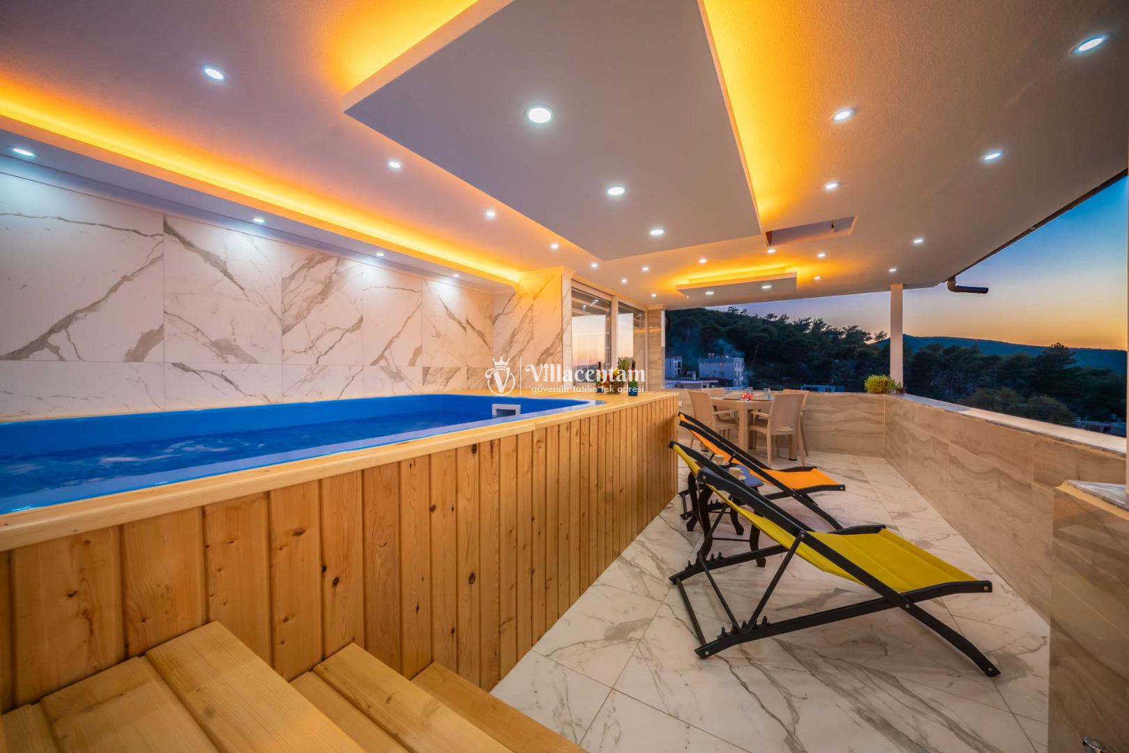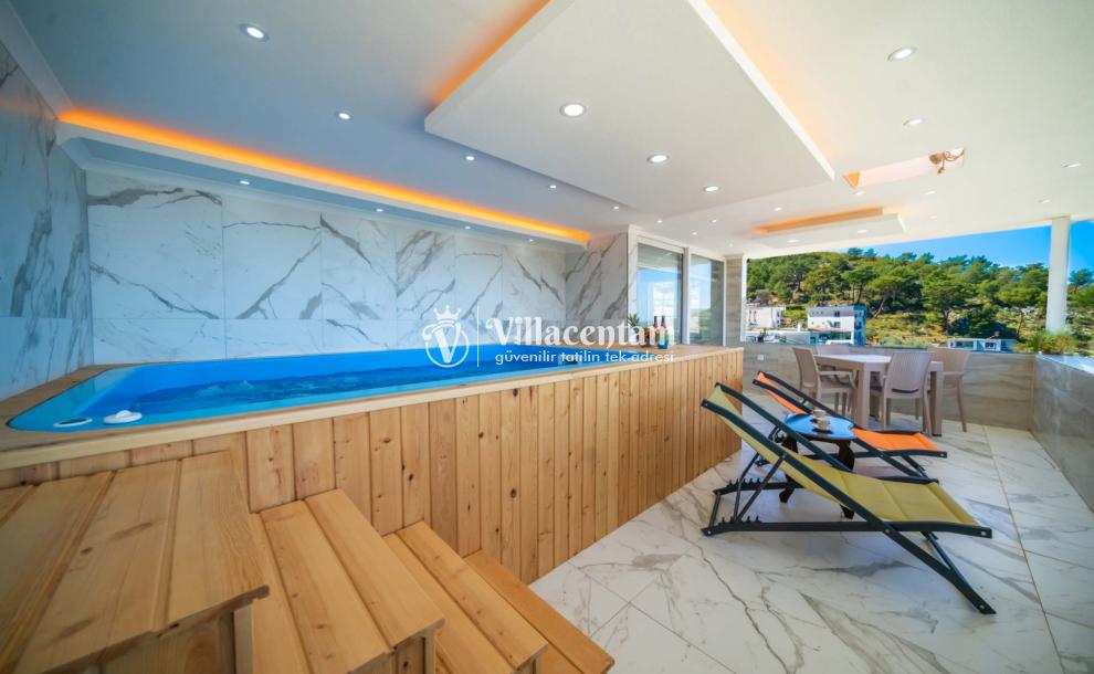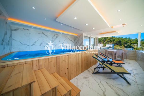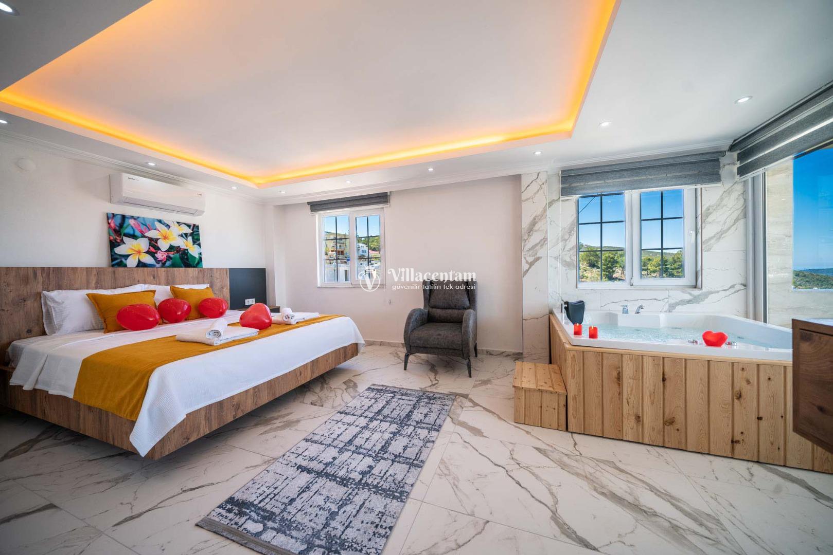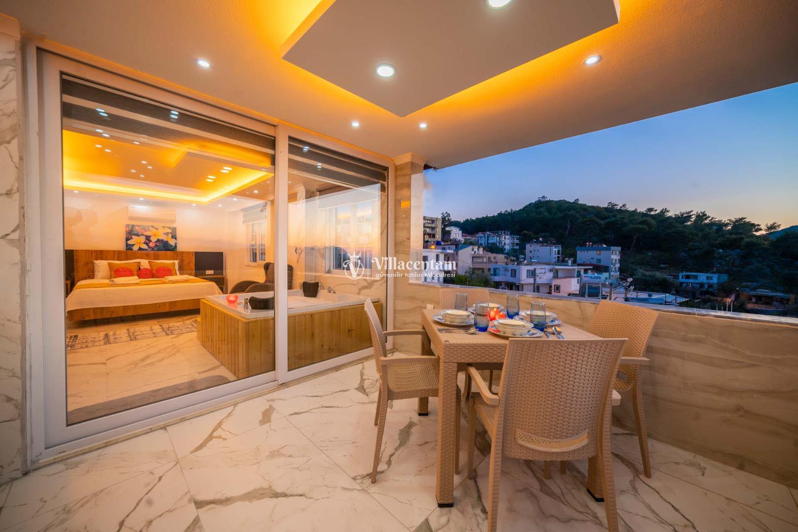 Suit Diana, Kalkan Akbel mevkiinde konumlanan modern tasarımı, ferah yaşam alanları ve üst segment donanımıyla 4 kişilik suit, ailenizle ya da arkadaş grubunuzla konforlu ve keyifli bir konaklama deneyimi sunar. Geniş metrekareye sahip bu özel suit; rahat yatak odaları, şık oturma alanı ve fonksiyonel detaylarıyla ev konforunu tatilde yaşatır. Suit içerisinde özel banyo, konforlu yataklar, klima, TV ve ihtiyaç duyabileceğiniz tüm donanımlar yer alır. Günün yorgunluğunu atabileceğiniz jakuzili veya balkonlu/teraslı seçenekleriyle tatilinize ayrıcalık katar. Sessiz ve huzurlu atmosferi sayesinde hem dinlenmek hem de keyifli anlar biriktirmek isteyen misafirler için idealdir.