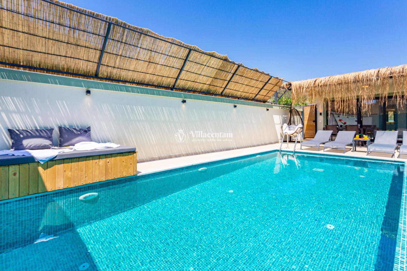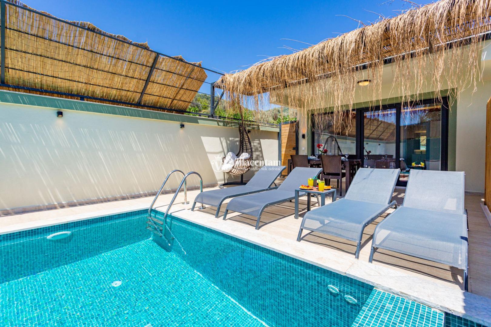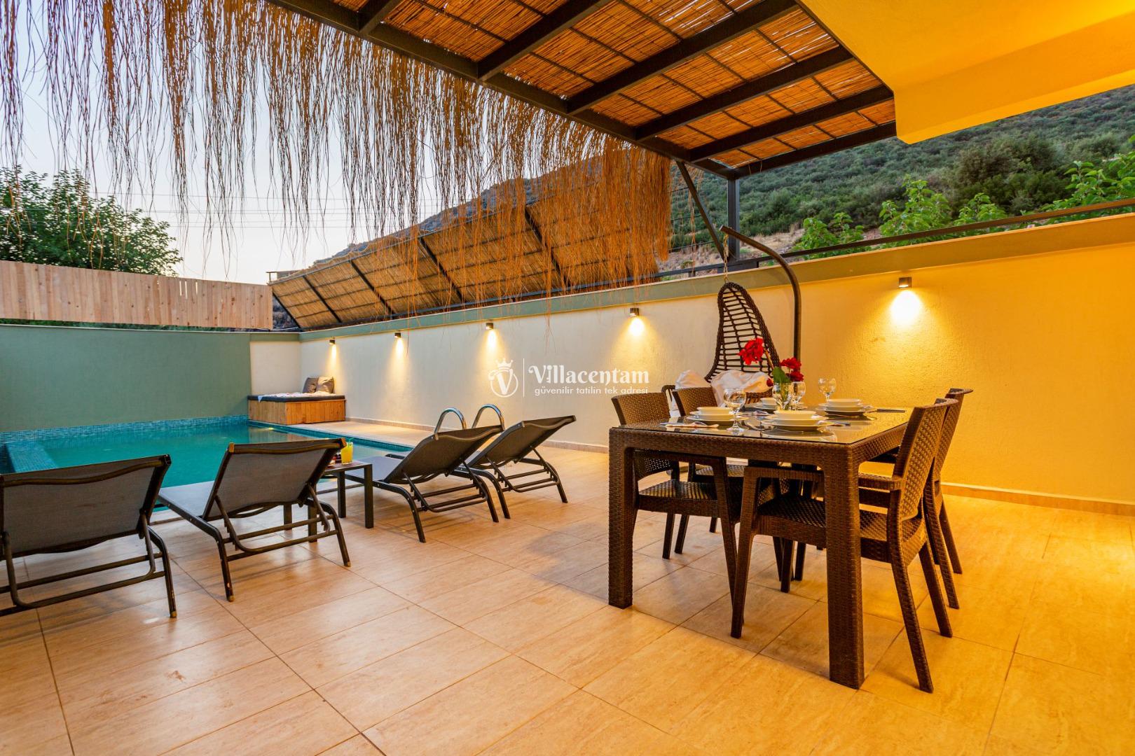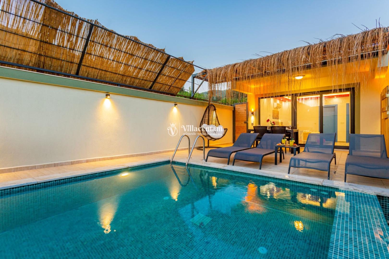 Suit Fırzaz, Kalkan Yeşilköy mevkiinde konumlanan 2 yatak odalı 4 kişi konaklama kapasitesine sahip konfor ve lüksün bir araya geldiği Özel Havuzlu & Jakuzili Suit, sevdiklerinizle unutulmaz bir konaklama deneyimi yaşamanız için özel olarak tasarlanmıştır. Modern mimarisi, geniş yaşam alanı ve tamamen size ait özel havuzu ile hem keyif hem de mahremiyet sunar.