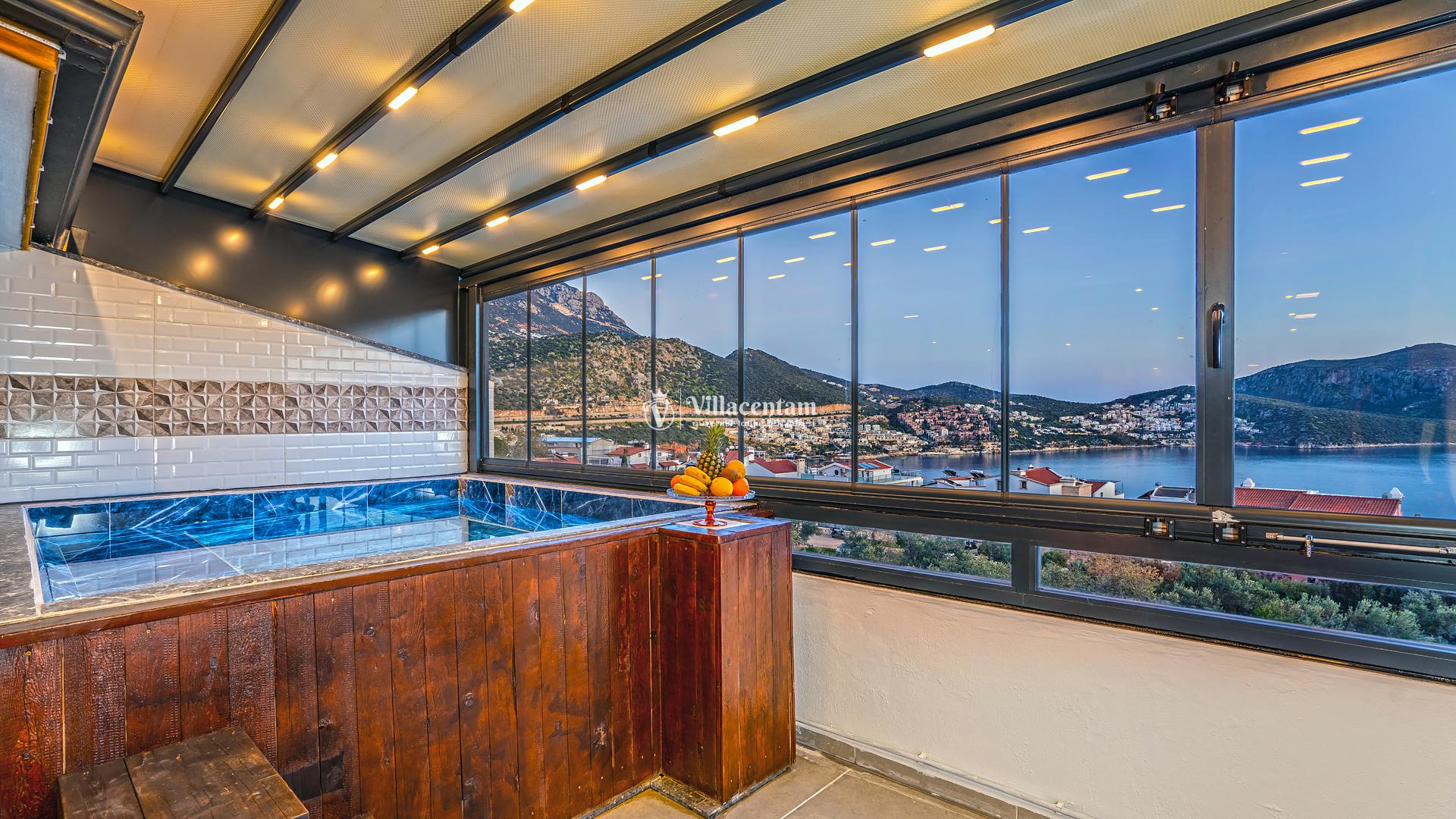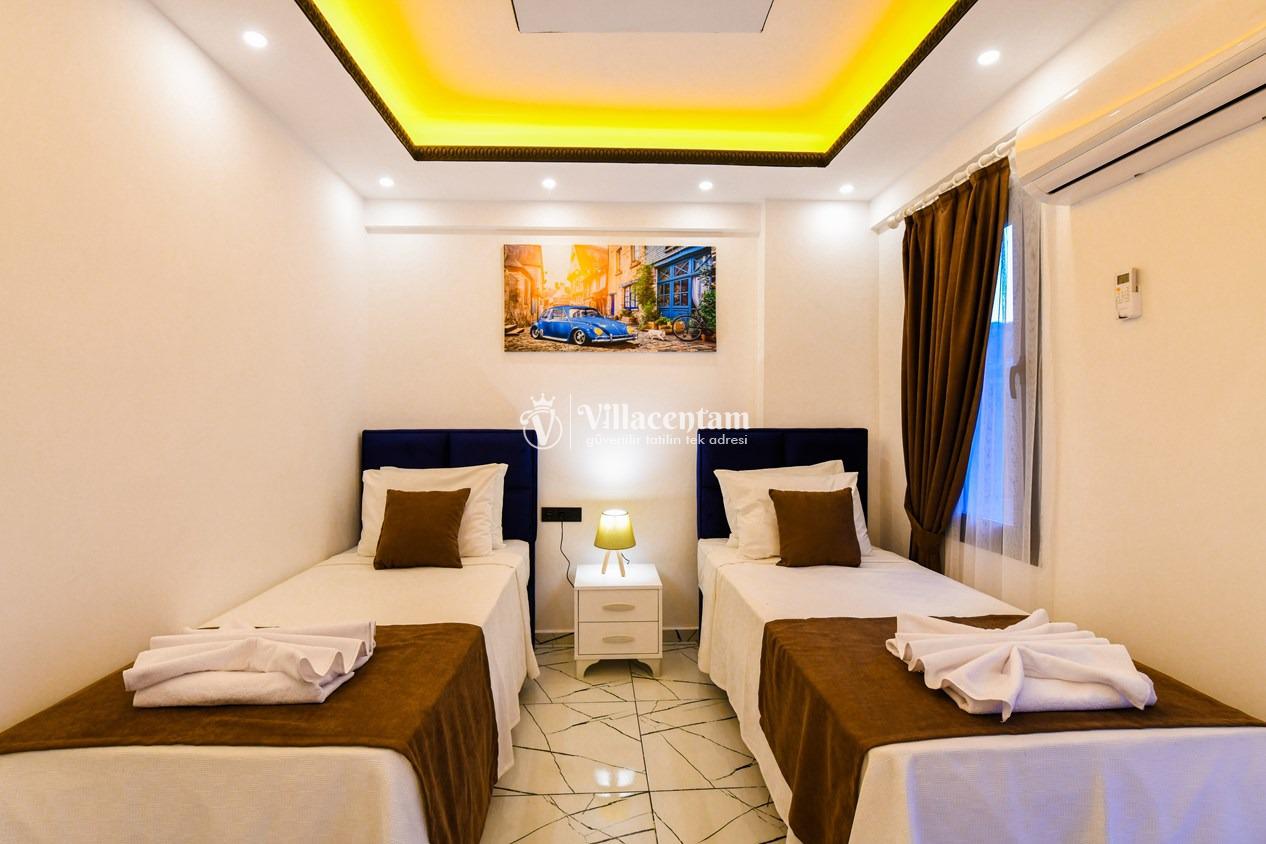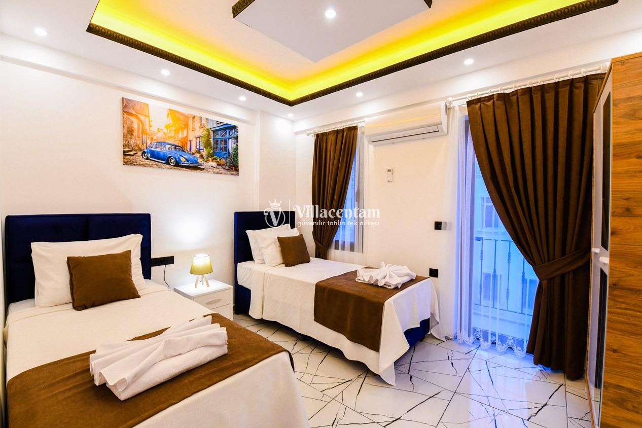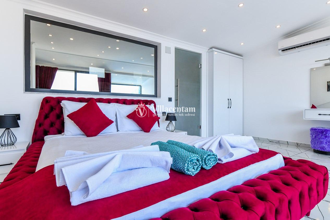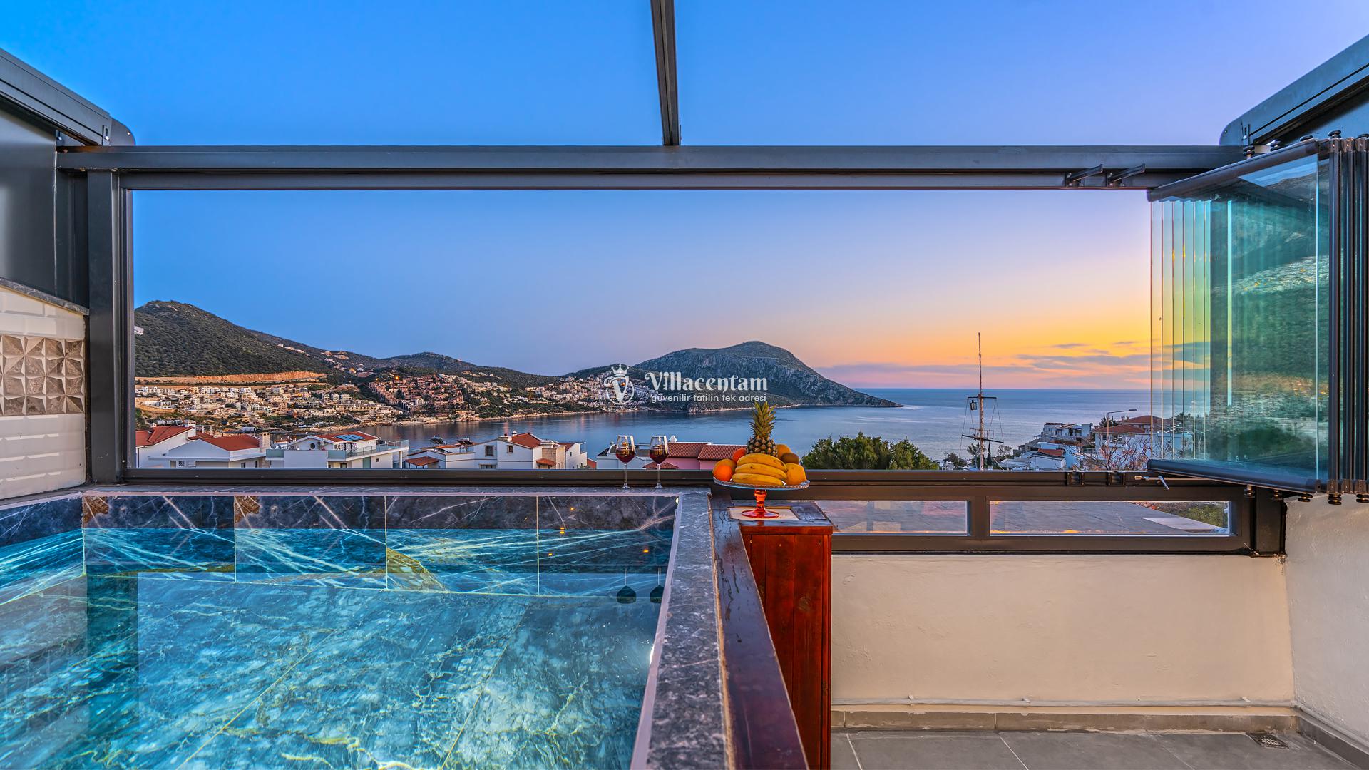 Kalkan Merkez de konumlanmakta olan Suit Manzara 1, masmavi deniz manzarasına hakim kiralık dairelemiz arasında yer almaktadır. Yazlık dairemiz 2 katlı bir binanın teras katında yer almaktadır. Şık ve konforlu bir şekilde dekore edilen kiralık dairemizde 2 adet yatak odası bulunmakta olup, 4 kişiye konaklama imkanı sağlamaktadır. Özellikle balayı çiftlerimize ve çekirdek ailelere hitap eden yazlık dairemizin terasında havuz bulunmaktadır. Yatak odalarının bir tanesinin banyo ve tuvaleti odanın dış kısmında ortak kullanım olarak yer almaktadır. Sessizlik ve sakinlik içerisinde keyif dolu bir tatil için Suit Manzara 1’ i tercih edebilirsiniz.