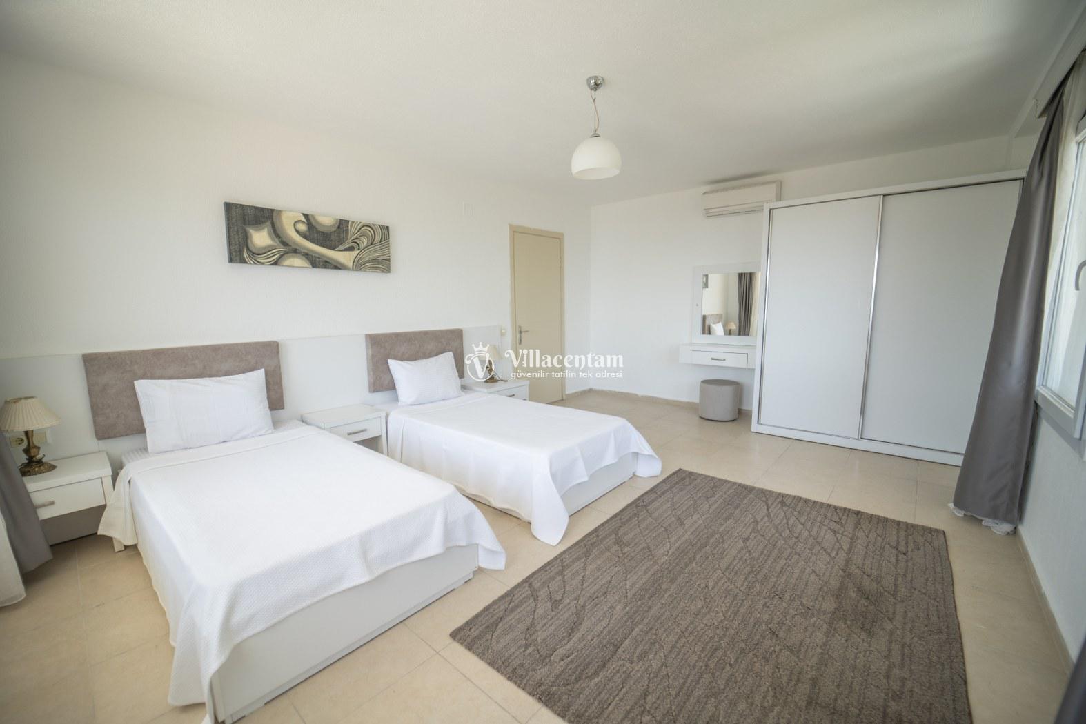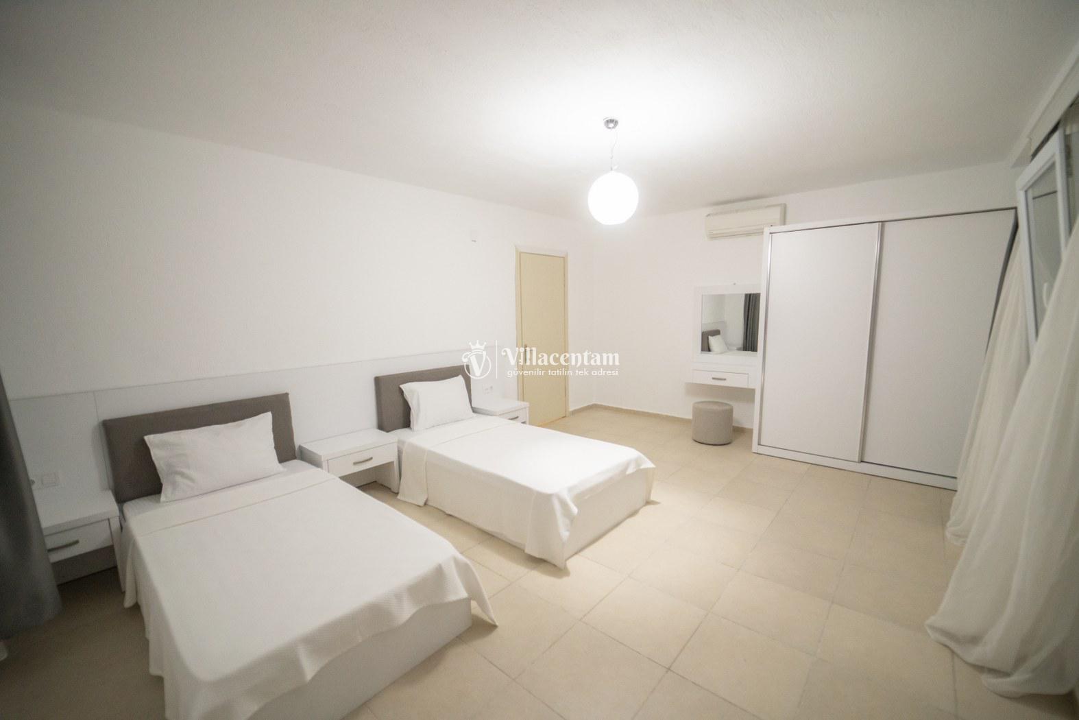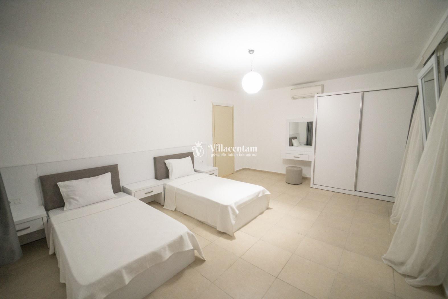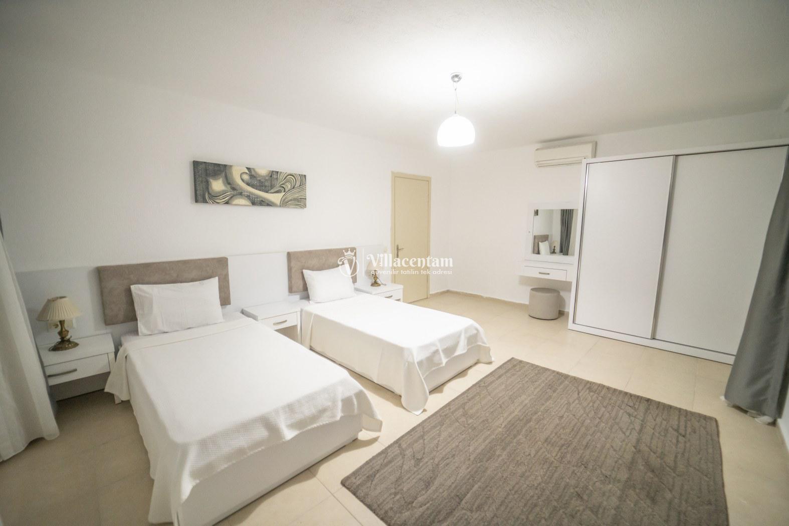 *Villalarda sıcak su için güneş enerjili su ısıtma sistemleri kullanılmaktadır. Çok yoğun sıcak su kullanımında, yoğunluğa ve su tankının büyüklüğüne bağlı olarak su tankında sıcak su tükenebilmekte ve tekrar suyun ısınması için belirli bir süre geçmesi gerekmektedir. Bu not sadece bu villa ile ilgili değil, tüm villalarımız için geçerli bir durumdur.