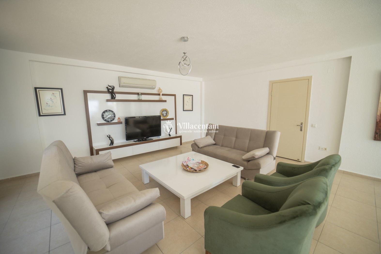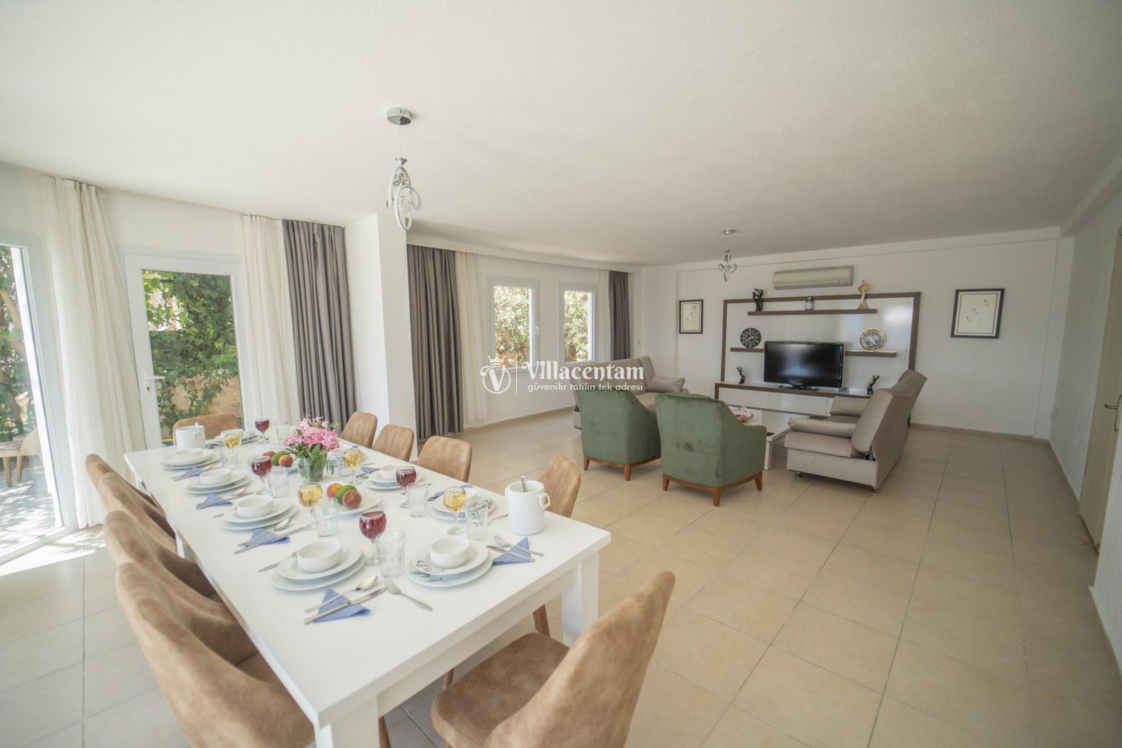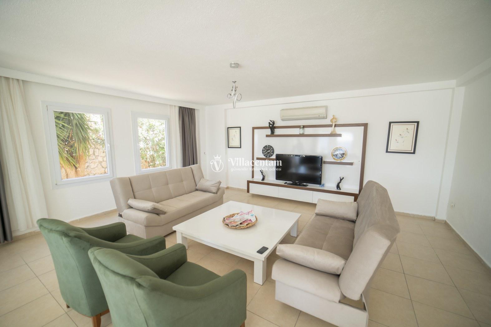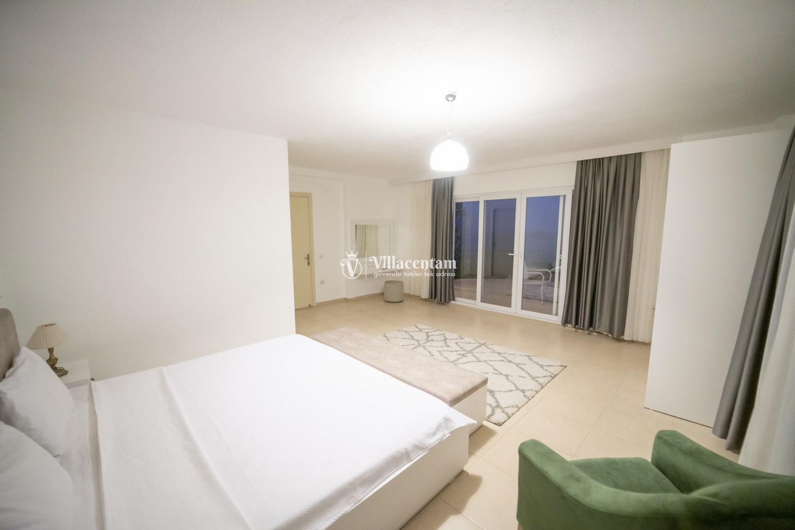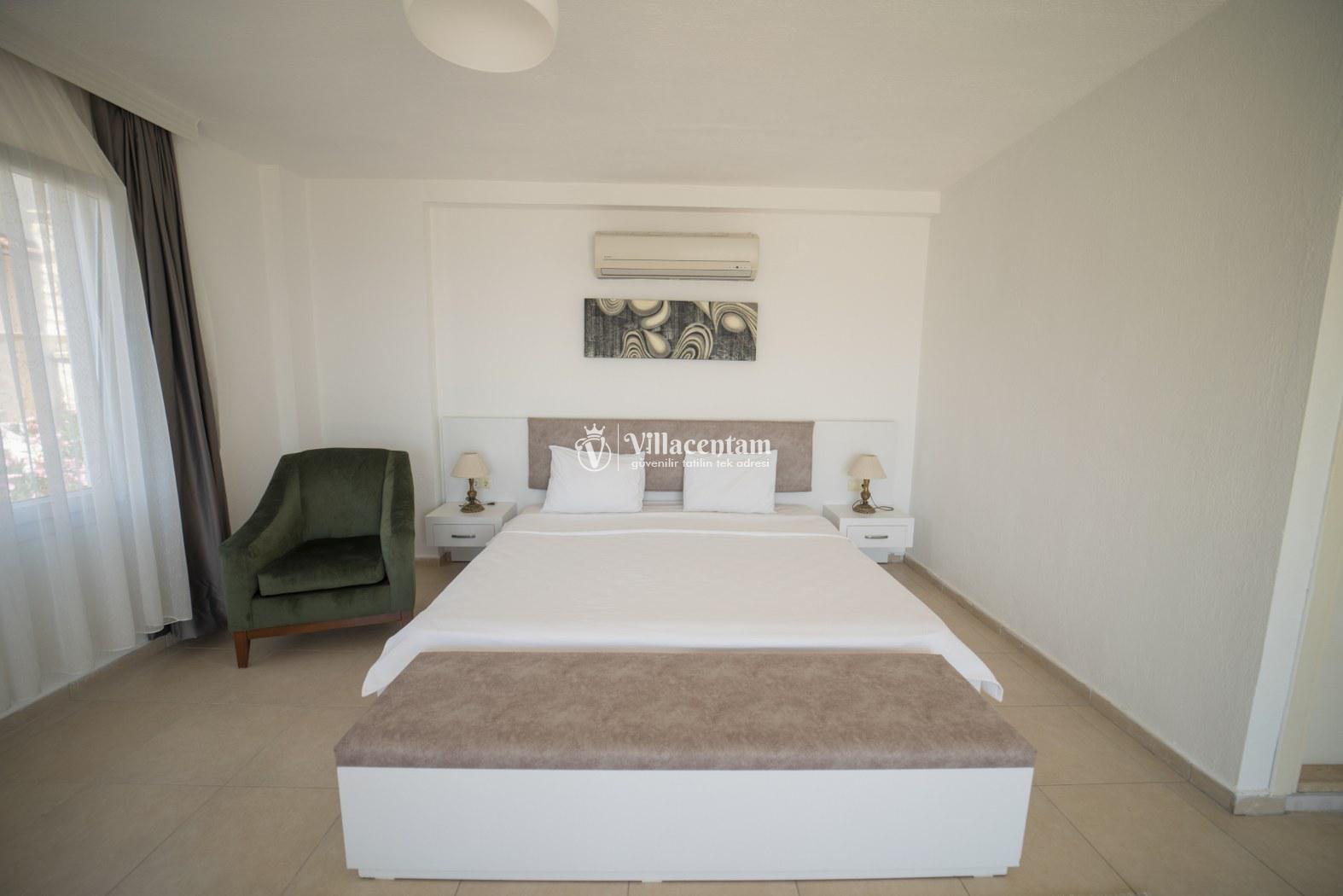 *Villalarda sıcak su için güneş enerjili su ısıtma sistemleri kullanılmaktadır. Çok yoğun sıcak su kullanımında, yoğunluğa ve su tankının büyüklüğüne bağlı olarak su tankında sıcak su tükenebilmekte ve tekrar suyun ısınması için belirli bir süre geçmesi gerekmektedir. Bu not sadece bu villa ile ilgili değil, tüm villalarımız için geçerli bir durumdur.