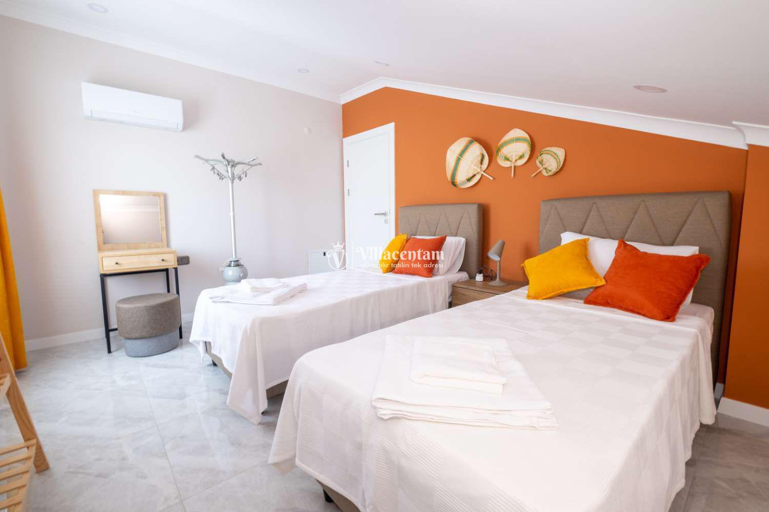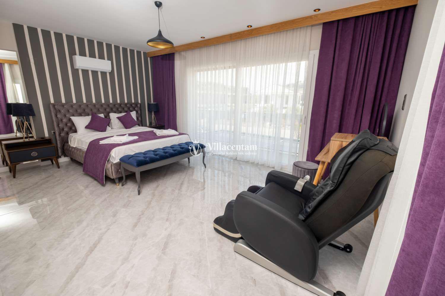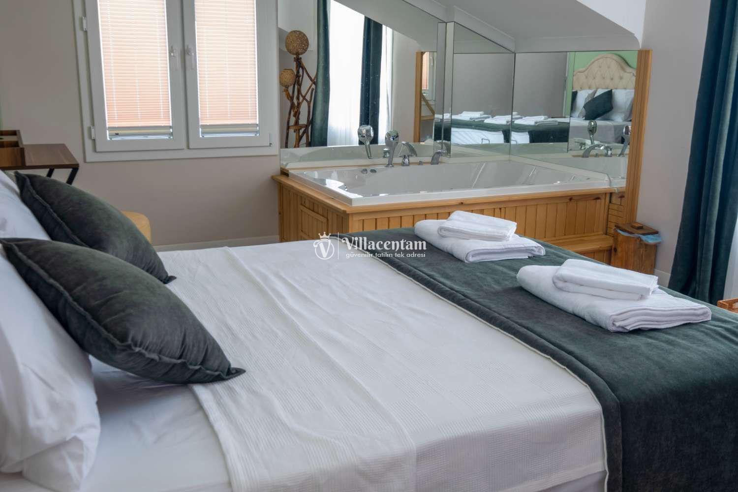 Villanın en dikkat çekici özelliklerinden biri, bazı yatak odalarında jakuzi bulunmasıdır. Ayrıca 5 yatak odası ve 4 banyo düzeniyle hem geniş aileler hem de arkadaş grupları için ideal bir tatil seçeneğidir.