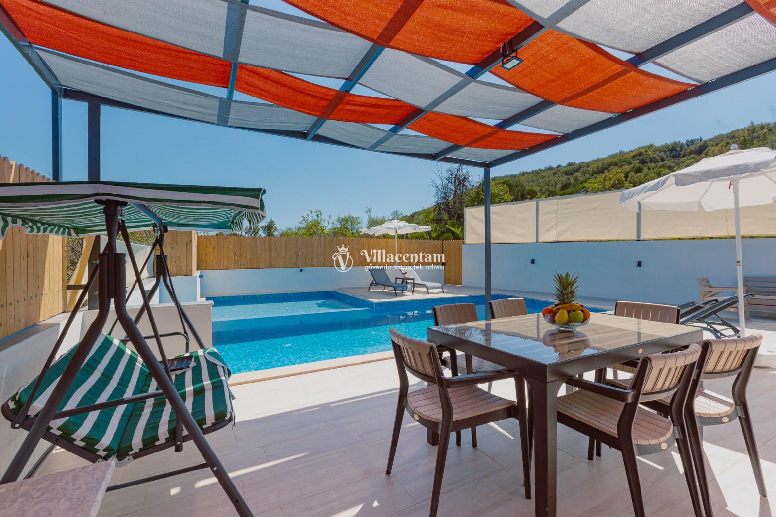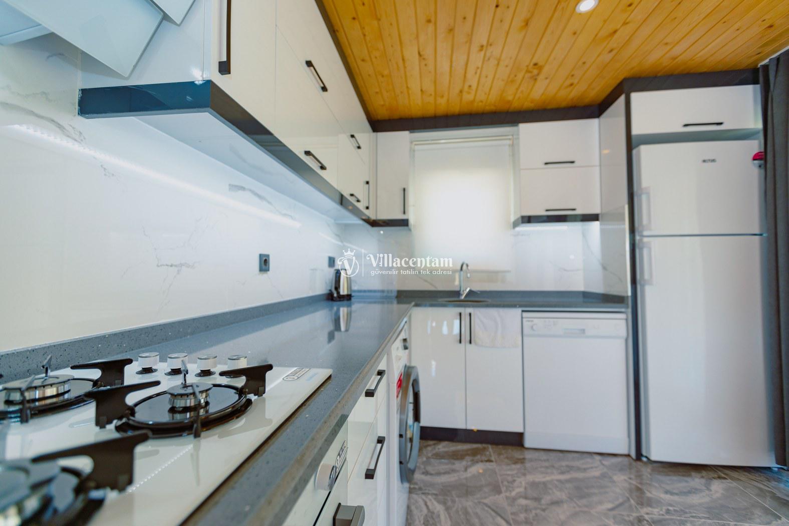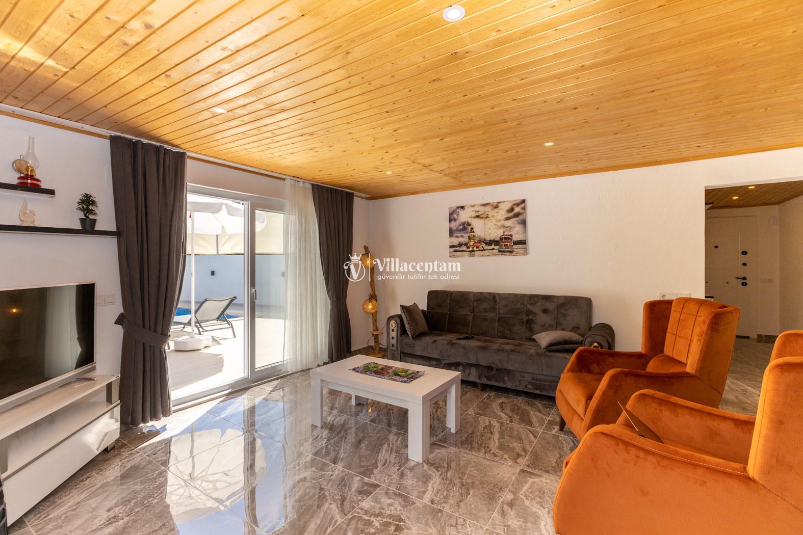 Villa modern ve konforlu bir anlayışla dekore edilmiştir. Ferah salonu, kullanışlı mutfağı ve rahat yaşam alanları sayesinde misafirlerine ev konforunda bir tatil imkânı sunar. Villaya ait özel yüzme havuzu ve bahçe alanı, gün boyu keyifli vakit geçirmenize olanak tanır. Şezlonglar ve dış mekân oturma alanı sayesinde açık havada dinlenebilir, sevdiklerinizle huzurlu anlar yaşayabilirsiniz.