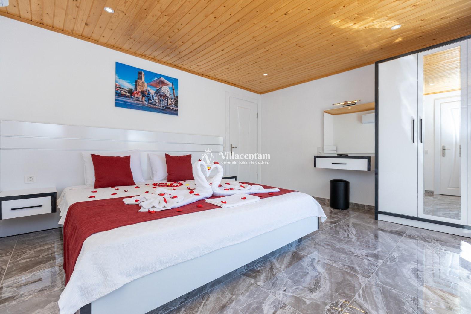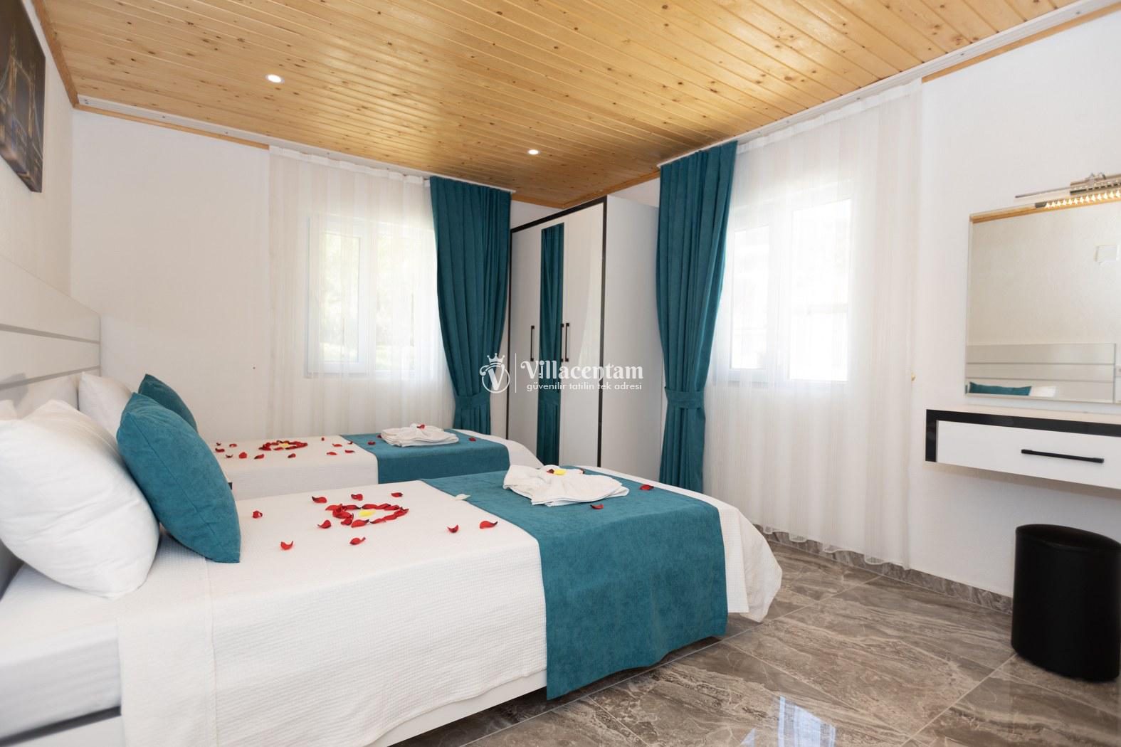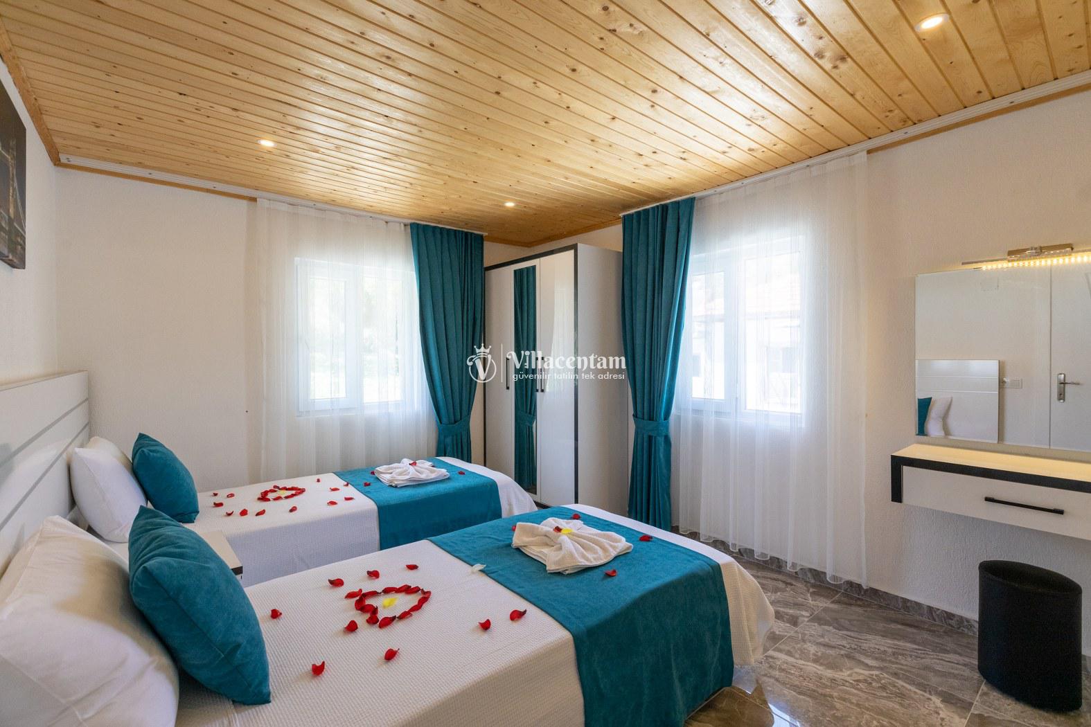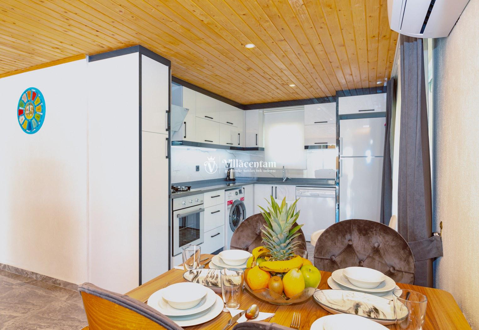 Villa modern ve konforlu bir anlayışla dekore edilmiştir. Ferah salonu, kullanışlı mutfağı ve rahat yaşam alanları sayesinde misafirlerine ev konforunda bir tatil imkânı sunar. Villaya ait özel yüzme havuzu ve bahçe alanı, gün boyu keyifli vakit geçirmenize olanak tanır. Şezlonglar ve dış mekân oturma alanı sayesinde açık havada dinlenebilir, sevdiklerinizle huzurlu anlar yaşayabilirsiniz.