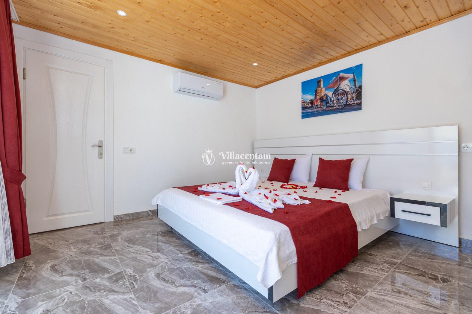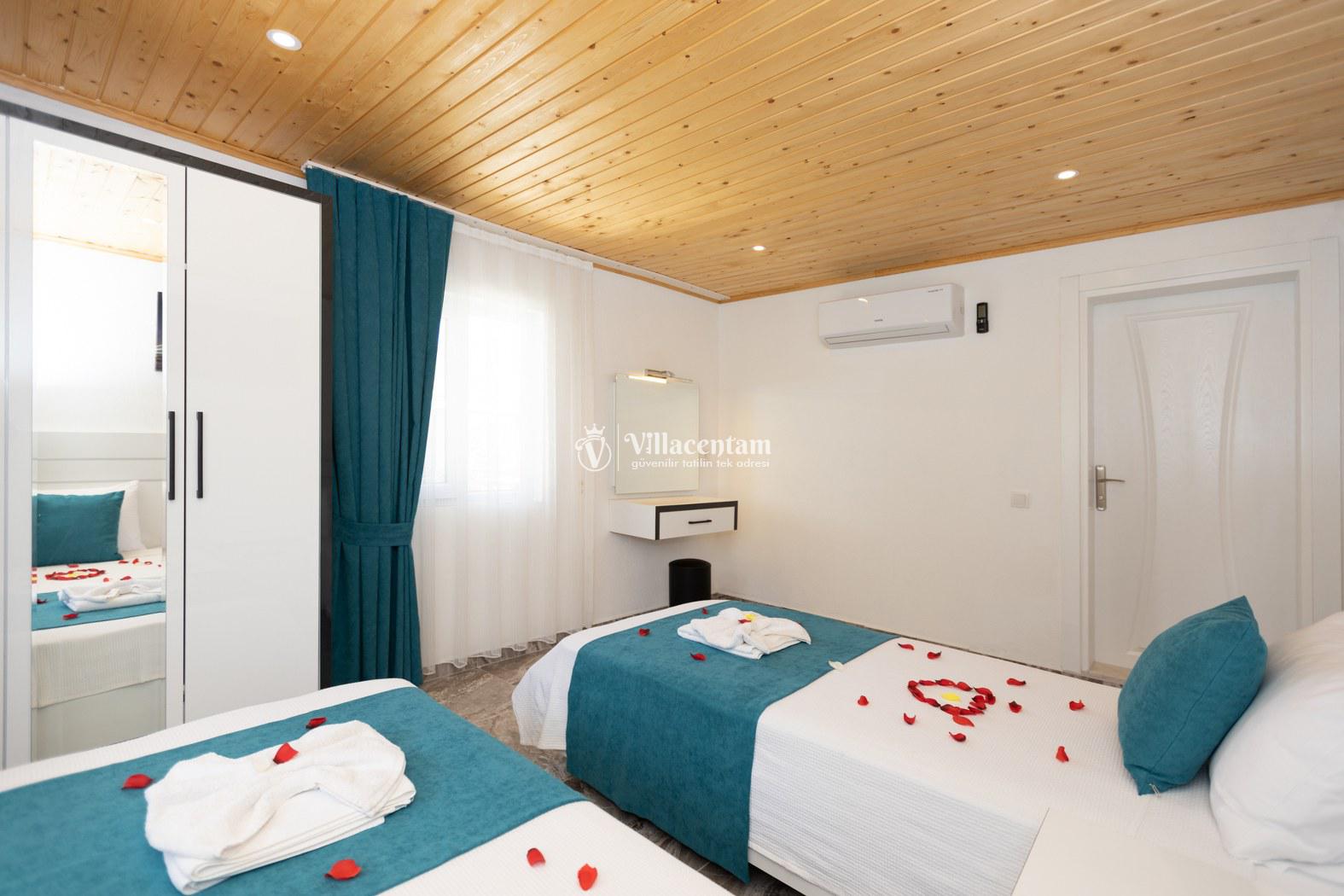 *Villalarda sıcak su için güneş enerjili su ısıtma sistemleri kullanılmaktadır. Çok yoğun sıcak su kullanımında, yoğunluğa ve su tankının büyüklüğüne bağlı olarak su tankında sıcak su tükenebilmekte ve tekrar suyun ısınması için belirli bir süre geçmesi gerekmektedir. Bu not sadece bu villa ile ilgili değil, tüm villalarımız için geçerli bir durumdur.