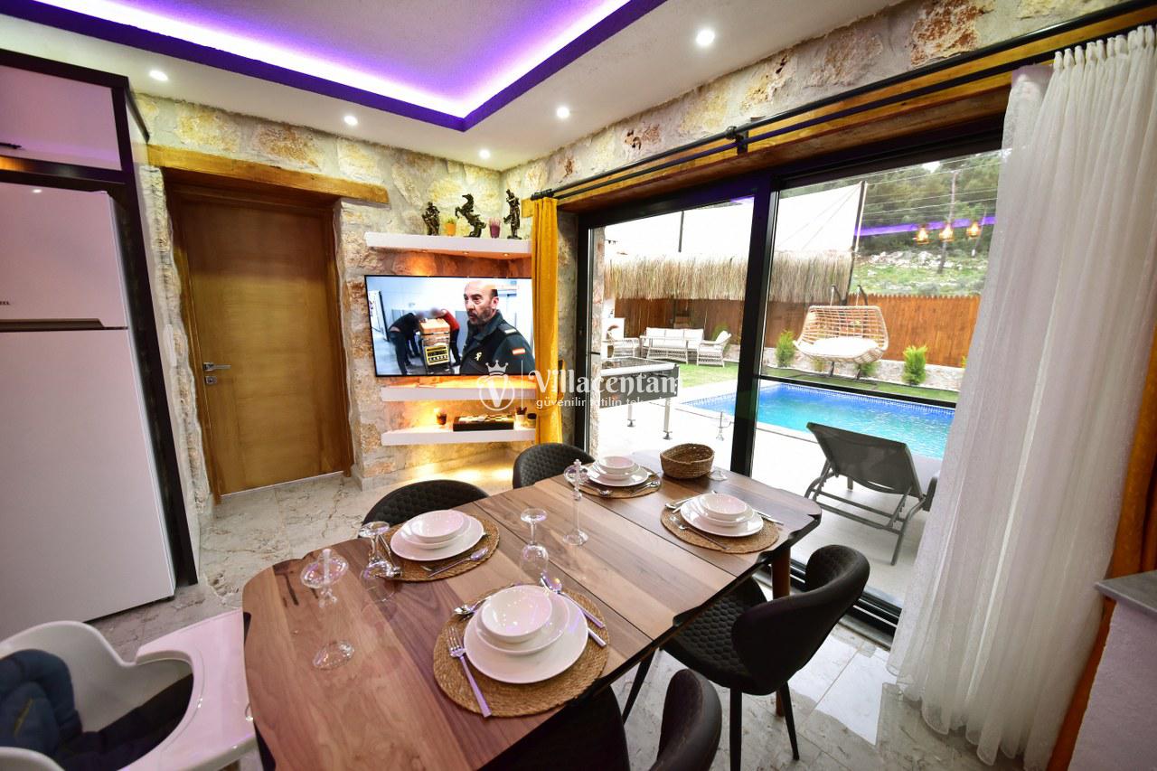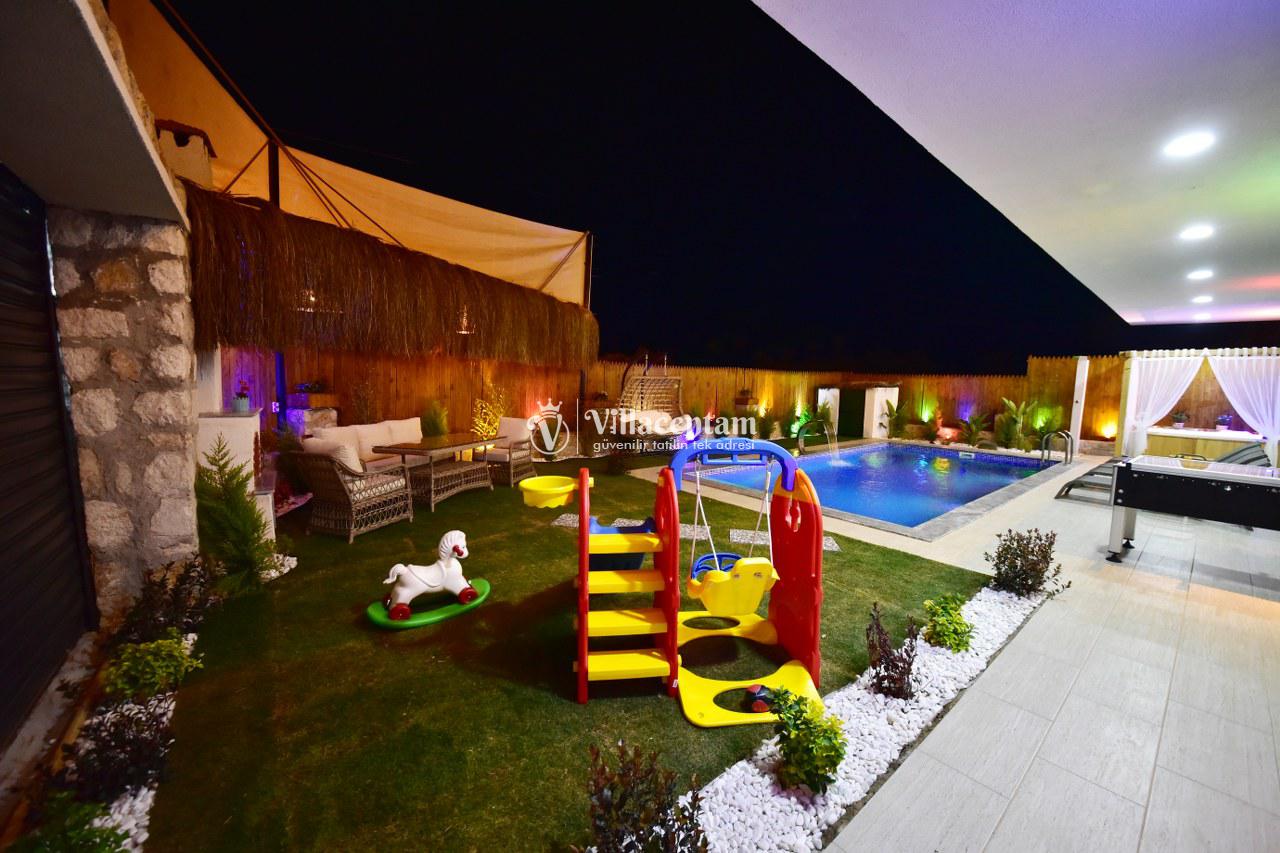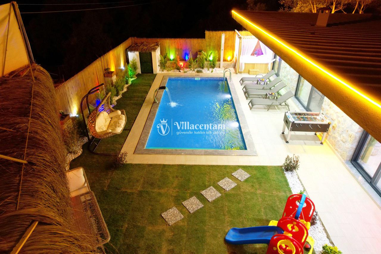 Villa Afitap, Kalkan Akbel mevkiinde konumlanmakta olan yeşilliklerle kaplı doğa manzarasına hakim kiralık villalarımız arasında yer almaktadır. Şık ve konforlu bir şekilde dekore edilen yazlık villamızda 2 adet yatak odası bulunmakta olup, 4 kişiye konaklama imkanı sağlamaktadır. Her bir detayın en ince ayrıntısına kadar düşünüldüğü kiralık villamızın dış özel yüzme havuzu bulunmaktadır. Ayrıca havuz terasının hemen yanında açık jakuzide yer almaktadır. Havuz ve havuz terası korunaklı hale getirilen kiralık villamızı muhafazakar aileler ve balayı çiftleri rahatlıkla tercih edebilirler. Tatilinizi eğlenceli kılabilmek adına villamızın havuz terasında langırt ve çocuklar için mini oyun parkı bulunmaktadır. Hayallerinizin de ötesinde muhteşem bir yazlık villada tatil için Villa Afitap’ ı tercih edebilirsiniz.