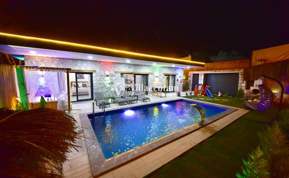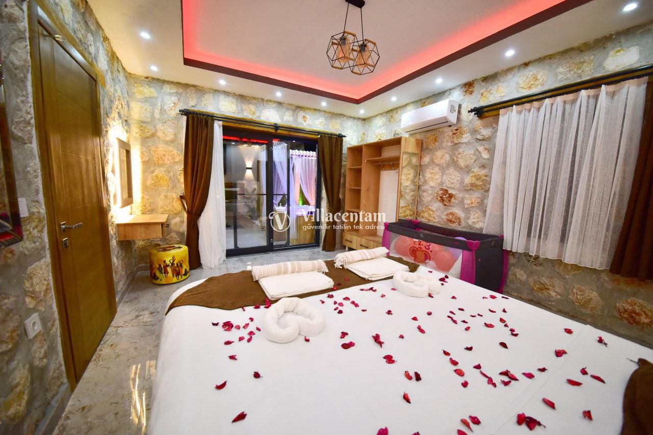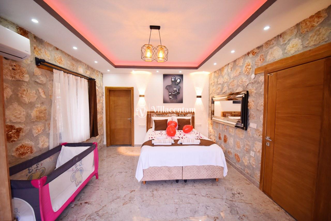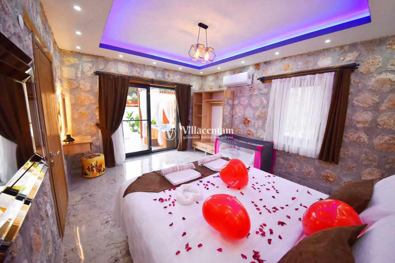 Villa Afitap, Kalkan Akbel mevkiinde konumlanmakta olan yeşilliklerle kaplı doğa manzarasına hakim kiralık villalarımız arasında yer almaktadır. Şık ve konforlu bir şekilde dekore edilen yazlık villamızda 2 adet yatak odası bulunmakta olup, 4 kişiye konaklama imkanı sağlamaktadır. Her bir detayın en ince ayrıntısına kadar düşünüldüğü kiralık villamızın dış özel yüzme havuzu bulunmaktadır. Ayrıca havuz terasının hemen yanında açık jakuzide yer almaktadır. Havuz ve havuz terası korunaklı hale getirilen kiralık villamızı muhafazakar aileler ve balayı çiftleri rahatlıkla tercih edebilirler. Tatilinizi eğlenceli kılabilmek adına villamızın havuz terasında langırt ve çocuklar için mini oyun parkı bulunmaktadır. Hayallerinizin de ötesinde muhteşem bir yazlık villada tatil için Villa Afitap’ ı tercih edebilirsiniz.
