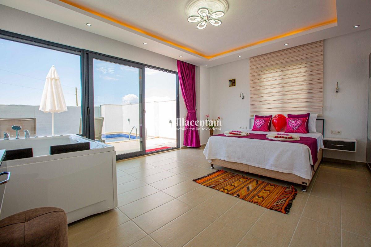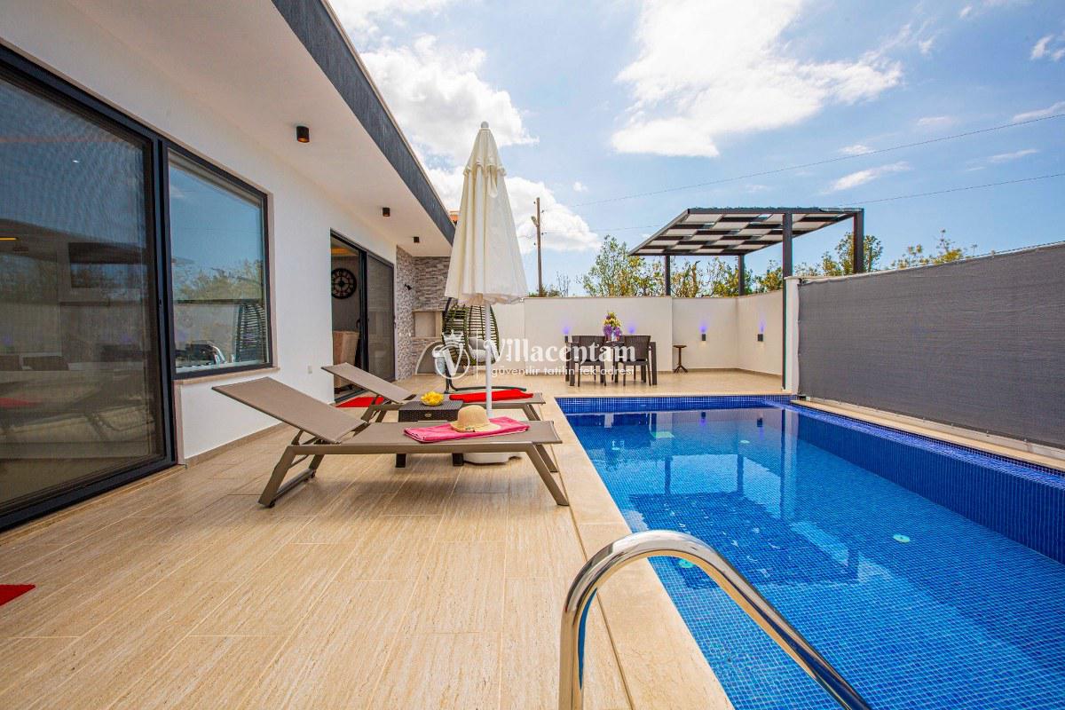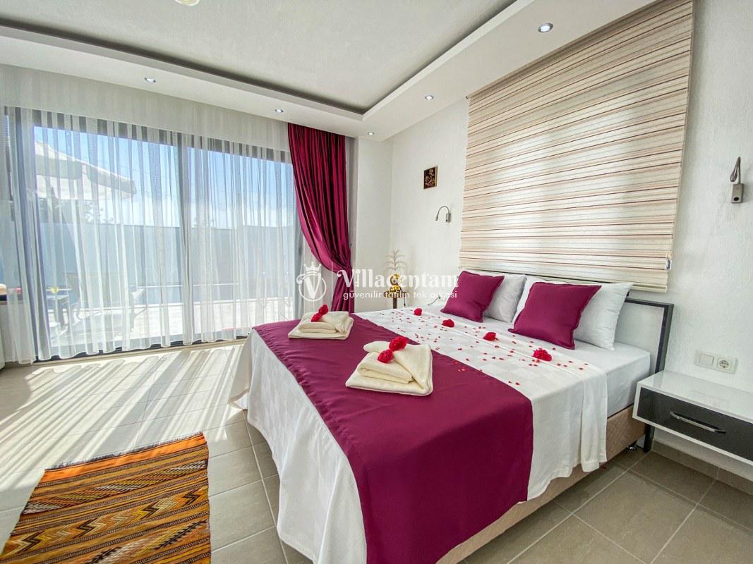 Villa Ahdem, Kalkan Üzümlü köyünde konumlanmakta olan, yeşilliklerin arasında doğa manzaralı kiralık bir villadır. Modern ve konforlu bir şekilde dizayn edilen yazlık villamızda 1 adet yatak odası bulunmakta olup, 2 kişiye konaklama imkanı sağlamaktadır. Yatak odasının içerisinde tüm yorgunluğunuzu atabileceğiniz jakuzi yer almaktadır. Özellikle balayı çiftlerimize hitap eden yazlık villamızın havuz ve havuz terası korunaklı hale getirilmiştir. Kiralık villamız dışarıdan gözükmemektedir. Muhafazakar çiftlerimiz de gönül rahatlığı ile tercih edebilirler. Sessizlik ve sakinlik içerisinde huzur dolu bir balayı tatili için Villa Gürel sizler için doğru bir tercih olacaktır.
