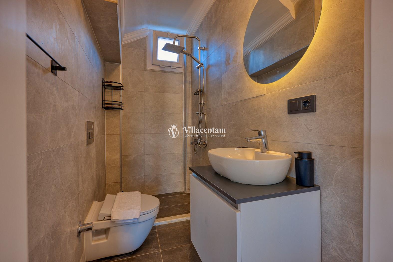 Villalarda sıcak su için güneş enerjili su ısıtma sistemleri kullanılmaktadır. Çok yoğun sıcak su kullanımında, yoğunluğa ve su tankının büyüklüğüne bağlı olarak su tankında sıcak su tükenebilmekte ve tekrar suyun ısınması için belirli bir süre geçmesi gerekmektedir. Bu not sadece bu villa ile ilgili değil, tüm villalarımız için geçerli bir durumdur