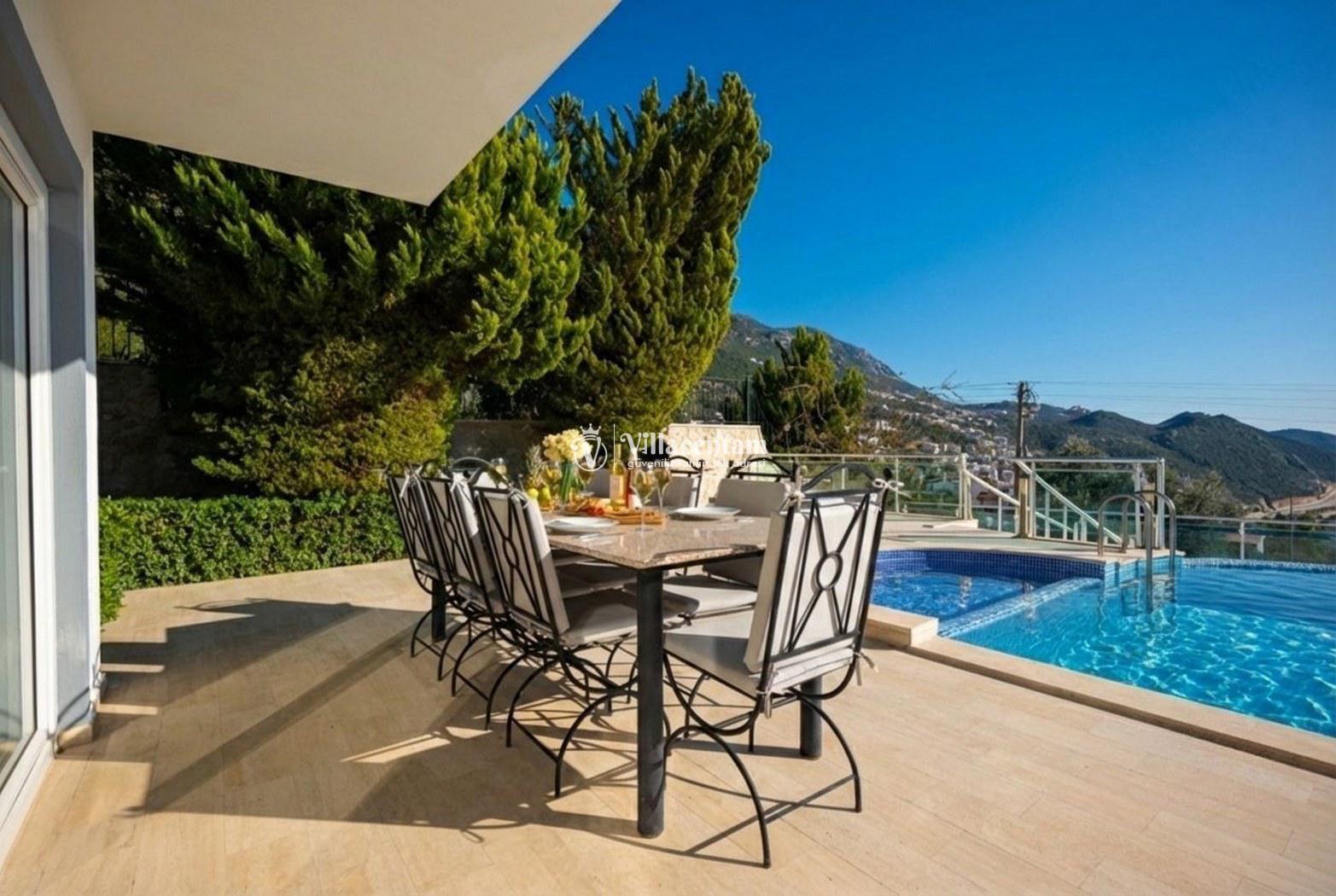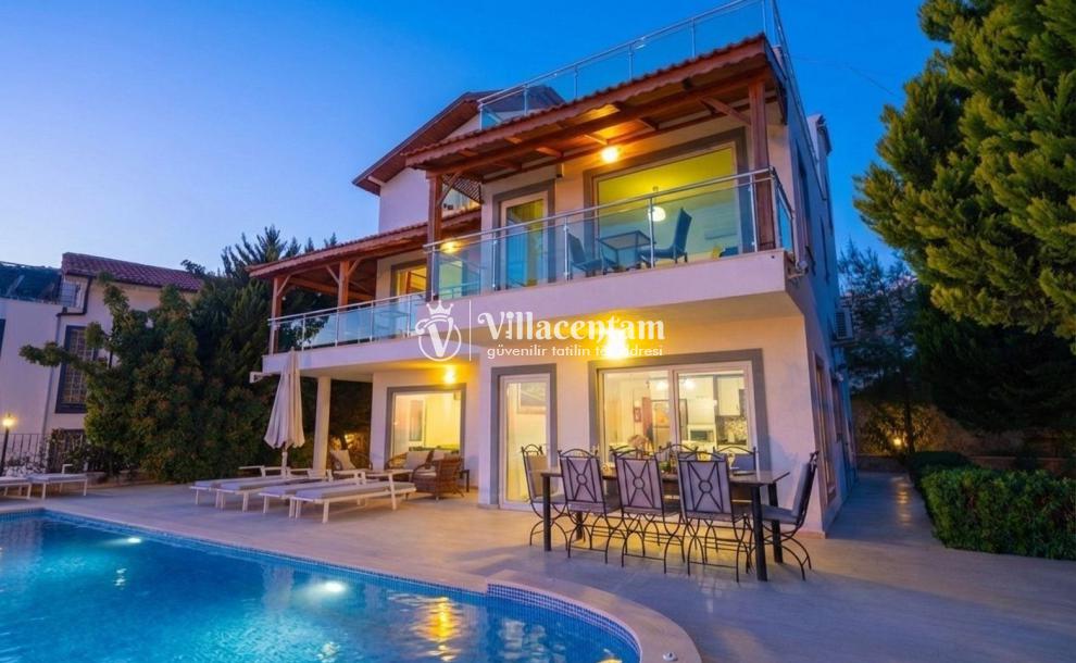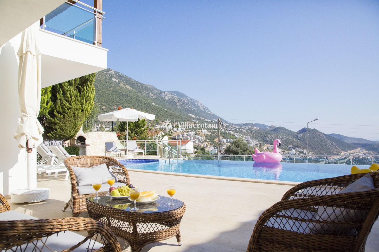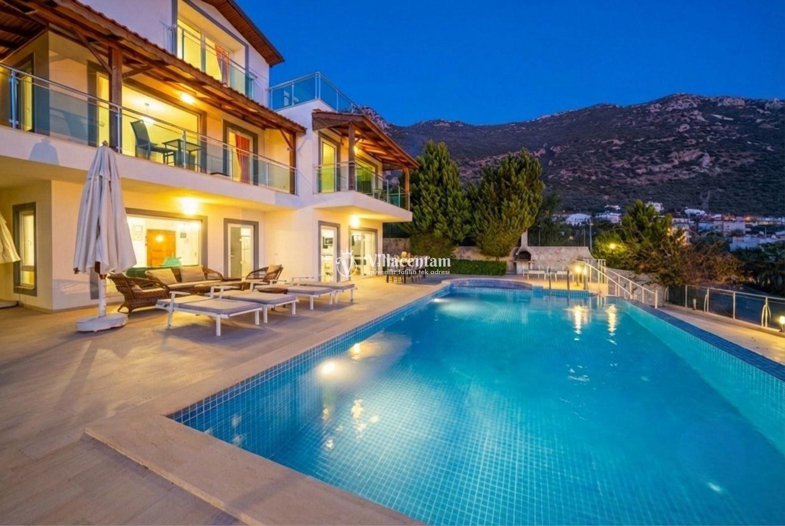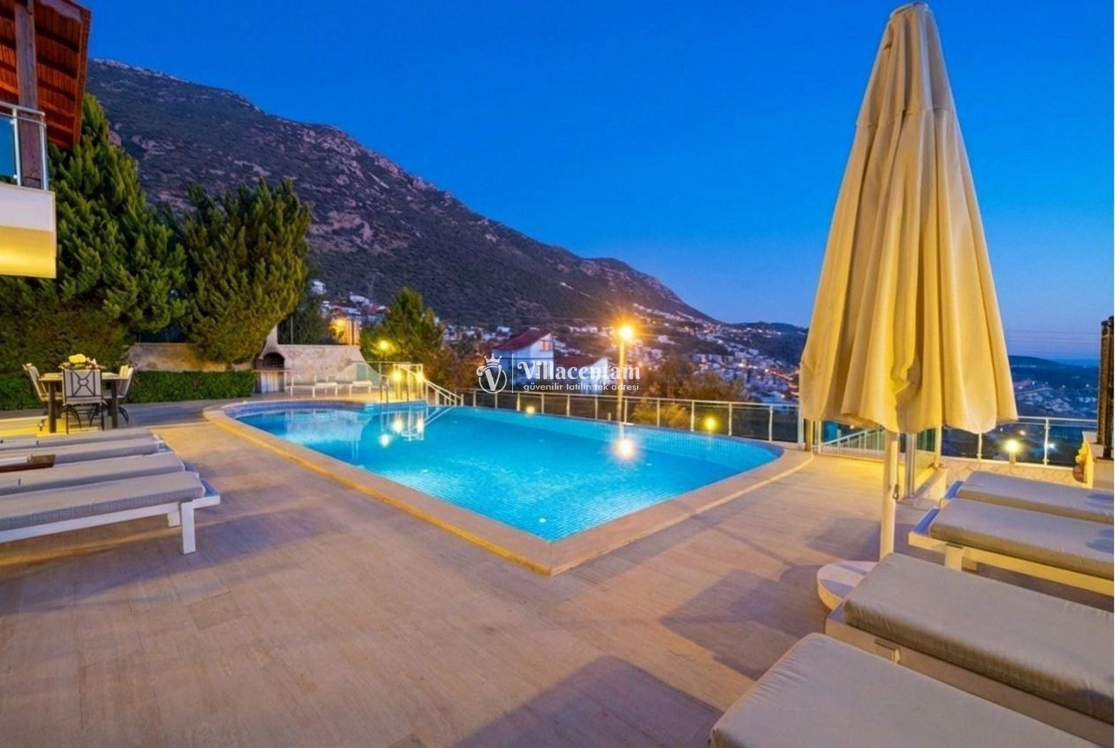 Villa Alkın, Kalkan Ortaalan mevkiinde konumlanmakta olan muhteşem deniz manzarasına sahip lüks ve modern kiralık villalarımız arasında yer almaktadır. Şık ve konforlu bir şekilde dekore edilen yazlık villamızda 5 adet yatak odası bulunmakta olup, 10 kişi konaklayabilmektedir. Havuz ve havuz terası korunaklı villamızın özel yüzme havuzunun yanında çocuk havuzu yer almaktadır. Muhafazakar ailelerin, geniş ailelerin ve kalabalık arkadaş gruplarının tercih edebileceği huzurlu bir yazlık villada tatil keyfi siz değerli misafirlerimizi bekliyor.