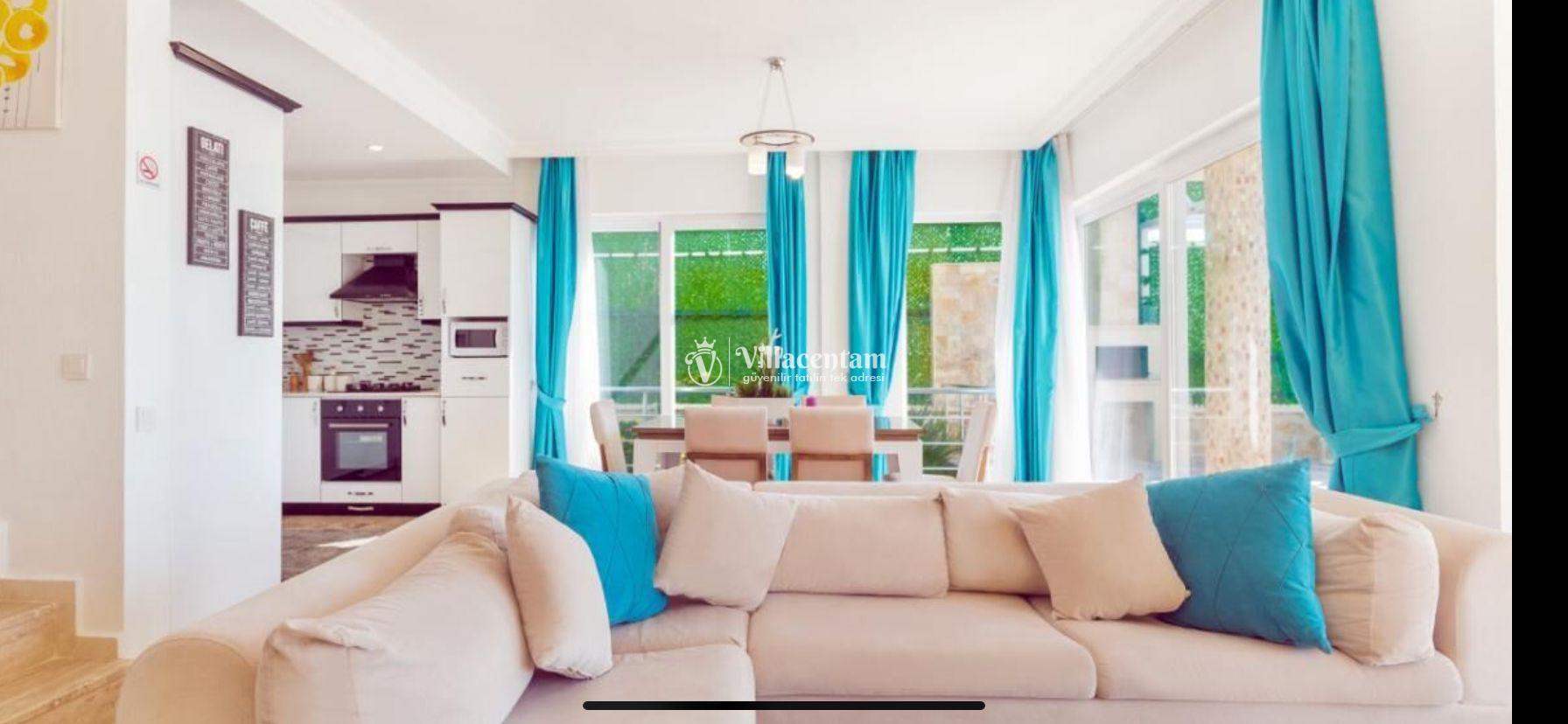 Villa Almira İslamlar, Kalkan İslamlar mevkiinde konumlanan 3 yatak odalı 6 kişi konaklama kapasitesine sahip doğayla iç içe, eşsiz manzarası ve huzur veren atmosferiyle öne çıkan villamız; konforlu, sakin ve özel bir tatil arayan misafirler için özenle tasarlanmıştır. Yemyeşil ormanlar ve doğal çevreyle çevrili olan villamız, şehir hayatının stresinden uzaklaşmak isteyen aileler ve arkadaş grupları için ideal bir konaklama seçeneğidir.Toplam 6 kişilik konaklama kapasitesine sahip olan villamızda 3 adet geniş ve ferah yatak odası bulunmaktadır. Odalar modern ve şık bir anlayışla dekore edilmiş olup, rahat bir uyku deneyimi sunacak şekilde tasarlanmıştır. Ferah salon alanı; konforlu oturma grubu, televizyon ve doğa manzarasına açılan geniş pencereleriyle keyifli vakit geçirmenizi sağlar.