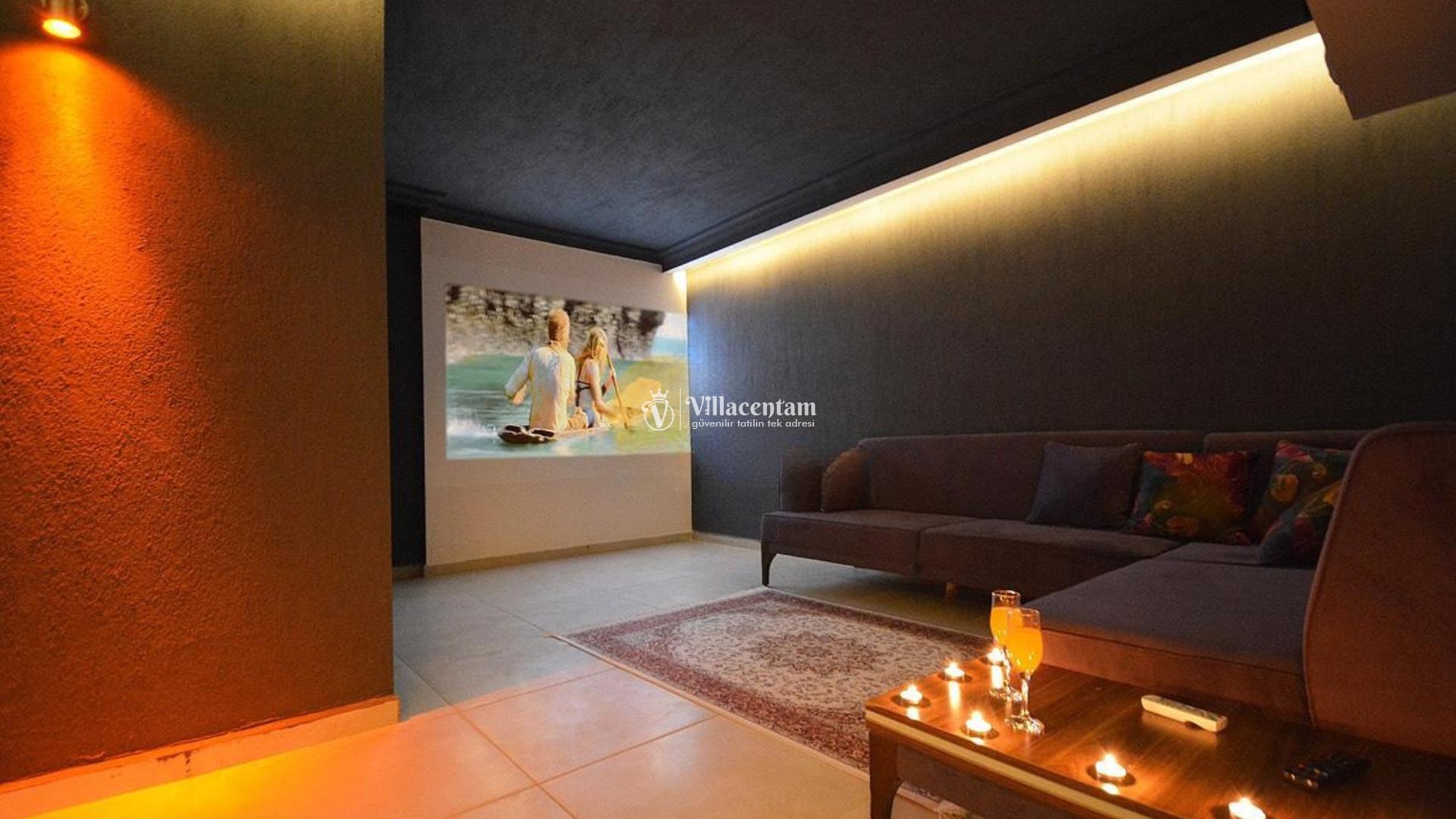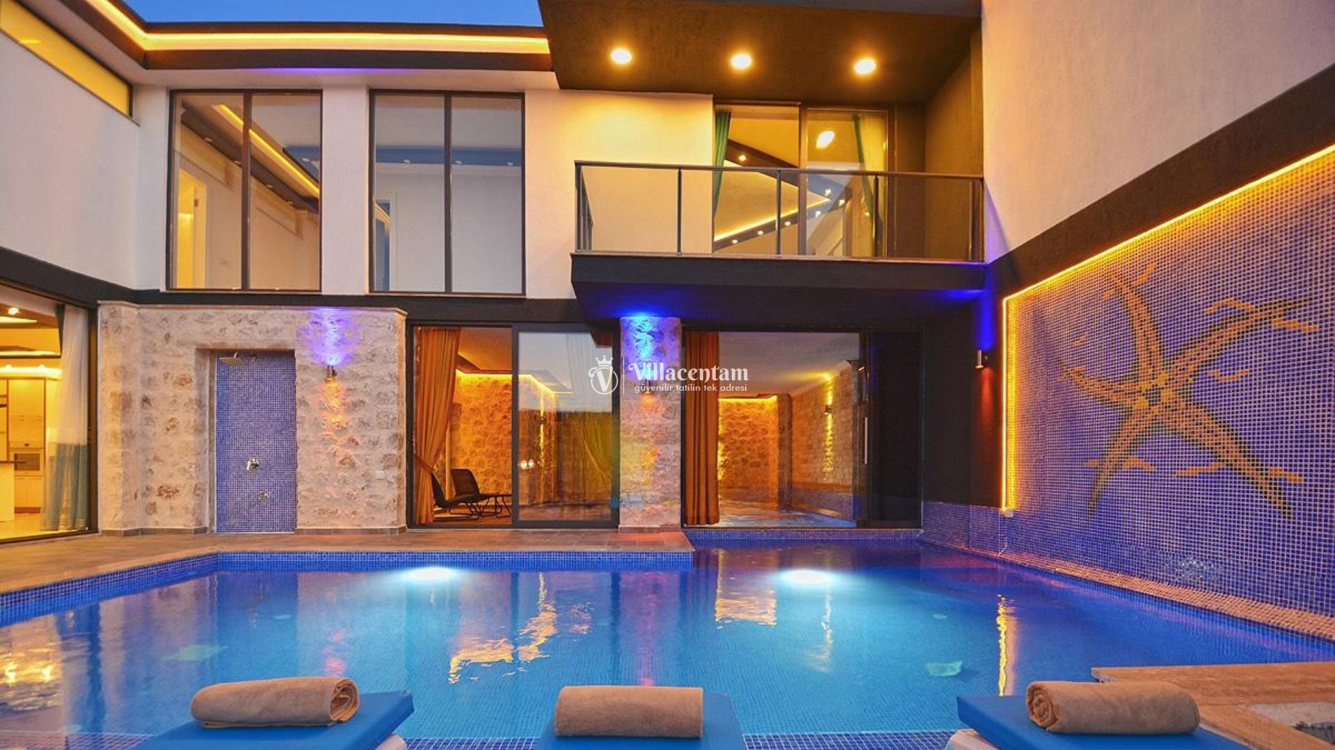 Dış alanda yer alan özel yüzme havuzu, muhafazakâr kullanıma uygun şekilde tasarlanmış olup doğa manzarası eşliğinde keyifli anlar sunar. Ayrıca villada bulunan kapalı ve ısıtmalı havuz, yılın farklı dönemlerinde de tatil yapma imkânı sağlar. Hamam ve sauna alanları, günün yorgunluğunu atmak isteyen misafirler için ideal bir dinlenme ortamı sunarken, sinema odası ise villa içerisinde keyifli vakit geçirmek isteyen misafirler için özel bir alternatif oluşturur.