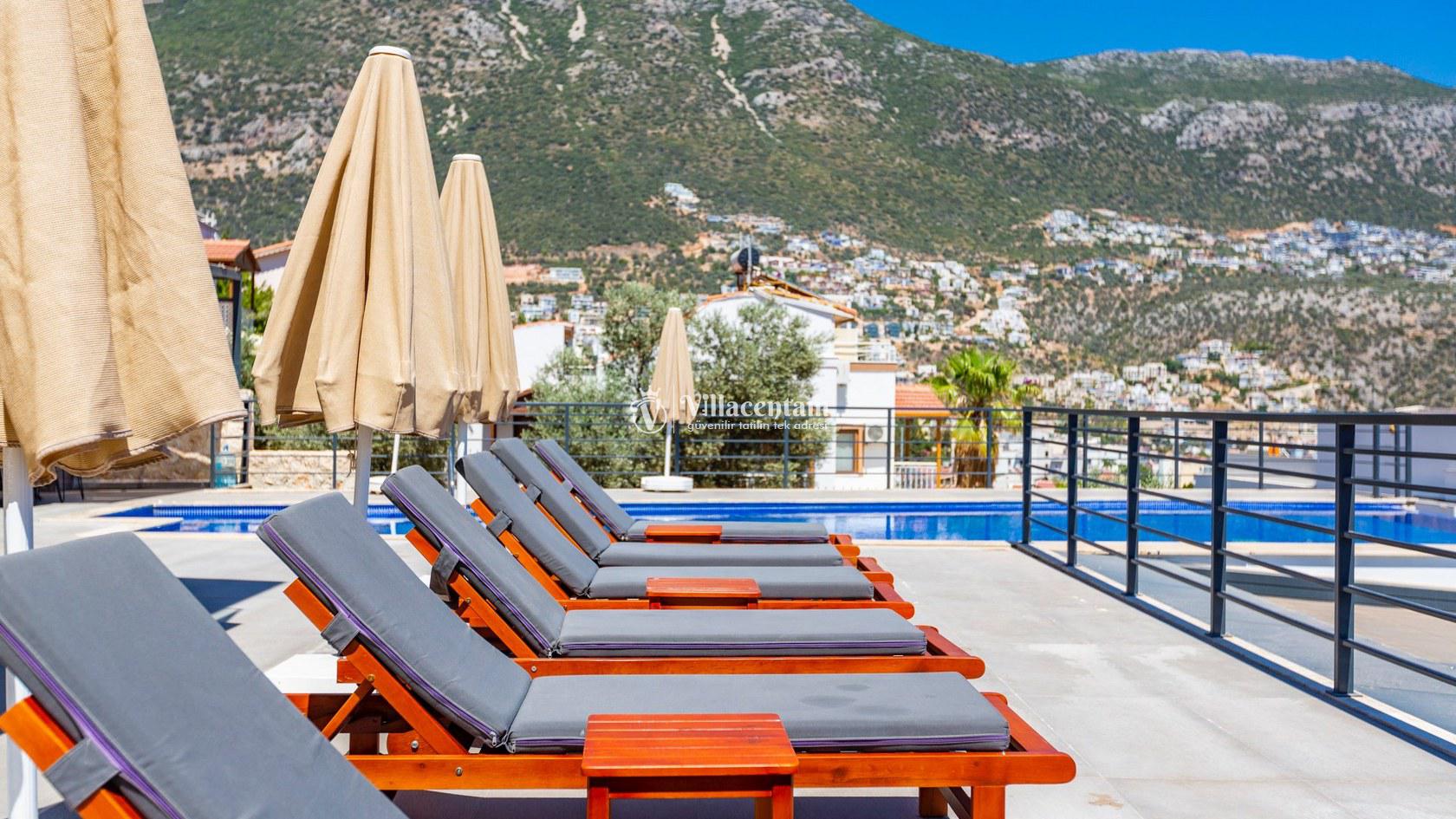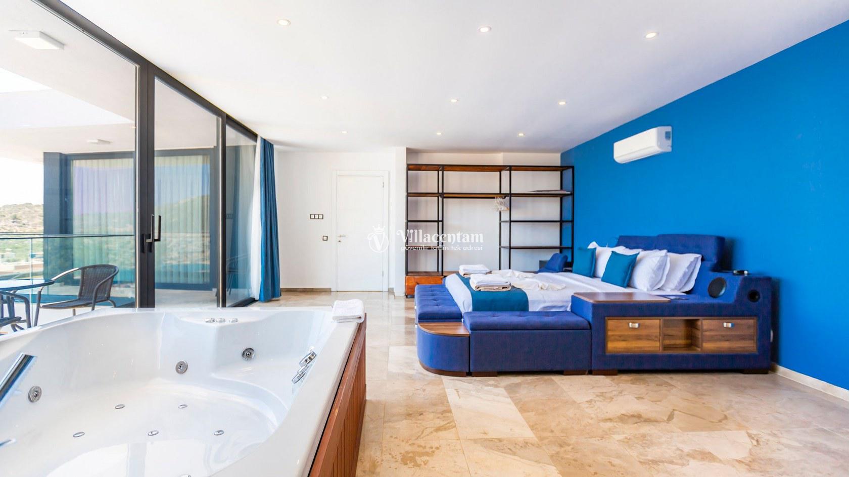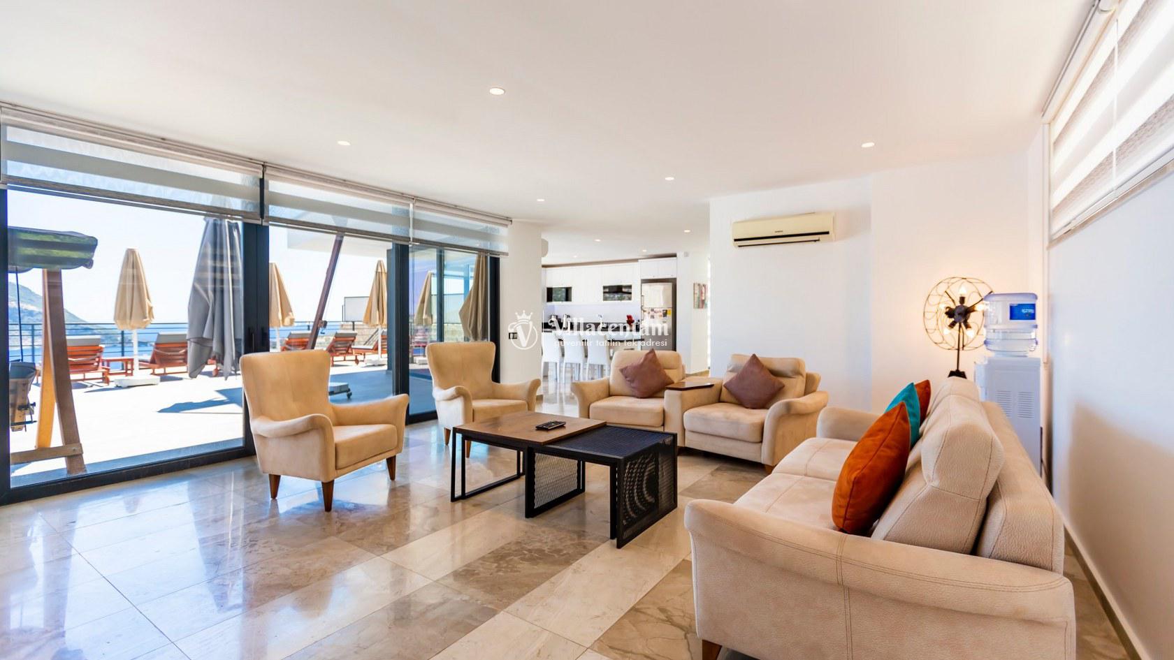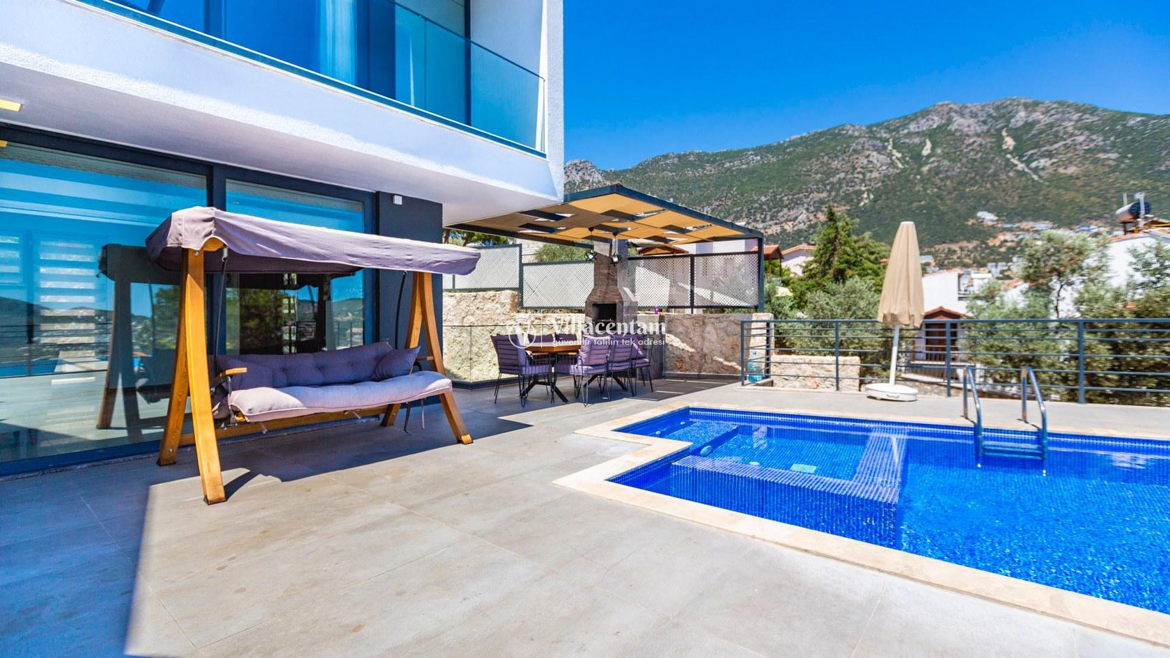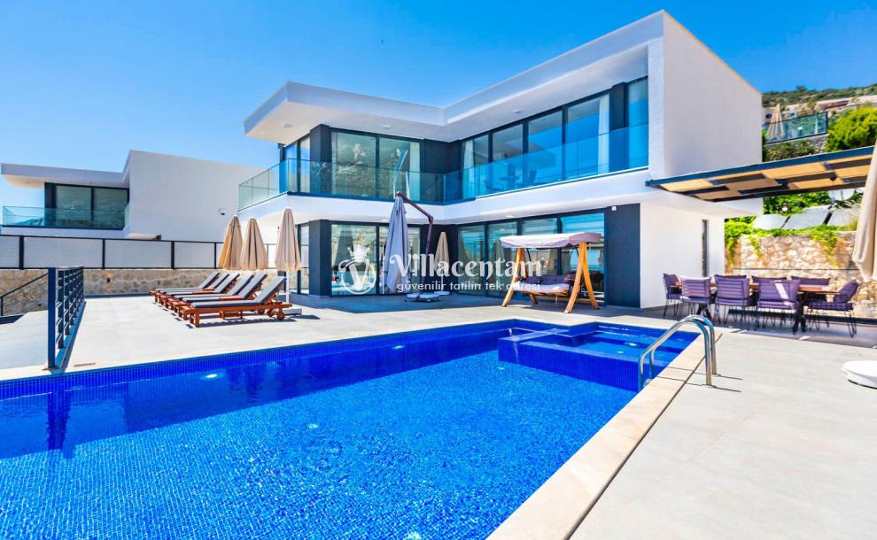 Villa Aquamarine, Kalkan Ortaalan mevkiinde konumlanmış olan ultra lüks, muhteşem deniz manzarasına hakim kiralık villalarımız arasında yer almaktadır. Yazlık villamızda 4 adet yatak odası bulunmakta olup, 8 kişiye konaklama imkanı sağlamaktakdır. Modern ve konforlu bir şekilde dizayn edilen villamızda, kapalı ısıtmalı havuz, sauna, hamam ve jakuzi yer almaktadır. Geniş aileler ve kalabalık arkadaş grupları rahatlıkla tercih edebilirler. Eşsiz deniz manzarasına karşı sabahları sevdiklerinizle birlikte uzun uzun kahvaltı keyifleri yapabilir, havuzunuzda yüzebilir ve dilediğinizce eğlenebilirsiniz. Sükunet içerisinde unutamayacağınız bir yazlık villada tatil için Villa Aquamarine’ i tercih edebilirsiniz.
