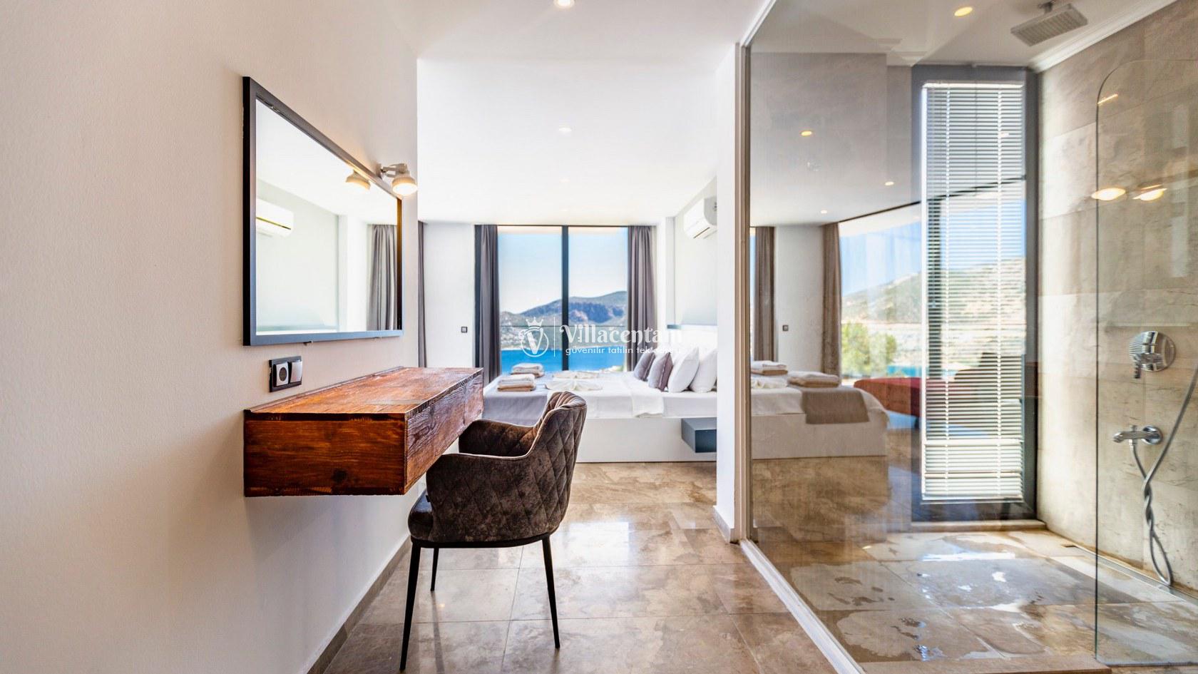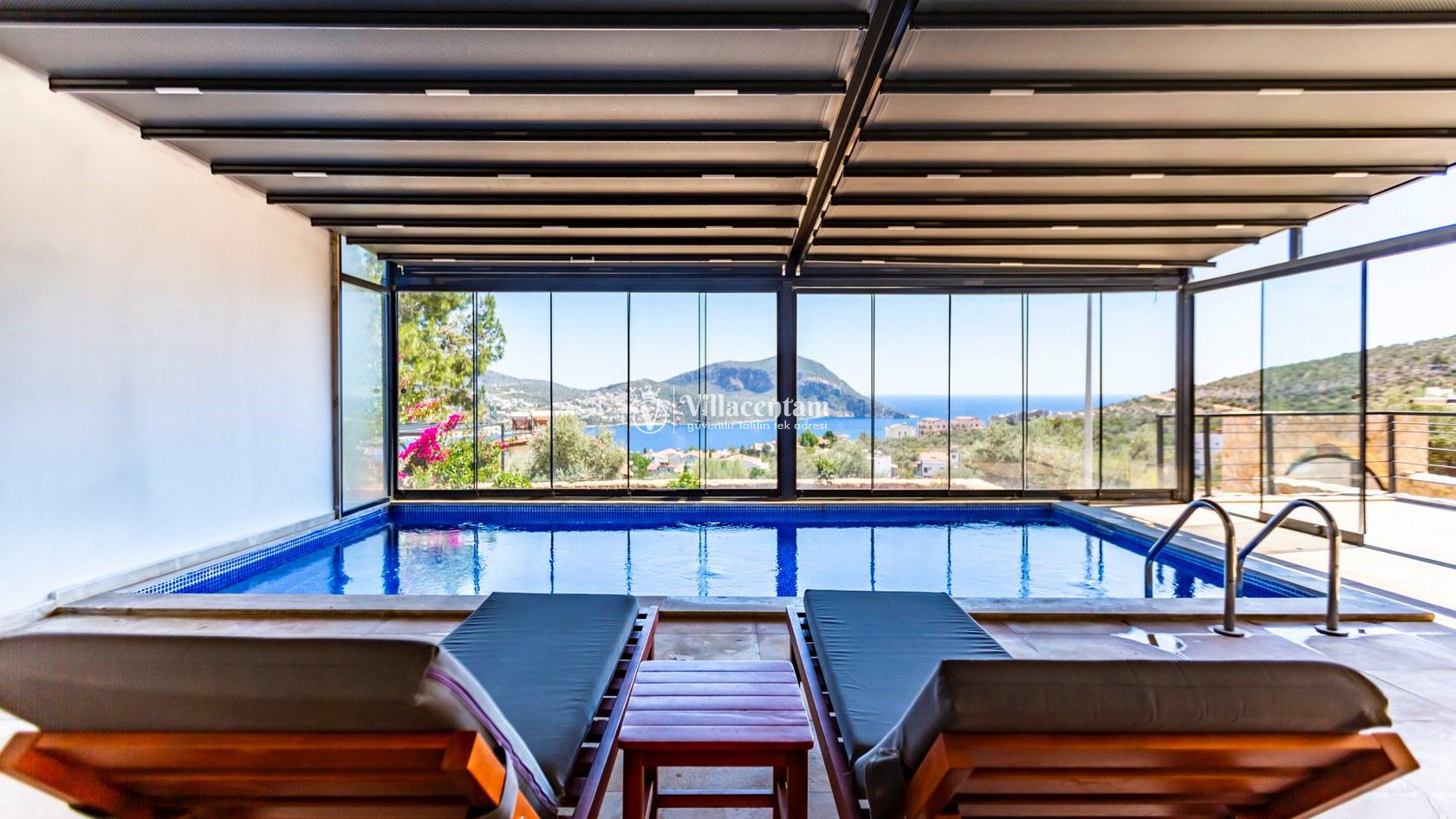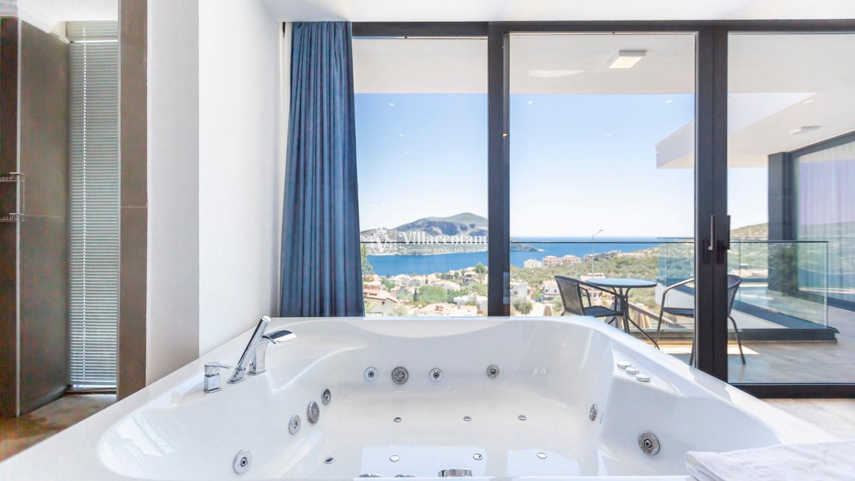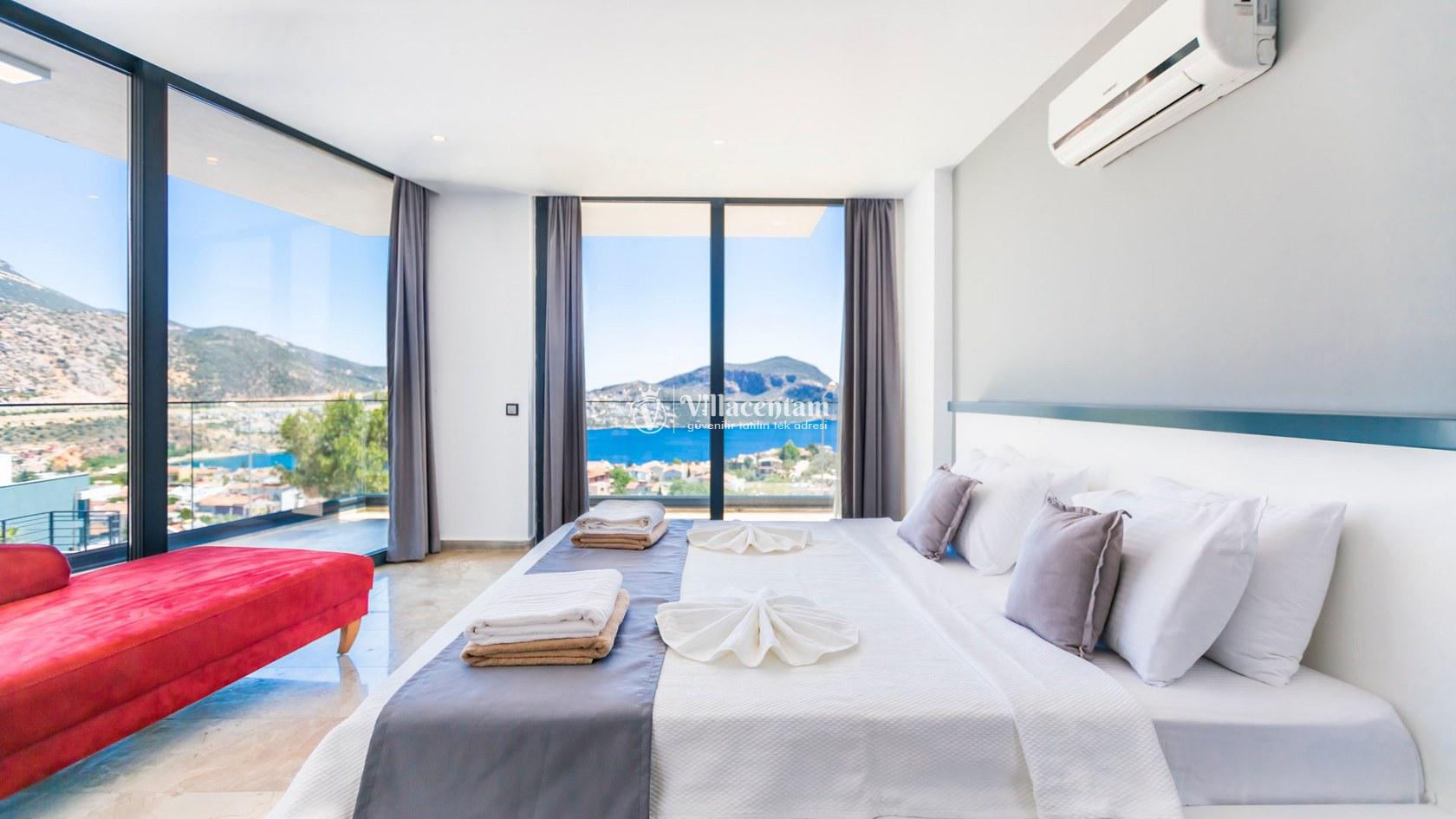 Villa Aquamarine, Kalkan Ortaalan mevkiinde konumlanmış olan ultra lüks, muhteşem deniz manzarasına hakim kiralık villalarımız arasında yer almaktadır. Yazlık villamızda 4 adet yatak odası bulunmakta olup, 8 kişiye konaklama imkanı sağlamaktakdır. Modern ve konforlu bir şekilde dizayn edilen villamızda, kapalı ısıtmalı havuz, sauna, hamam ve jakuzi yer almaktadır. Geniş aileler ve kalabalık arkadaş grupları rahatlıkla tercih edebilirler. Eşsiz deniz manzarasına karşı sabahları sevdiklerinizle birlikte uzun uzun kahvaltı keyifleri yapabilir, havuzunuzda yüzebilir ve dilediğinizce eğlenebilirsiniz. Sükunet içerisinde unutamayacağınız bir yazlık villada tatil için Villa Aquamarine’ i tercih edebilirsiniz.
