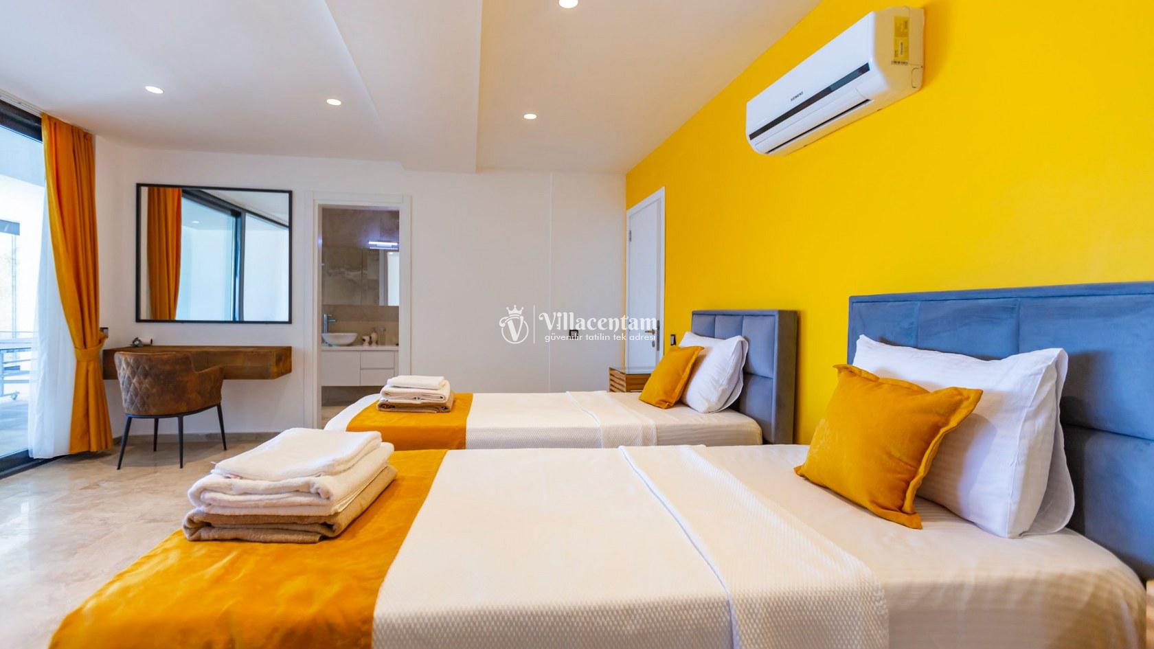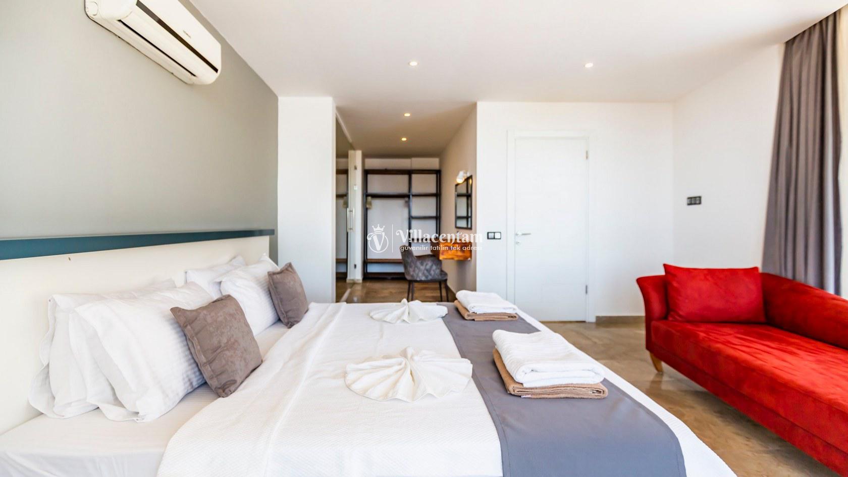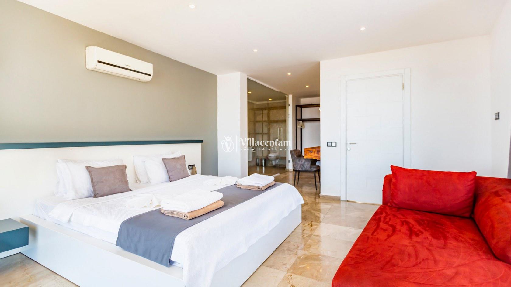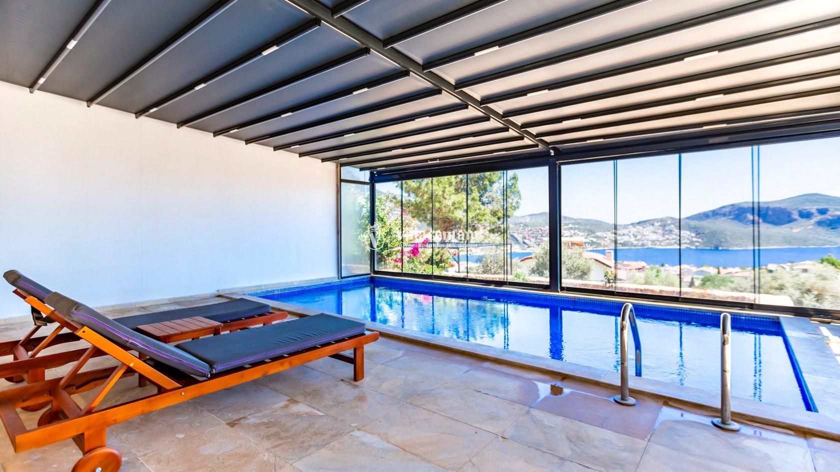 Villa Aquamarine, Kalkan Ortaalan mevkiinde konumlanmış olan ultra lüks, muhteşem deniz manzarasına hakim kiralık villalarımız arasında yer almaktadır. Yazlık villamızda 4 adet yatak odası bulunmakta olup, 8 kişiye konaklama imkanı sağlamaktakdır. Modern ve konforlu bir şekilde dizayn edilen villamızda, kapalı ısıtmalı havuz, sauna, hamam ve jakuzi yer almaktadır. Geniş aileler ve kalabalık arkadaş grupları rahatlıkla tercih edebilirler. Eşsiz deniz manzarasına karşı sabahları sevdiklerinizle birlikte uzun uzun kahvaltı keyifleri yapabilir, havuzunuzda yüzebilir ve dilediğinizce eğlenebilirsiniz. Sükunet içerisinde unutamayacağınız bir yazlık villada tatil için Villa Aquamarine’ i tercih edebilirsiniz.