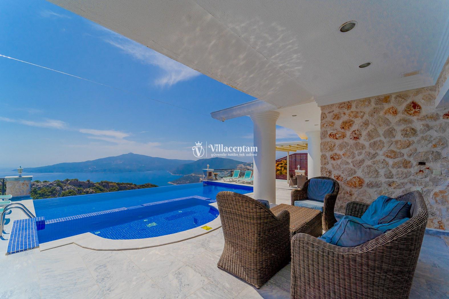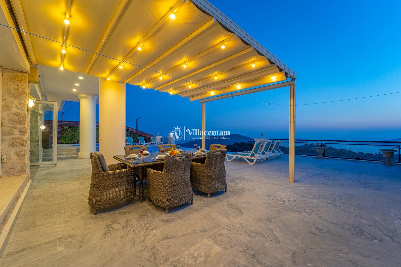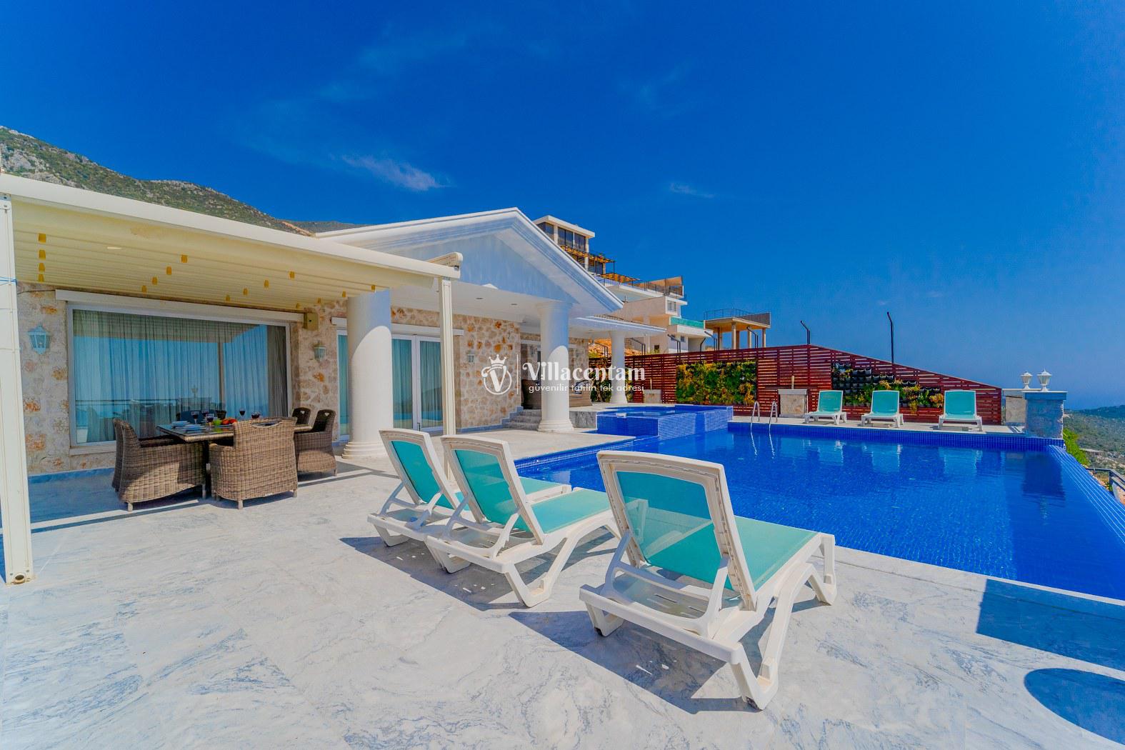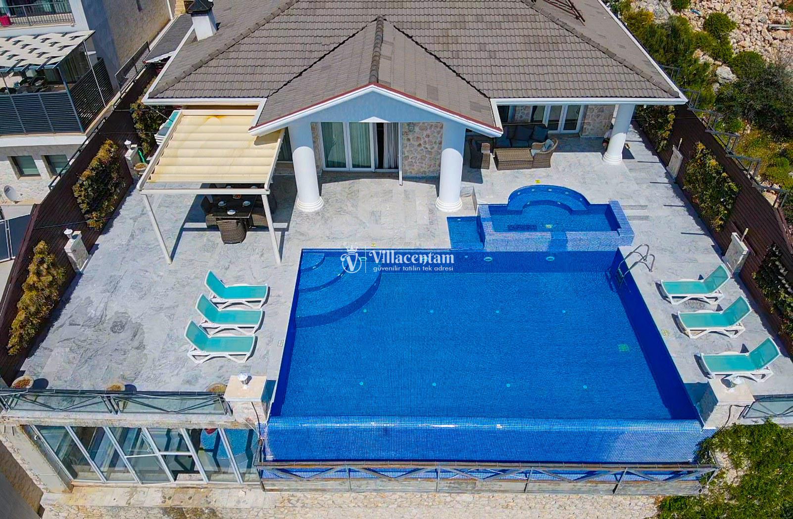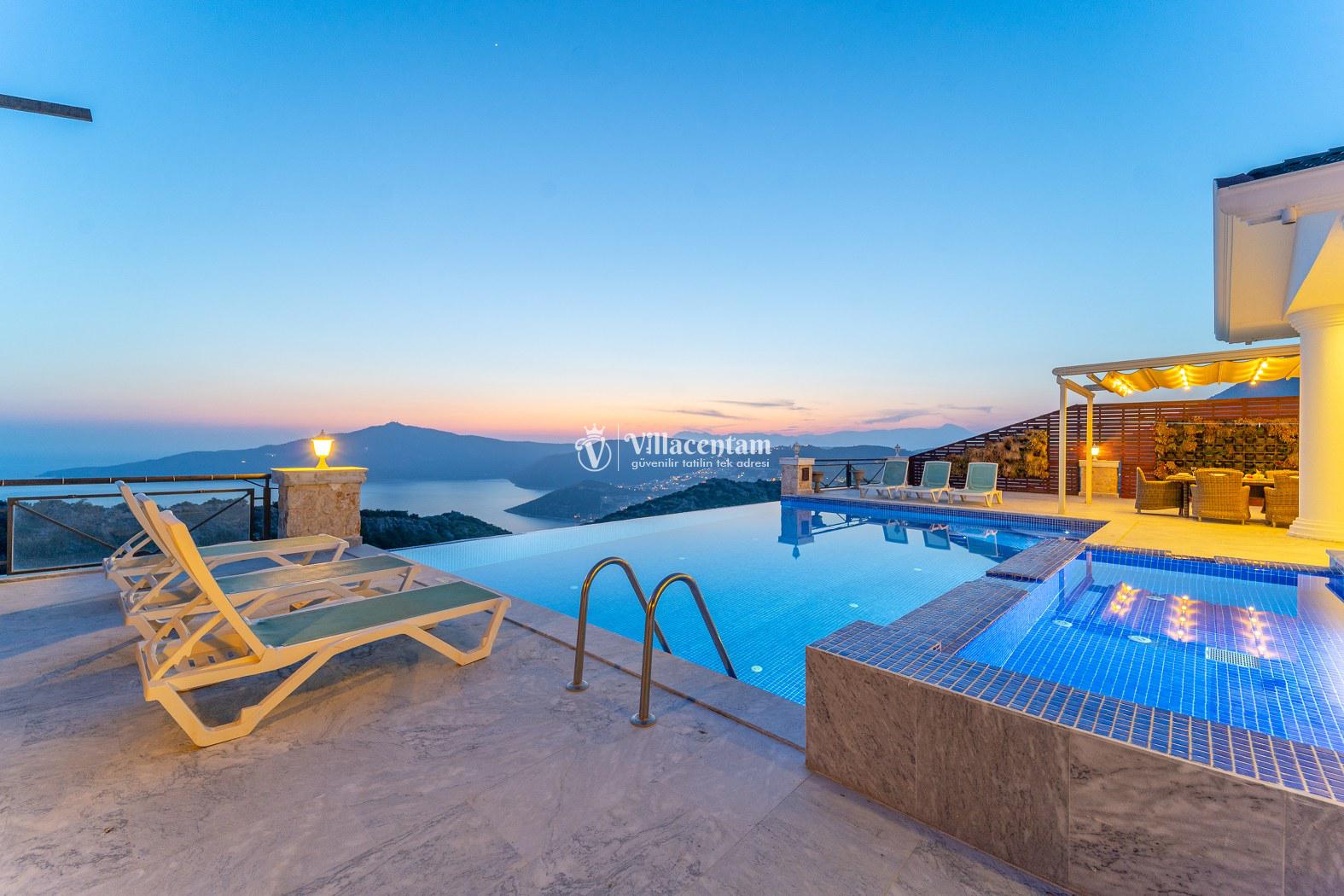 Villa Aria Exclusive, Kalkan Kördere - Sarnıçbaşı mevkiinde yer alan doğa ve deniz manzaralı, lüks kiralık villalar arasında yer almaktadır. Sessiz ve nezih bir ortamın içerisine konumlanmış olan villamız da 6 adet yatak odası bulunmakta olup, 11 kişi konaklayabilmektedir. Her bir detayın en ince ayrıntısına kadar düşünüldüğü kiralık villamızda hamam, masa tenisi, langırt ve spor odası yer almaktadır. Donanımlı bir havuz terasına sahip olan kiralık villamızda sevdiklerinizle birlikte kahvaltı ve barbekü keyifleri yapabilir, havuzunuzun tadını çıkarabilirsiniz. Ayrıca özel yüzme havuzun yanında çocuk havuzu bulunmaktadır. Sessizlik ve sükunet içerisinde hayallerinizin de ötesinde huzur dolu bir yazlık villada tatil için Villa Aria Exclusive doğru bir tercih olacaktır.