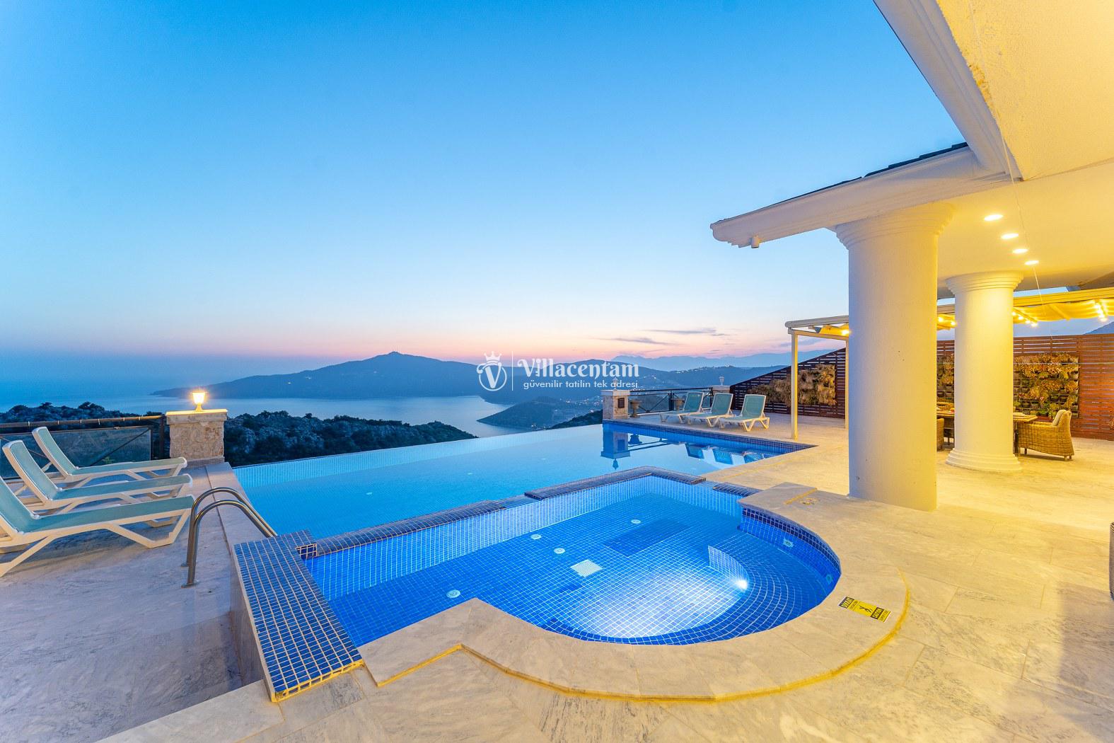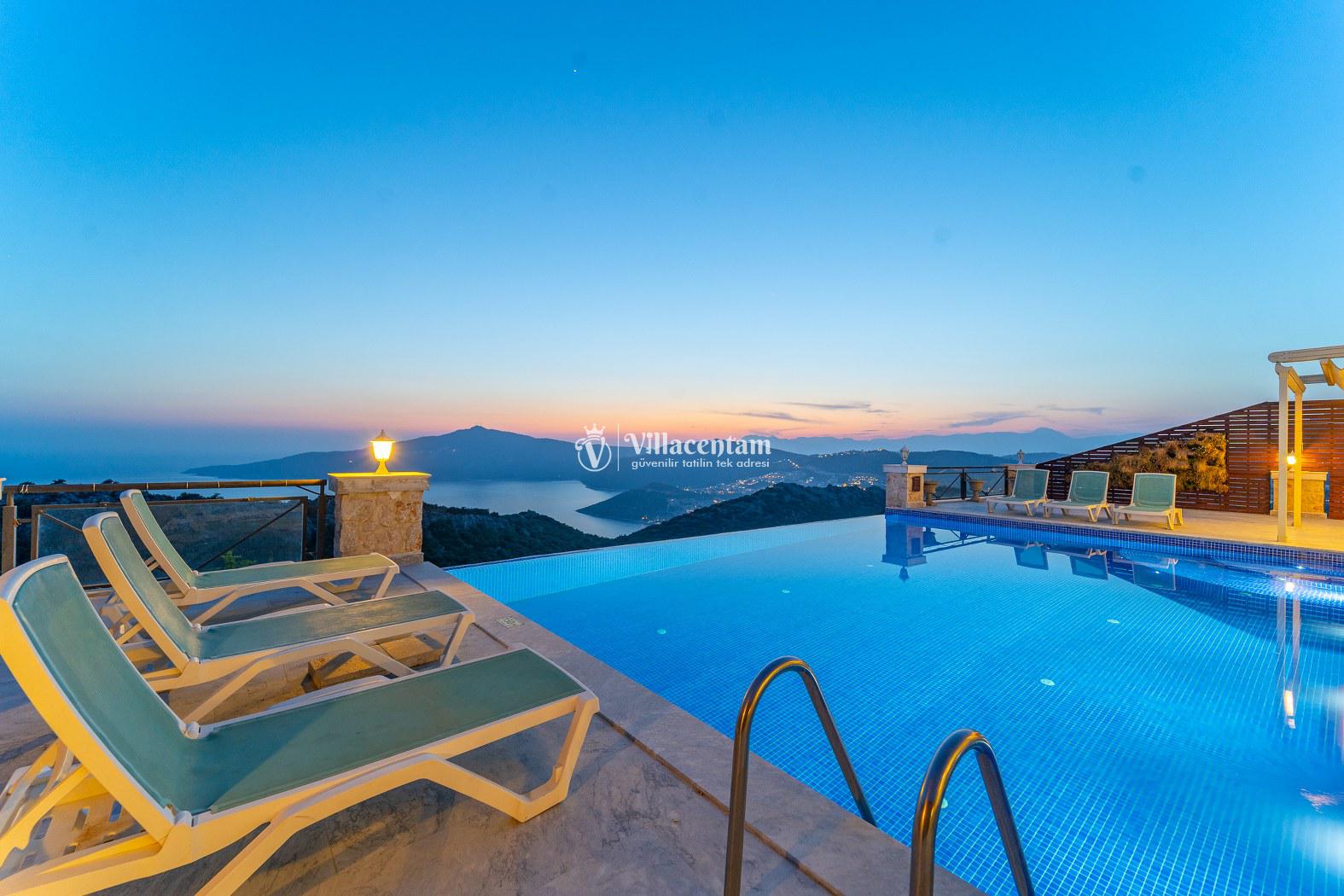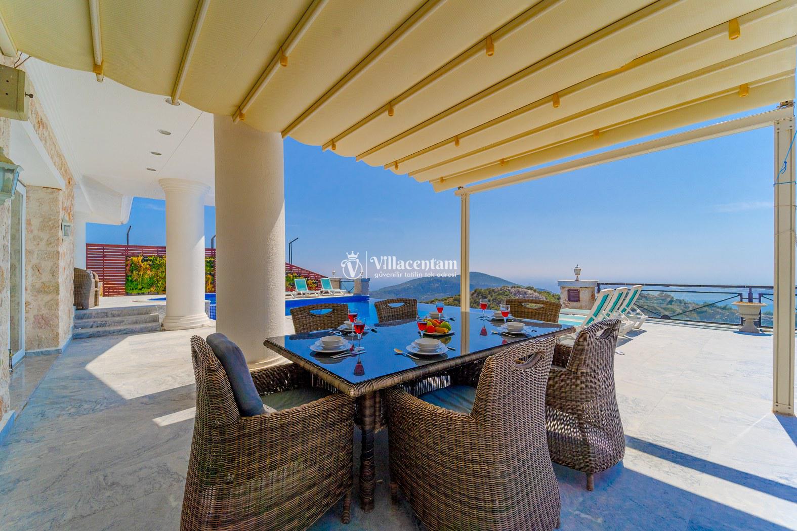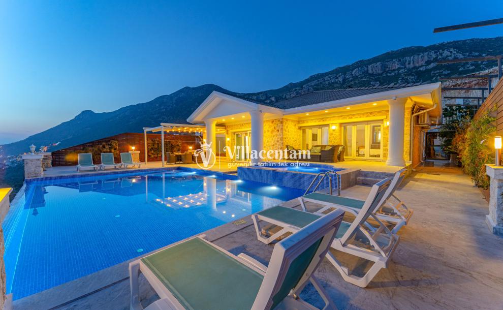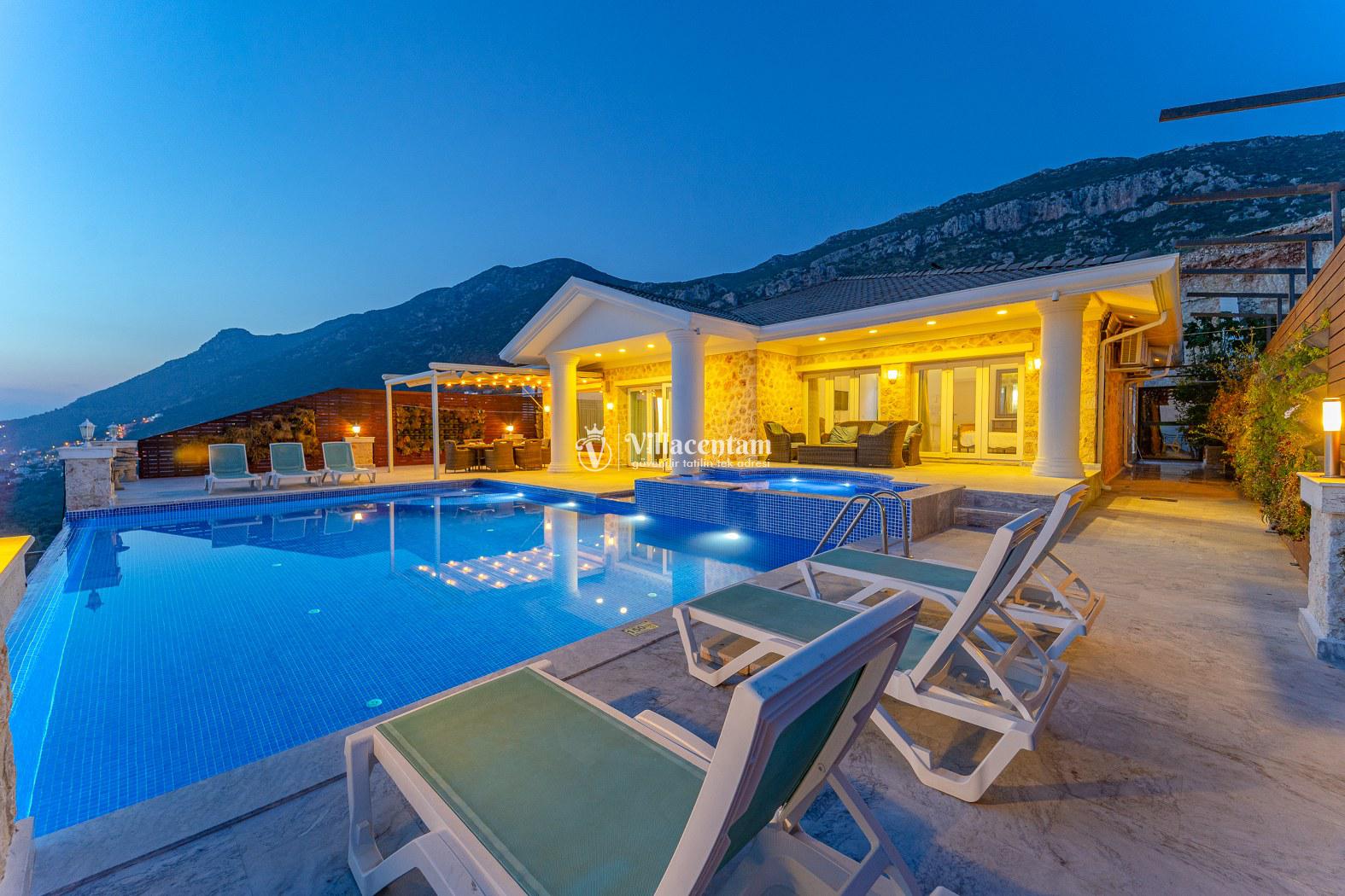 Villa Aria Exclusive, Kalkan Kördere - Sarnıçbaşı mevkiinde yer alan doğa ve deniz manzaralı, lüks kiralık villalar arasında yer almaktadır. Sessiz ve nezih bir ortamın içerisine konumlanmış olan villamız da 6 adet yatak odası bulunmakta olup, 11 kişi konaklayabilmektedir. Her bir detayın en ince ayrıntısına kadar düşünüldüğü kiralık villamızda hamam, masa tenisi, langırt ve spor odası yer almaktadır. Donanımlı bir havuz terasına sahip olan kiralık villamızda sevdiklerinizle birlikte kahvaltı ve barbekü keyifleri yapabilir, havuzunuzun tadını çıkarabilirsiniz. Ayrıca özel yüzme havuzun yanında çocuk havuzu bulunmaktadır. Sessizlik ve sükunet içerisinde hayallerinizin de ötesinde huzur dolu bir yazlık villada tatil için Villa Aria Exclusive doğru bir tercih olacaktır.