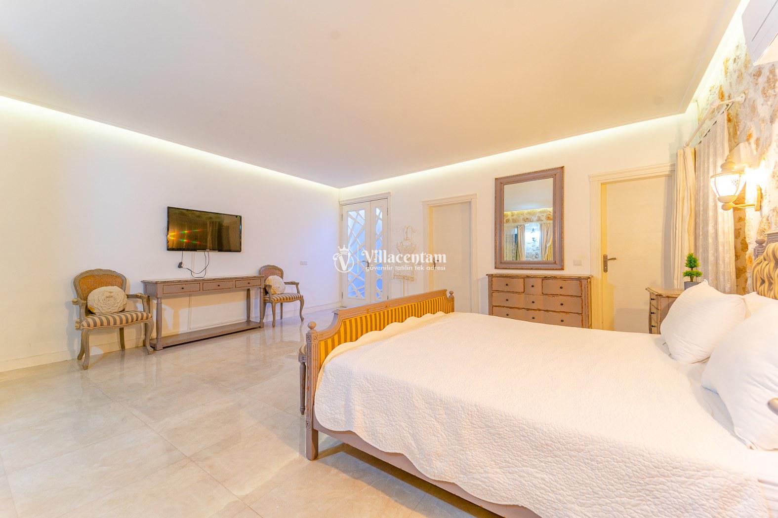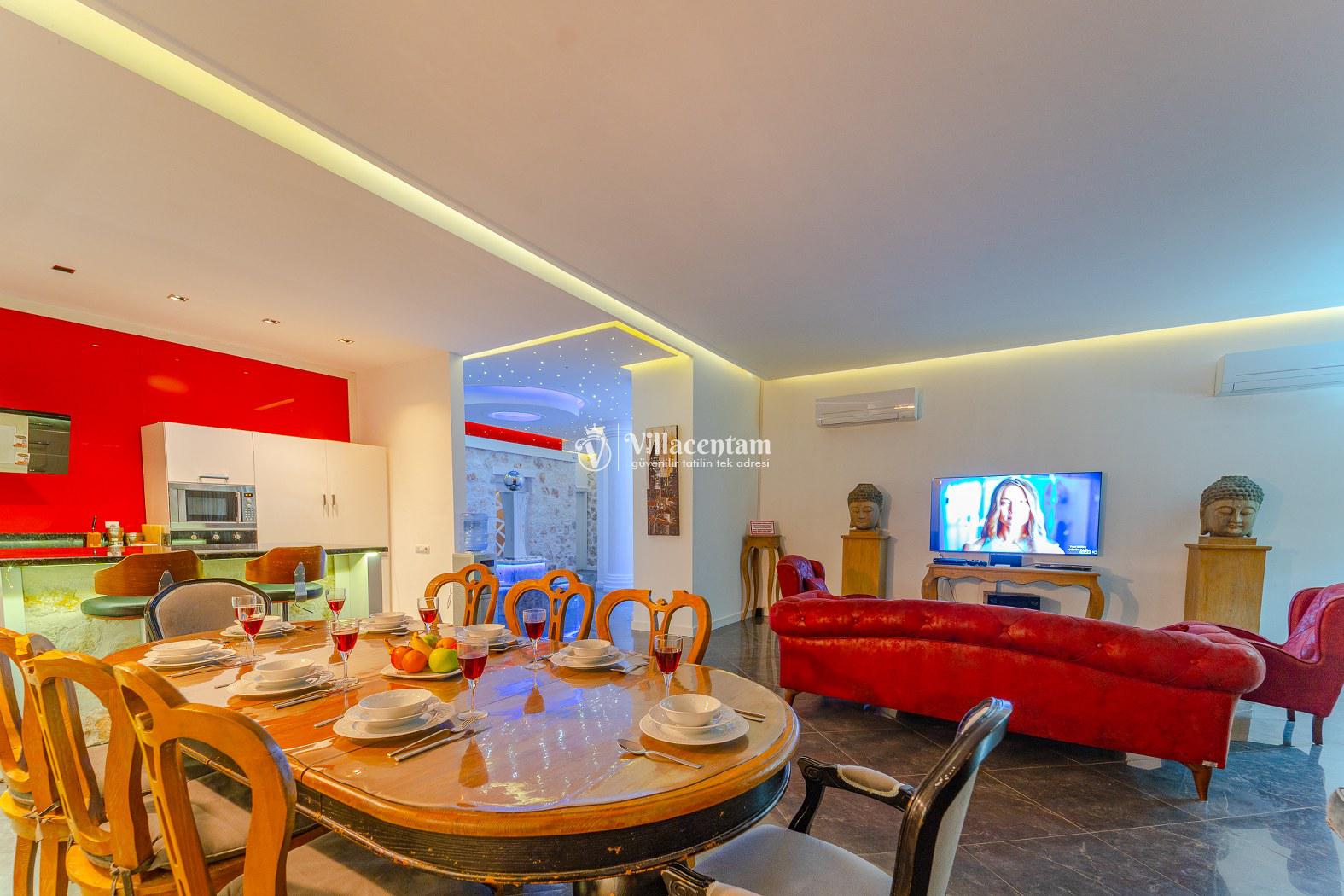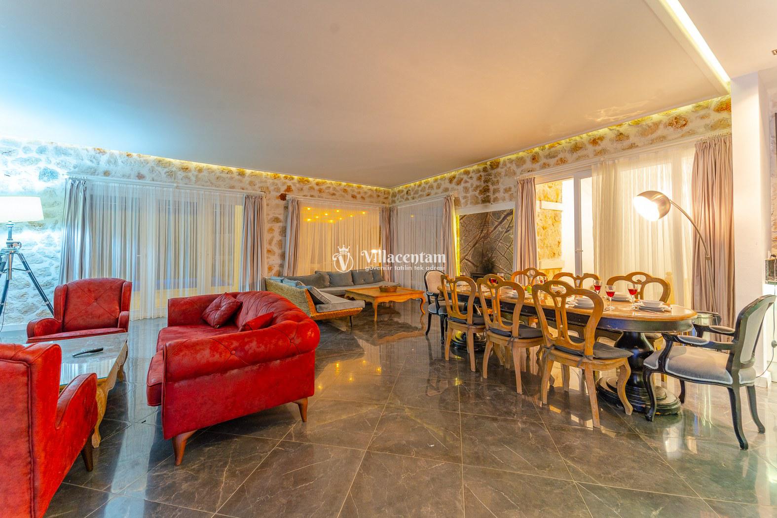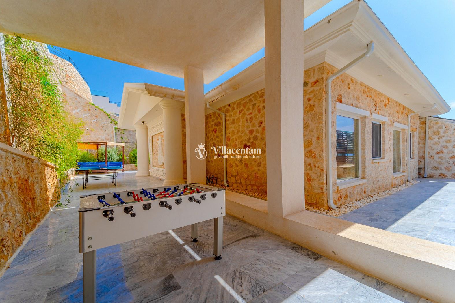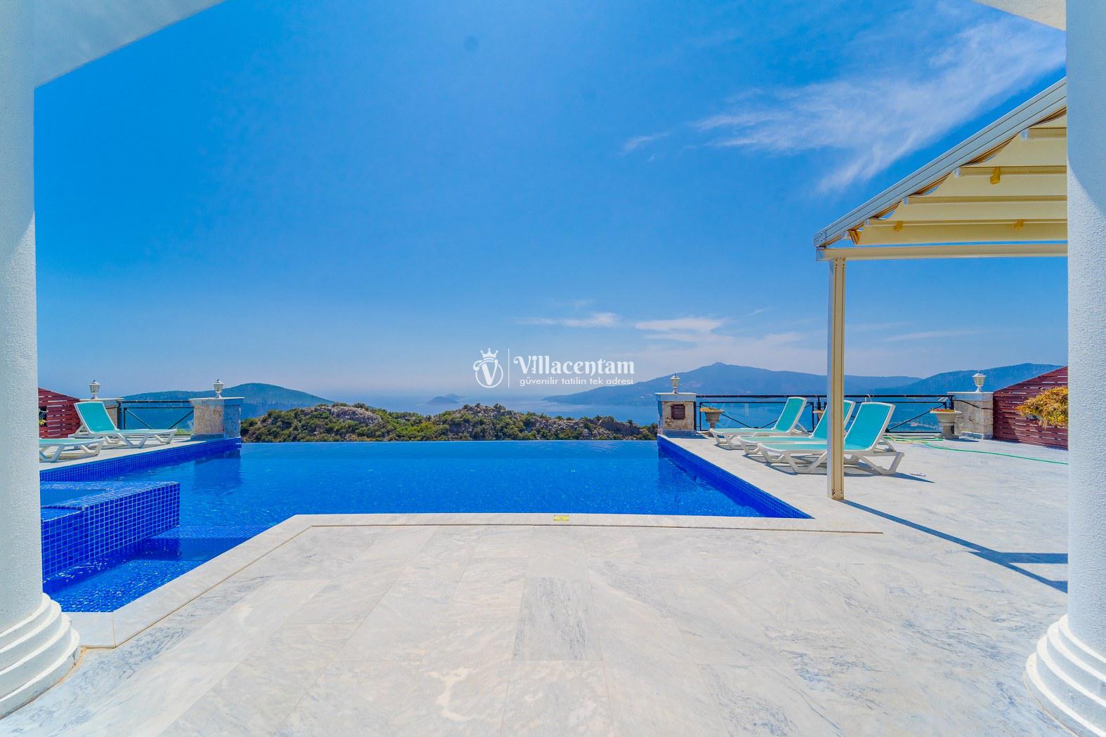Villa Aria Exclusive, Kalkan Kördere - Sarnıçbaşı mevkiinde yer alan doğa ve deniz manzaralı, lüks kiralık villalar arasında yer almaktadır. Sessiz ve nezih bir ortamın içerisine konumlanmış olan villamız da 6 adet yatak odası bulunmakta olup, 11 kişi konaklayabilmektedir. Her bir detayın en ince ayrıntısına kadar düşünüldüğü kiralık villamızda hamam, masa tenisi, langırt ve spor odası yer almaktadır. Donanımlı bir havuz terasına sahip olan kiralık villamızda sevdiklerinizle birlikte kahvaltı ve barbekü keyifleri yapabilir, havuzunuzun tadını çıkarabilirsiniz. Ayrıca özel yüzme havuzun yanında çocuk havuzu bulunmaktadır. Sessizlik ve sükunet içerisinde hayallerinizin de ötesinde huzur dolu bir yazlık villada tatil için Villa Aria Exclusive doğru bir tercih olacaktır.