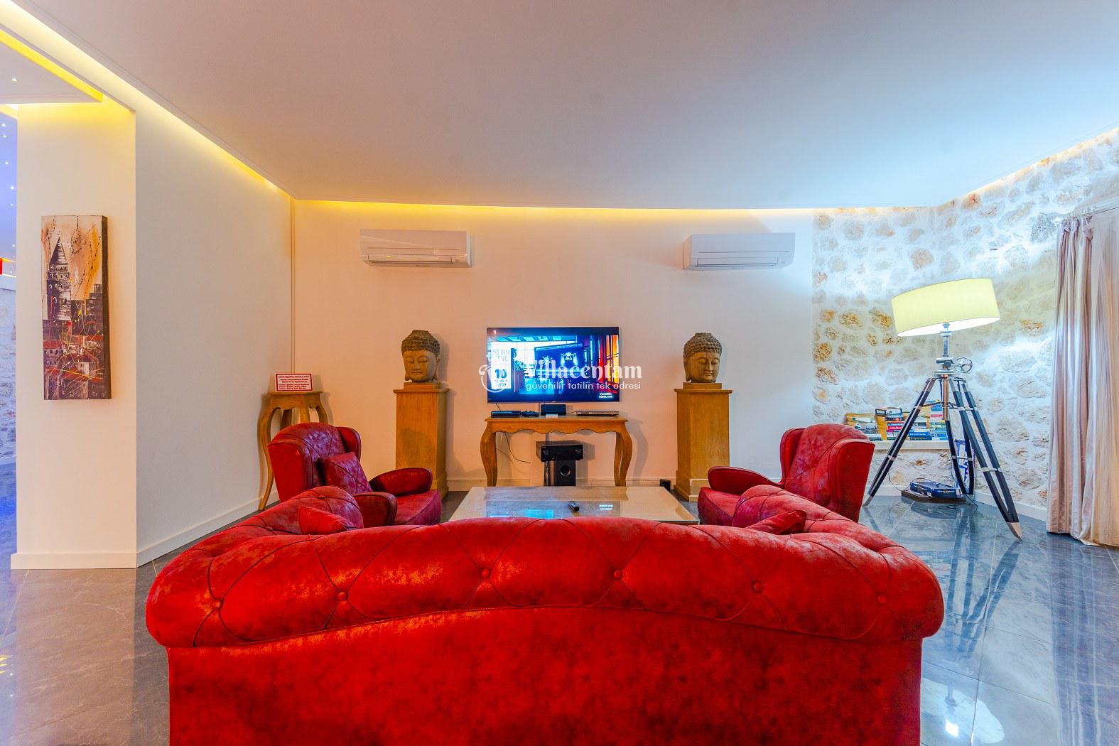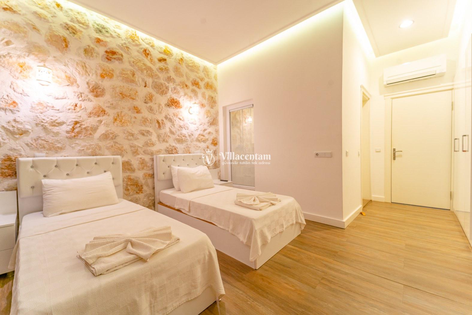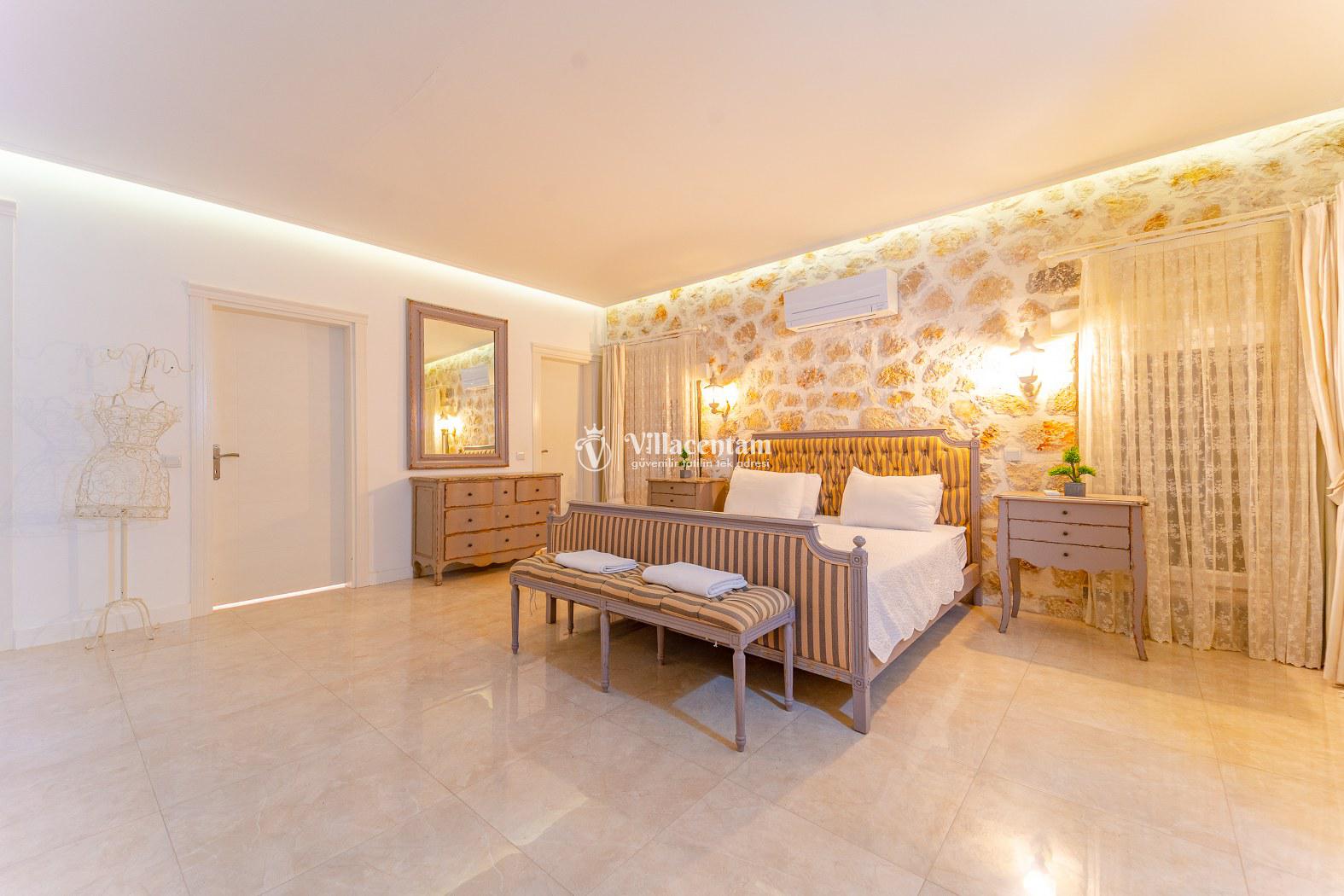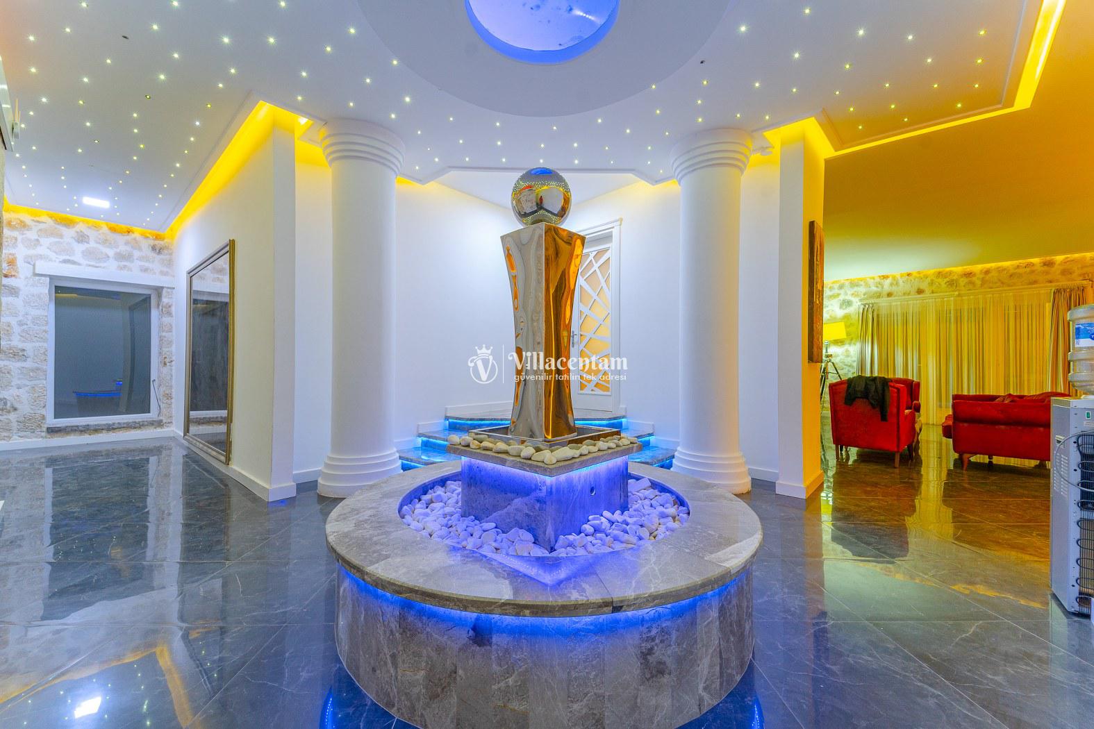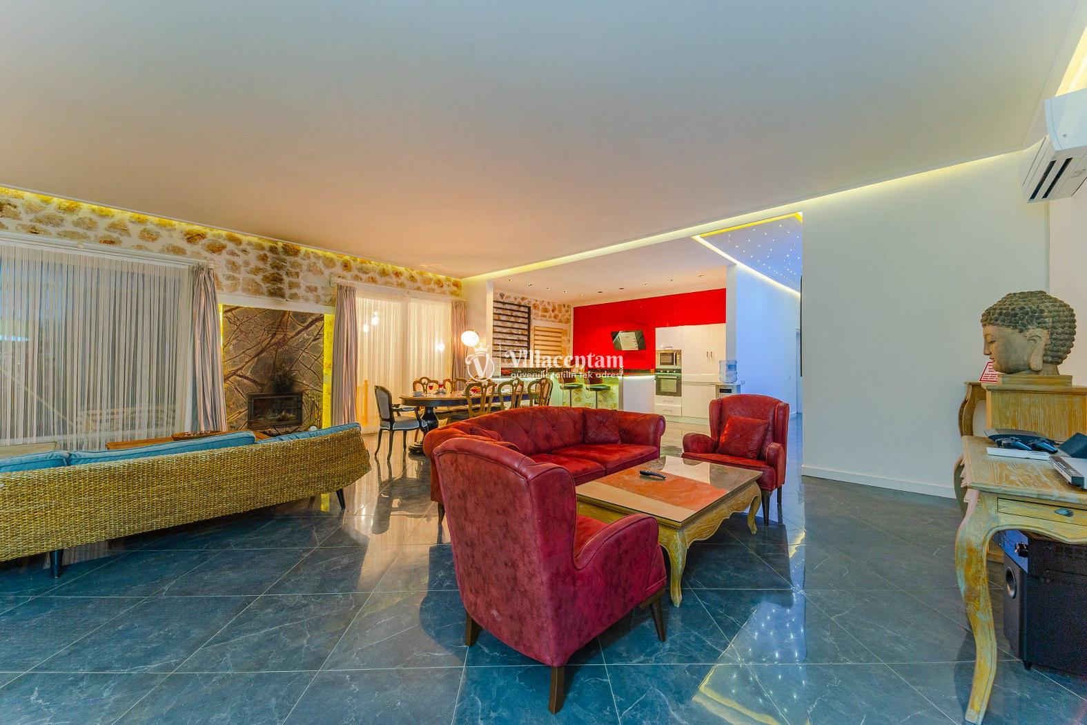 Villa Aria Exclusive, Kalkan Kördere - Sarnıçbaşı mevkiinde yer alan doğa ve deniz manzaralı, lüks kiralık villalar arasında yer almaktadır. Sessiz ve nezih bir ortamın içerisine konumlanmış olan villamız da 6 adet yatak odası bulunmakta olup, 11 kişi konaklayabilmektedir. Her bir detayın en ince ayrıntısına kadar düşünüldüğü kiralık villamızda hamam, masa tenisi, langırt ve spor odası yer almaktadır. Donanımlı bir havuz terasına sahip olan kiralık villamızda sevdiklerinizle birlikte kahvaltı ve barbekü keyifleri yapabilir, havuzunuzun tadını çıkarabilirsiniz. Ayrıca özel yüzme havuzun yanında çocuk havuzu bulunmaktadır. Sessizlik ve sükunet içerisinde hayallerinizin de ötesinde huzur dolu bir yazlık villada tatil için Villa Aria Exclusive doğru bir tercih olacaktır.