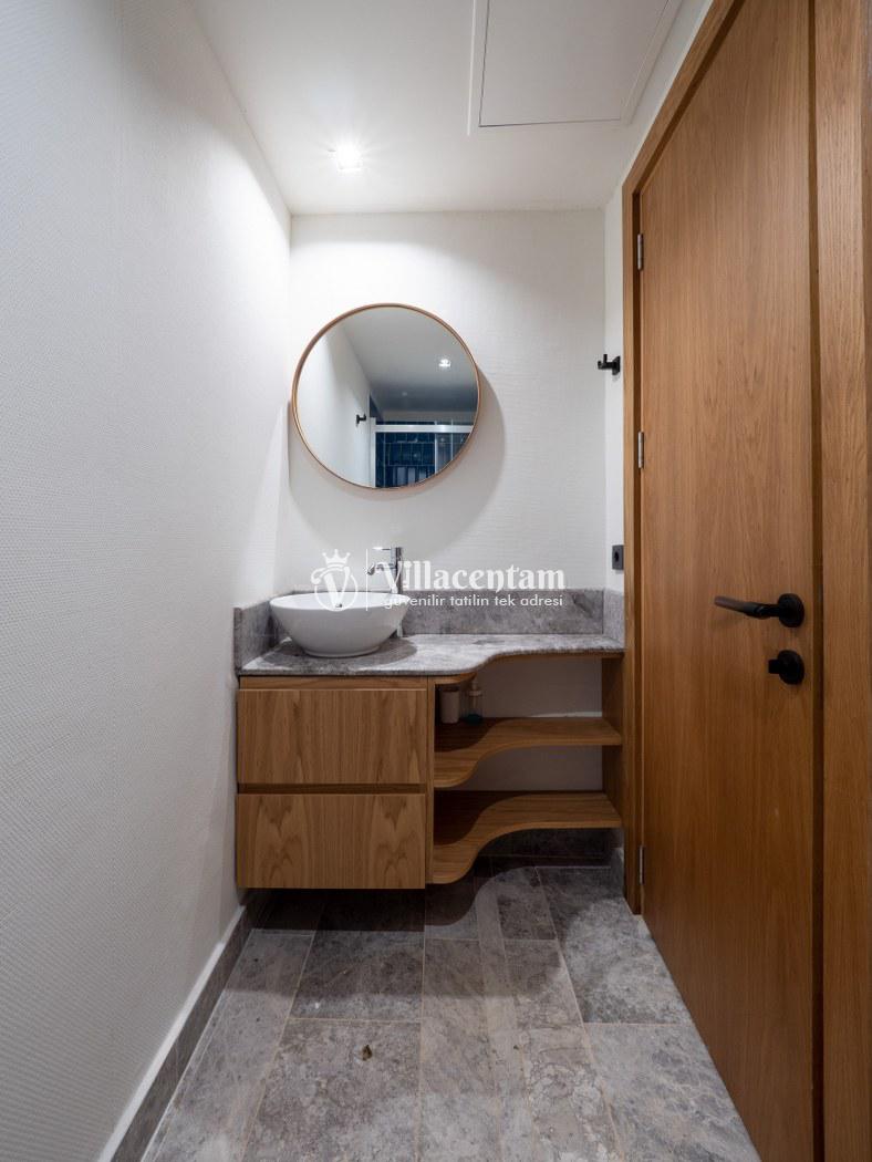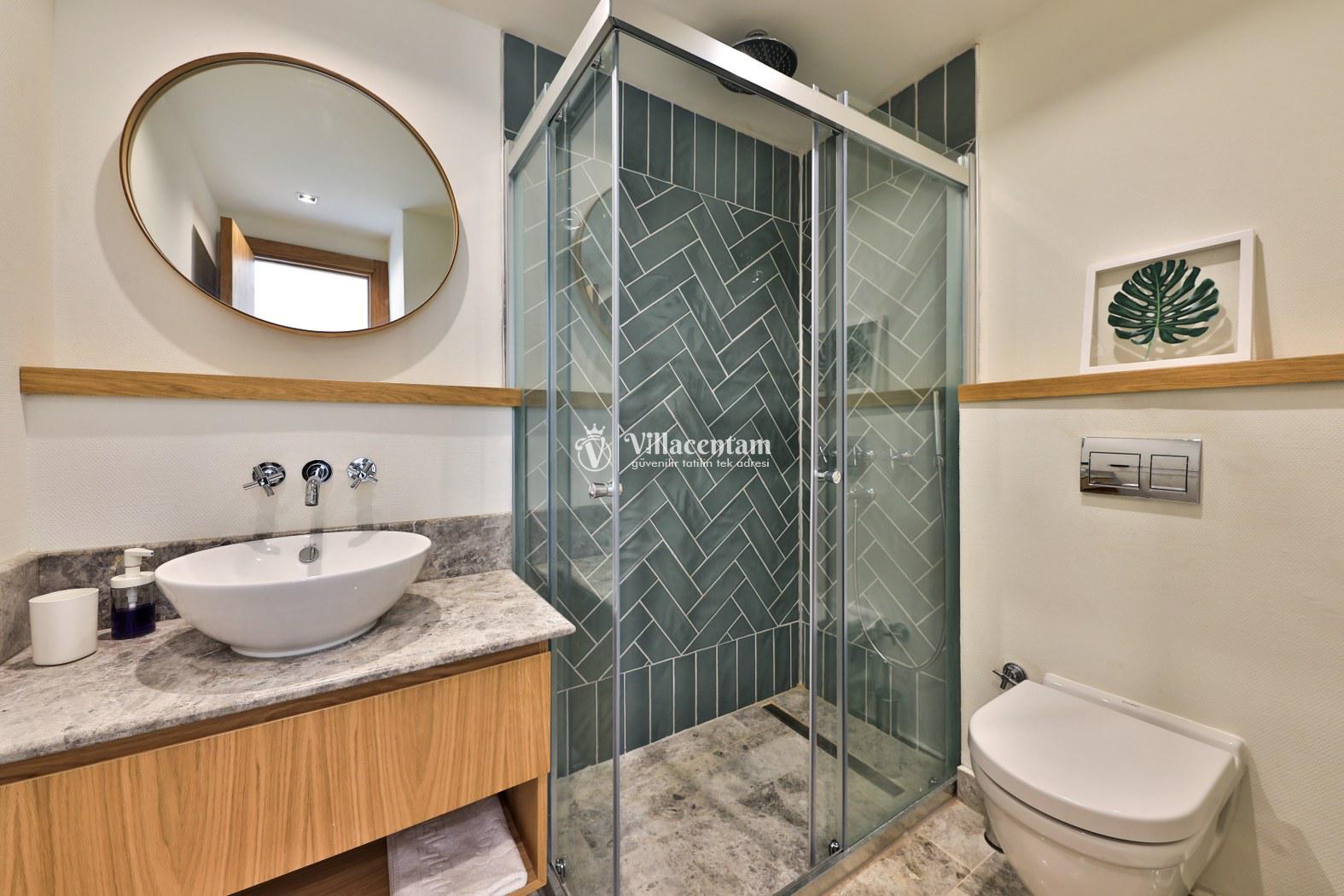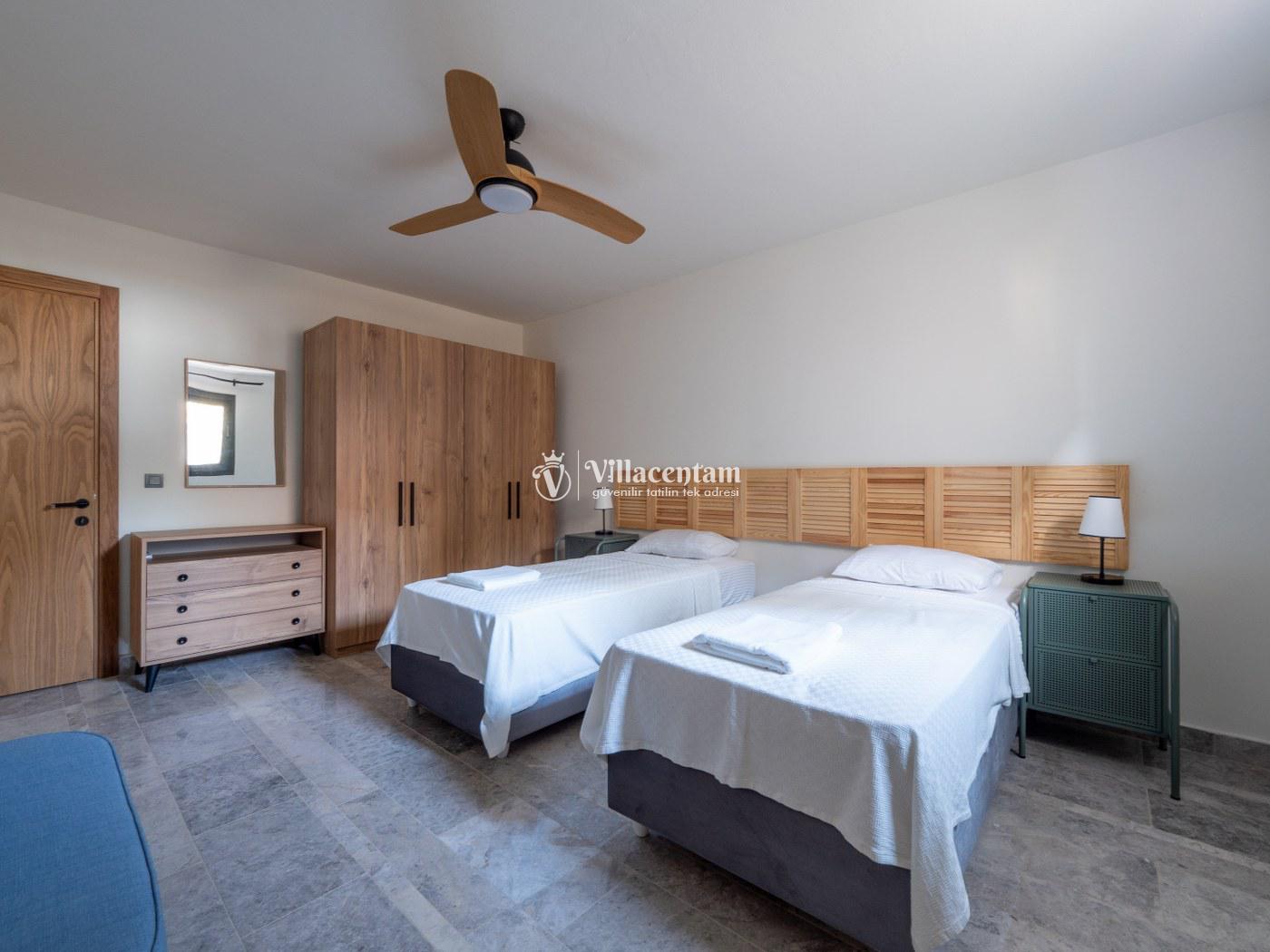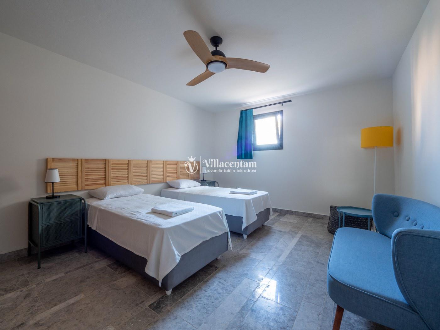 *Villalarda sıcak su için güneş enerjili su ısıtma sistemleri kullanılmaktadır. Çok yoğun sıcak su kullanımında, yoğunluğa ve su tankının büyüklüğüne bağlı olarak su tankında sıcak su tükenebilmekte ve tekrar suyun ısınması için belirli bir süre geçmesi gerekmektedir. Bu not sadece bu villa ile ilgili değil, tüm villalarımız için geçerli bir durumdur.