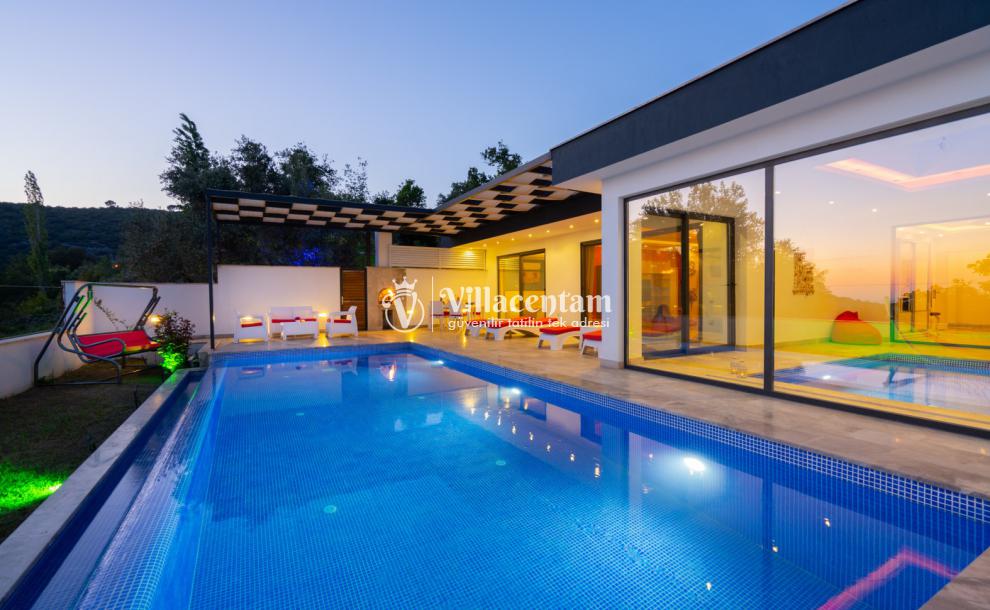 Kalkan Üzümlü köyünde konumlanmakta olan Villa Aşkım, yeşilliklerle kaplı doğanın içerisinde tek katlı kiralık villalarımız arasında yer almaktadır. Modern ve konforlu bir şekilde dekore edilen yazlık villamızda 2 adet yatak odası bulunmakta olup, 4 kişiye konaklama imkanı sağlamaktadır. Yatak odasının içerisinde tüm yılın vermiş olduğu yorgunluğu giderebileceğiniz jakuzi, hemen yanında ise jakuzili kapalı ısıtmalı havuzu bulunmaktadır. Ayrıca villamızda masa tenisi ve sauna yer almaktadır. Havuz ve havuz terası korunaklı hale getirilen yazlık villamız dışarıdan bir kişi tarafından görülmemektedir. Balayı çiftlerimiz, muhafazakar ailelerimiz gönül rahatlığı ile tercih edebilirler. Havuz terasında bahçe grupları ve hamak yer almaktadır. Havuzunuzun tadını çıkarabilir, sessizlik ve sakinlik içerisinde yeme içme keyiflerini en güzel hale getirebilirsiniz. Hayallerinizin de ötesinde muhteşem bir yazlık villada tatil için Villa Aşkım’ı tercih edebilirsiniz.