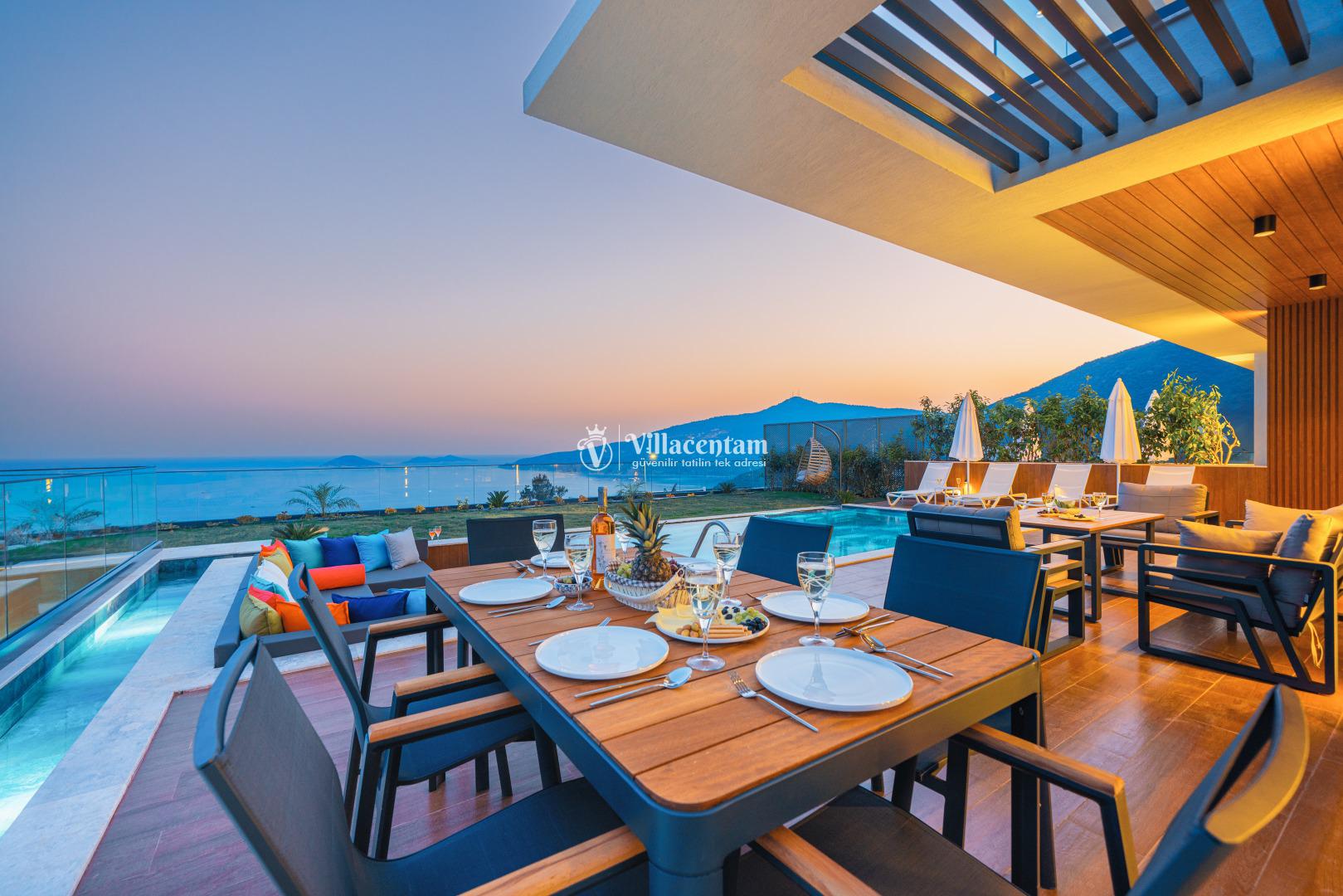 Yürüme mesafesindeki market, manav ve günlük ihtiyaç noktaları sayesinde villa, konum avantajıyla da öne çıkmaktadır. Geniş bahçe alanı ve ferah havuz terası, tatiliniz boyunca keyifli vakit geçirmeniz için özenle tasarlanmıştır. Havuz alanında konforlu oturma grubu, şezlonglar, güneş şemsiyesi ve salıncak yer almakta olup; misafirler gün boyu Kalamar Koyu’nun büyüleyici deniz manzarasının tadını çıkarabilirler. Ayrıca villada misafirlerin kullanımına özel otopark alanı da bulunmaktadır.