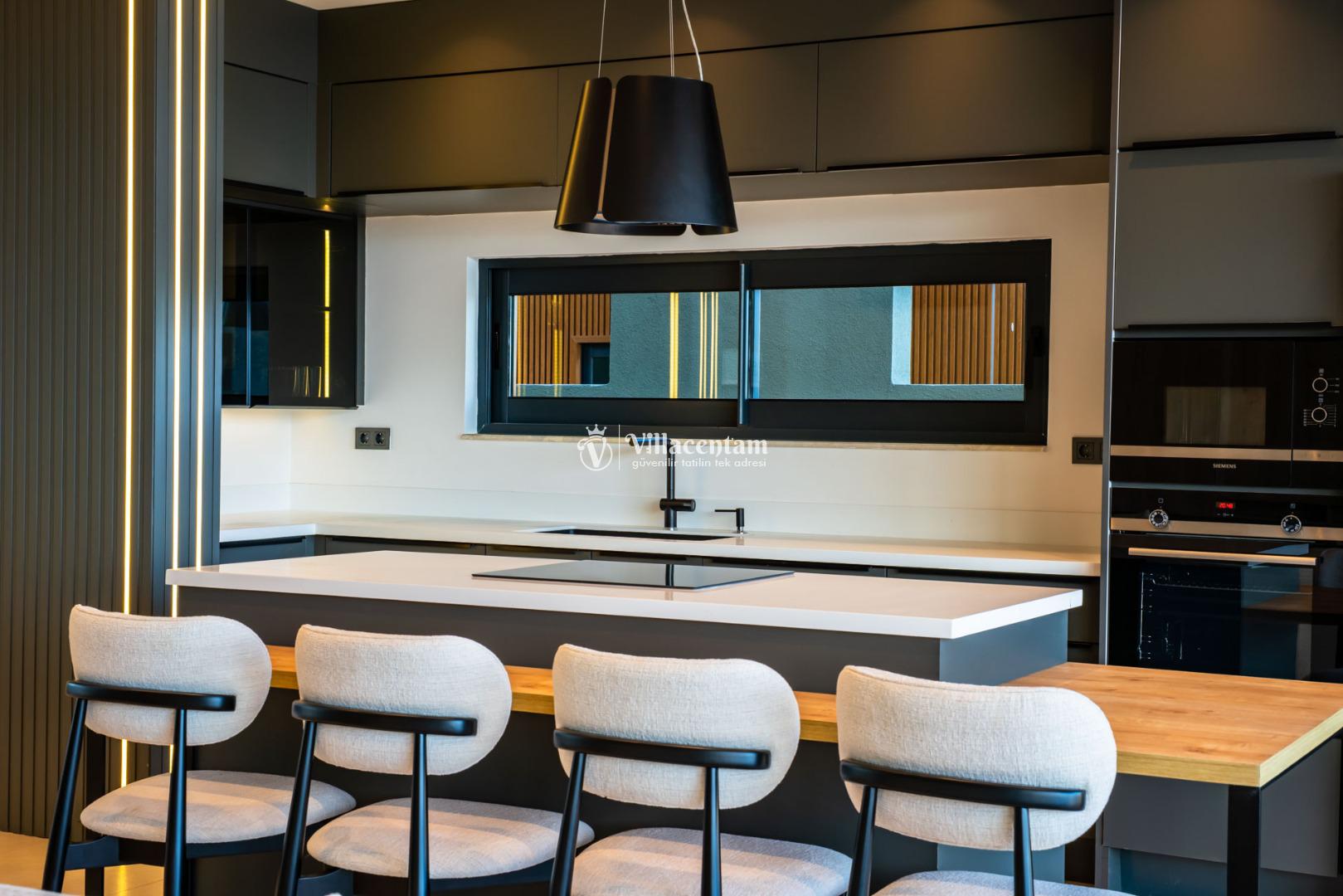 Modern Amerikan mutfak; buzdolabı, bulaşık makinesi, ocak, fırın, yemek takımları ve çeşitli mutfak gereçleri ile donatılmıştır. Rahat bir kullanım sunan mutfak, tatil boyunca ihtiyaç duyacağınız tüm ekipmanları sizlere sağlar.