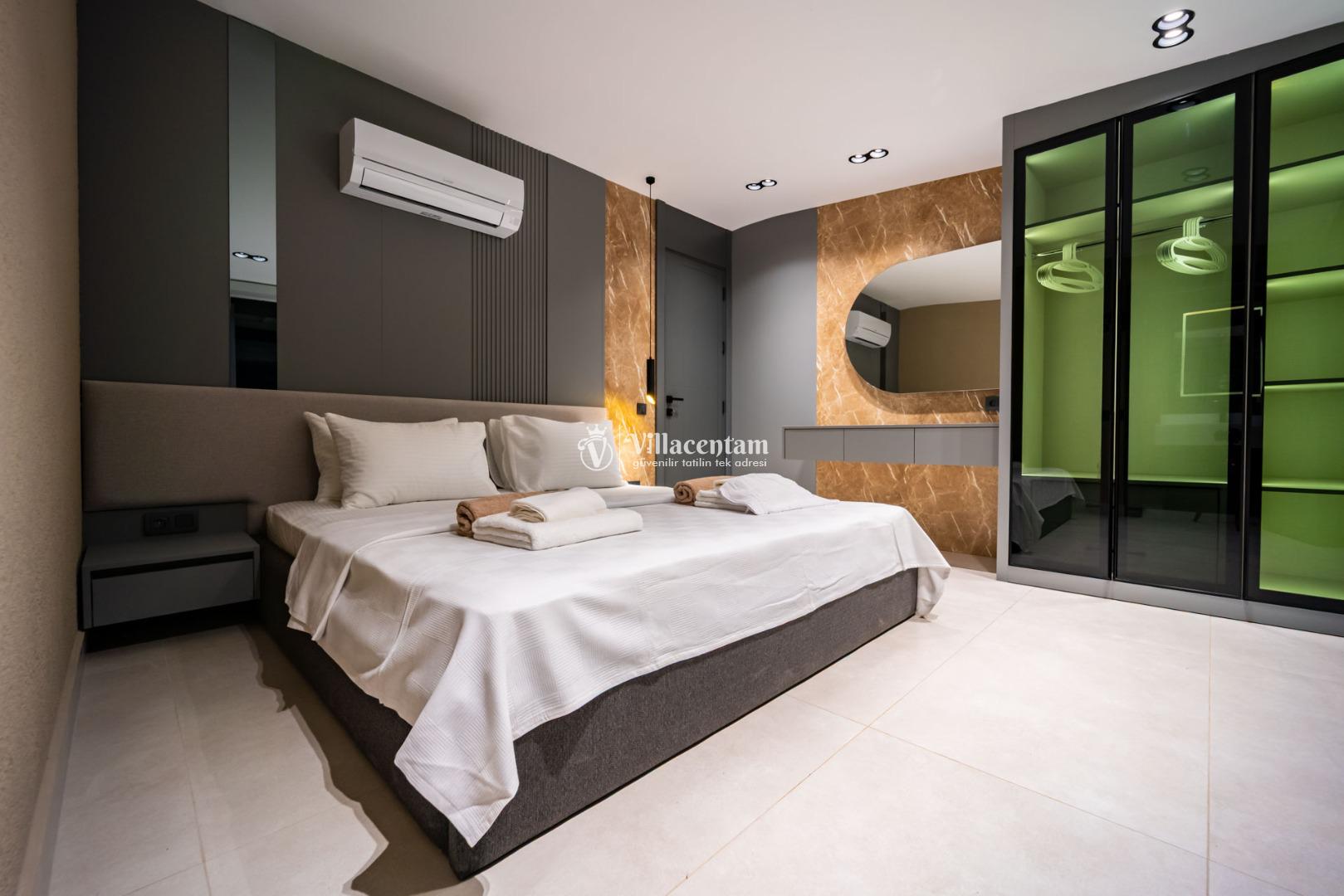 Kalkan’ın gözde Kalamar bölgesinde yer alan Villa Aura C, doğa ve deniz manzarasını bir arada sunan modern ve konforlu bir tatil villasıdır. Toplam 3 yatak odası ile 6 kişilik konaklama kapasitesi sunan villa; hem aileler hem de arkadaş grupları için ideal bir tatil atmosferi oluşturur. Aynı bölgede bulunan kardeş villa Villa Aura D ile birlikte kiralandığında kapasite 12 kişiye kadar çıkabilmekte, böylece kalabalık gruplar için mükemmel bir seçenek haline gelmektedir.