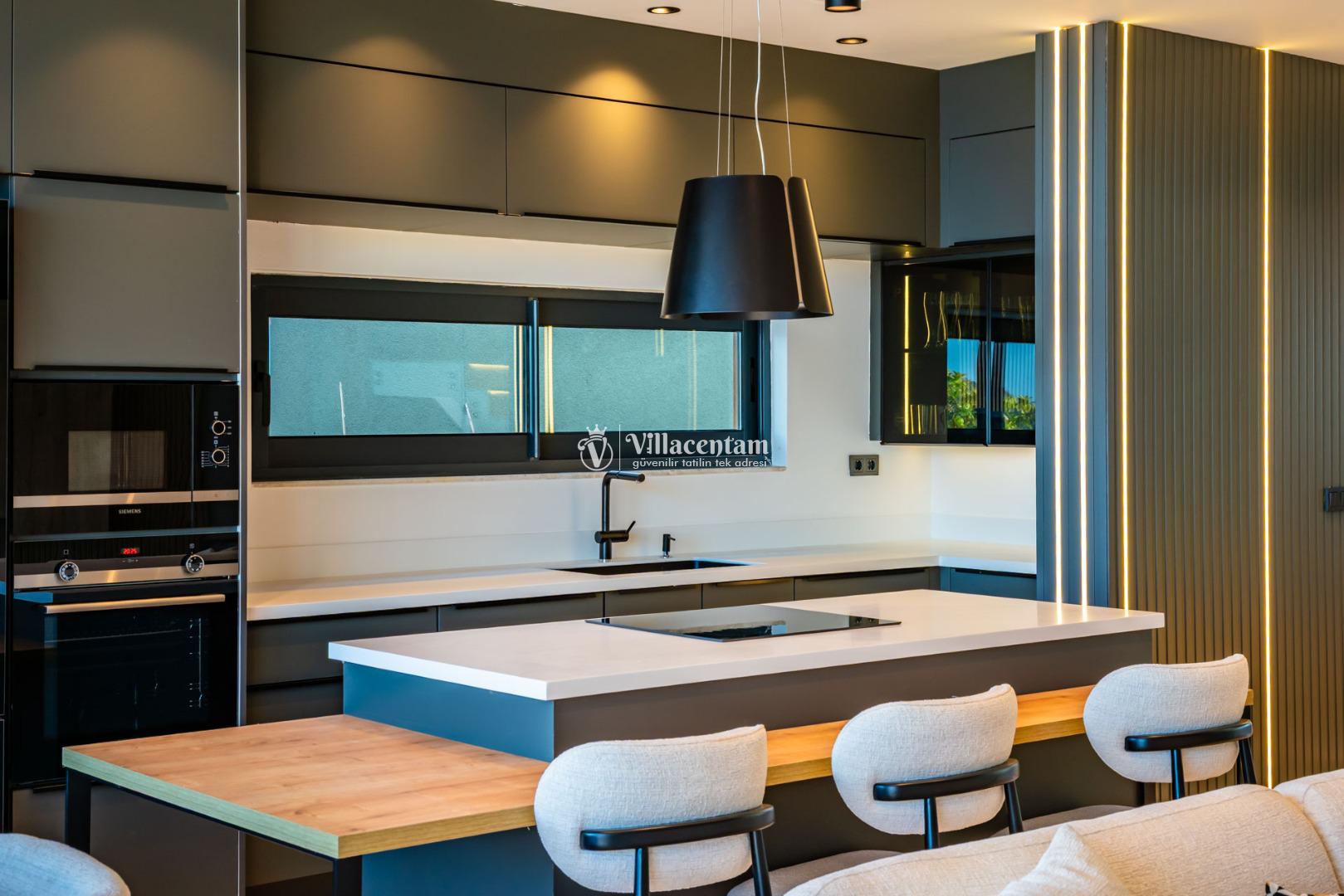 Modern çizgilere sahip Amerikan mutfakta; buzdolabı, bulaşık makinesi, ocak, fırın, yemek takımları ve çeşitli mutfak gereçleri eksiksiz bir şekilde yer almaktadır. Tatiliniz boyunca rahatça yemek hazırlayabileceğiniz fonksiyonel bir mutfak alanı sunar.