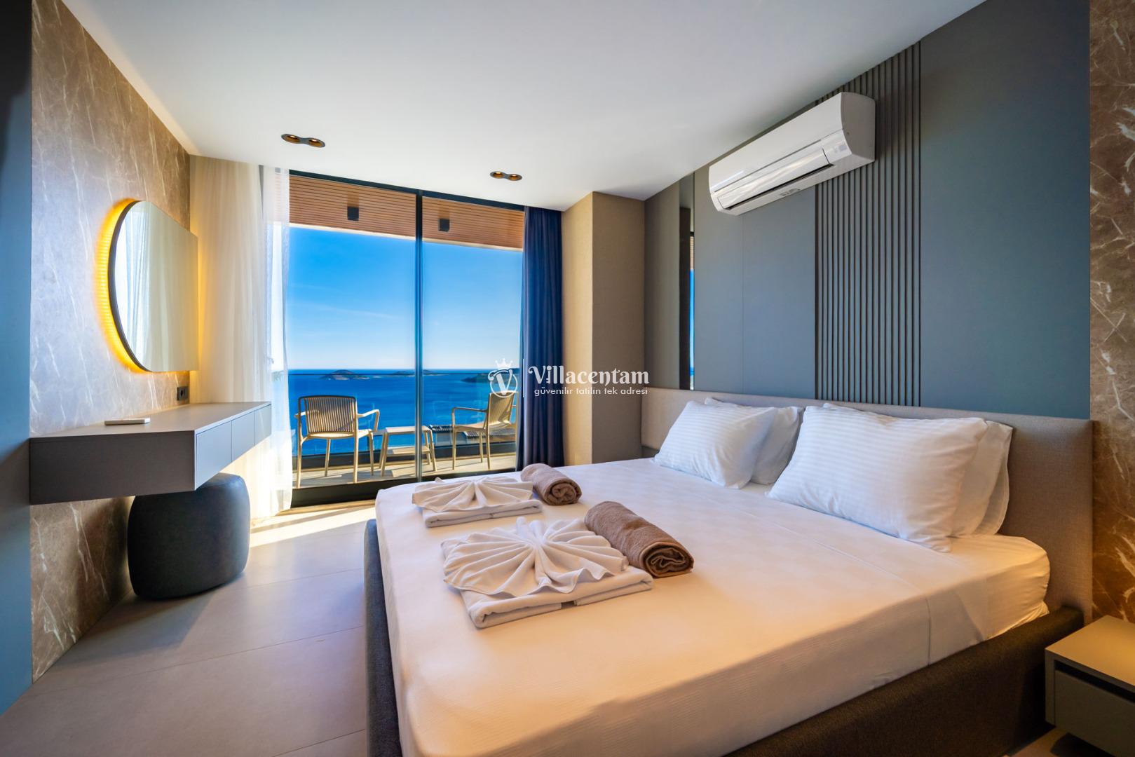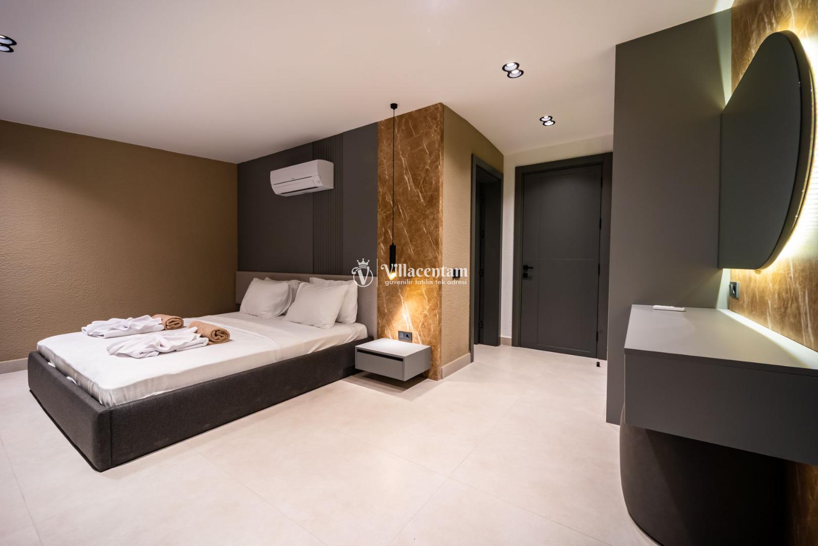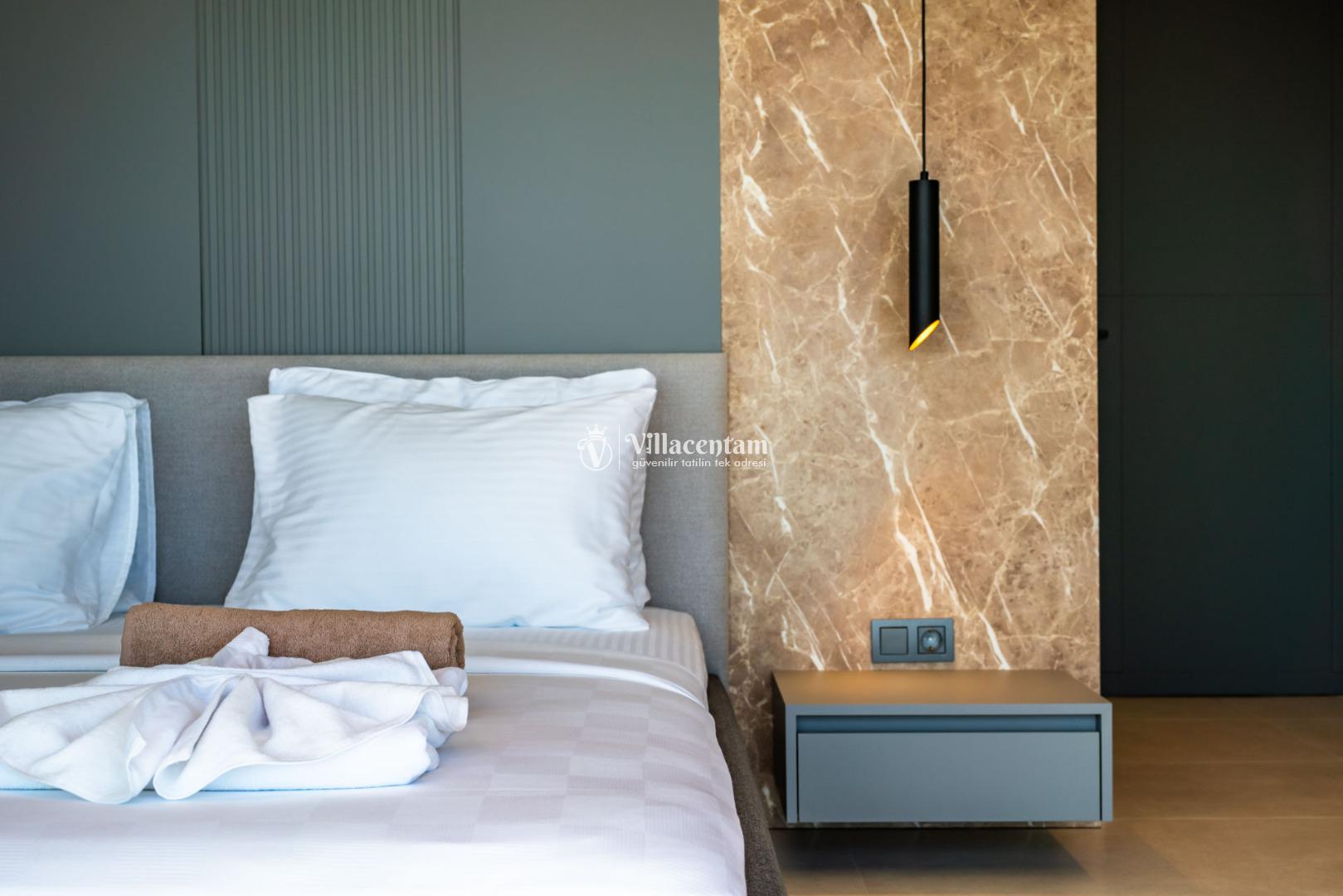 Villa Aura F, konuma bağlı avantajlarıyla da dikkat çeker. Market, manav ve günlük ihtiyaç noktalarına yürüyüş mesafesinde yer alan villa, tatil boyunca kolay ve rahat bir ulaşım sağlar. Geniş bahçe alanı ve ferah havuz terası; konforlu oturma grubu, şezlonglar, güneş şemsiyesi ve salıncak gibi detaylarla misafirlerine keyifli vakit geçirme imkânı sunar. Gün boyunca Kalamar’ın büyüleyici deniz manzarasını izleyebilir, huzur dolu bir tatil deneyimi yaşayabilirsiniz. Villada ayrıca misafirler için özel otopark alanı da mevcuttur.
