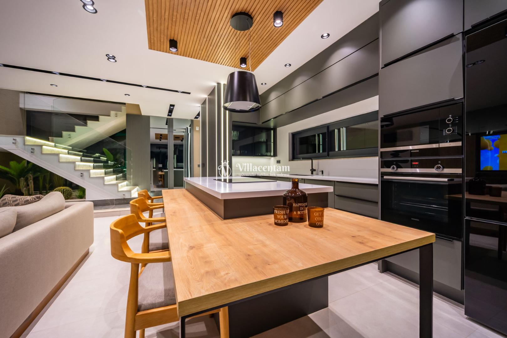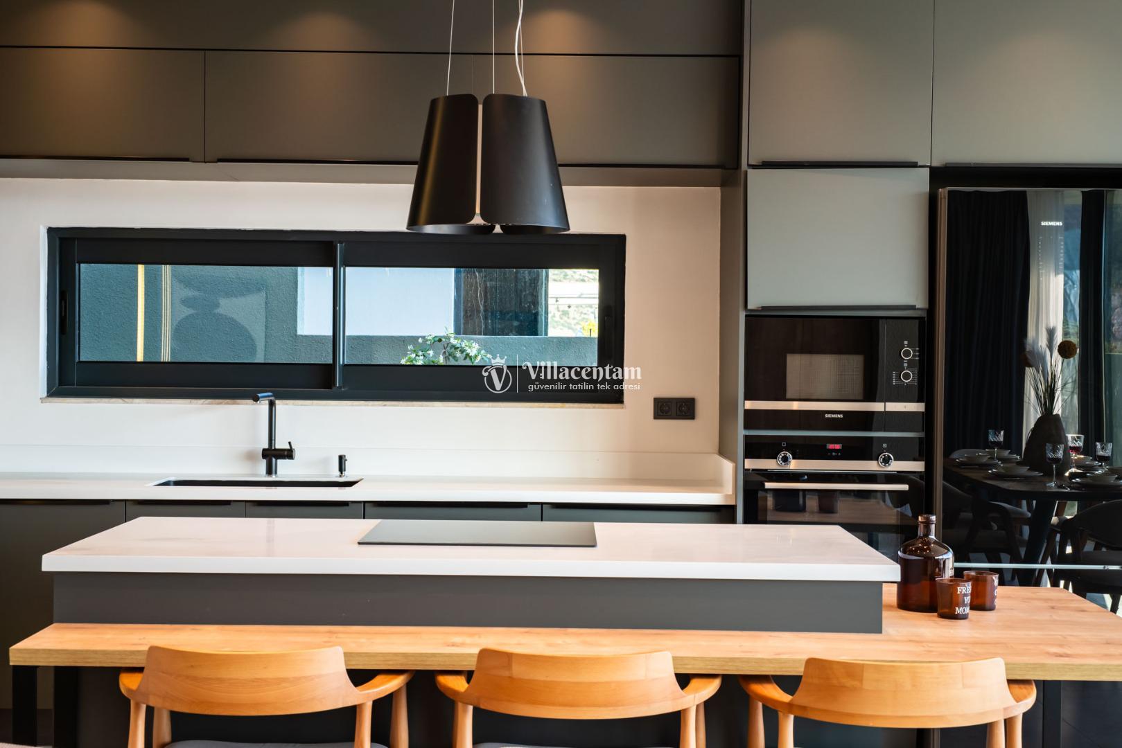 Modern çizgilere sahip Amerikan mutfakta; buzdolabı, bulaşık makinesi, ocak, fırın, yemek takımları ve çeşitli mutfak gereçleri eksiksiz bir şekilde yer almaktadır. Tatiliniz boyunca rahatça yemek hazırlayabileceğiniz fonksiyonel bir mutfak alanı sunar.