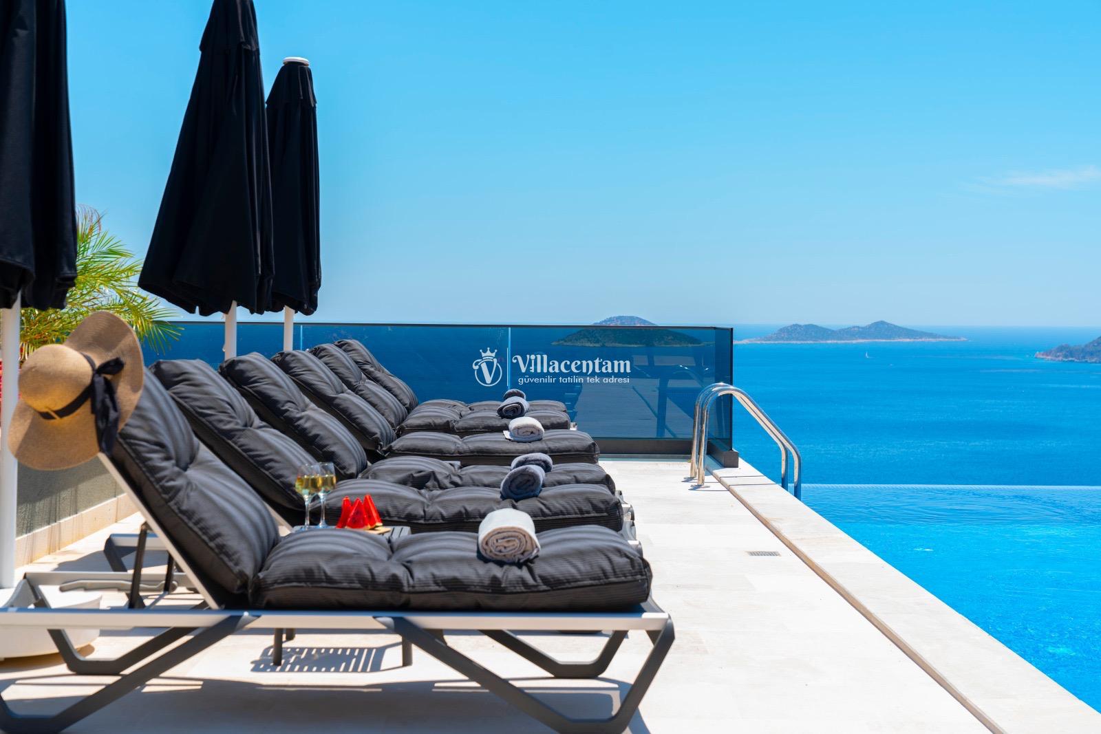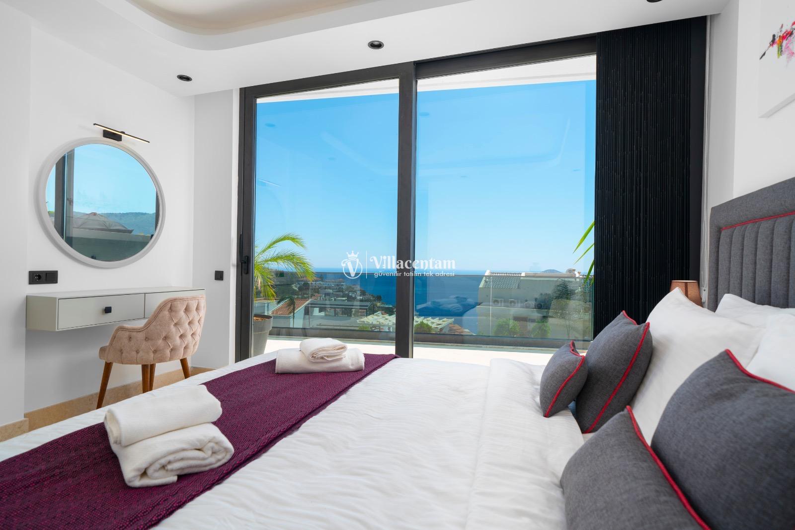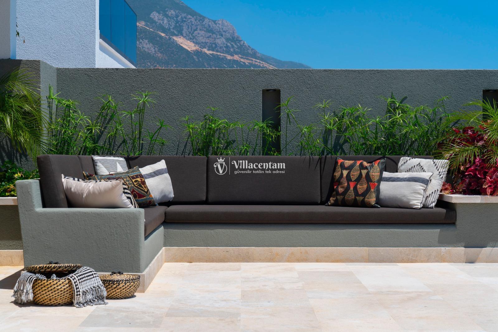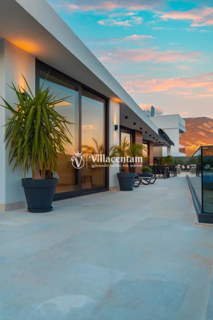 Villa Ayşe, Kalkan merkezinin tüm olanaklarına yürüme mesafesinde, eşsiz deniz manzarasına hakim konumuyla öne çıkan bu özel villa; konfor, şıklık ve huzuru bir arada sunan benzersiz bir tatil deneyimi için tasarlanmıştır. Modern mimarisi, geniş yaşam alanları ve ihtiyaç duyabileceğiniz tüm detayların düşünülmüş olmasıyla, hem kalabalık aileler hem de arkadaş grupları için ideal bir konaklama imkânı sağlar. Toplamda 12 kişilik konaklama kapasitesine sahip villamız; ferah odaları, yüksek tavanlı iç mekânları ve panoramik manzara sunan pencereleriyle aydınlık bir atmosfer yaratır. Her odada rahat yataklar, modern mobilyalar ve özel depolama alanları bulunur. Ayrıca bazı odalar özel balkon veya teras çıkışına sahiptir. Villa Ayşe' ye adım attığınız anda sizi karşılayan geniş salon; deniz manzarasına açılan büyük cam yüzeyleri, konforlu oturma grubu ve zarif dekorasyonuyla hem dinlenmek hem de sevdiklerinizle kaliteli zaman geçirmek için mükemmeldir. Açık plan mutfak, tam donanımlı yapısı sayesinde kolaylıkla yemek hazırlamanızı sağlar.