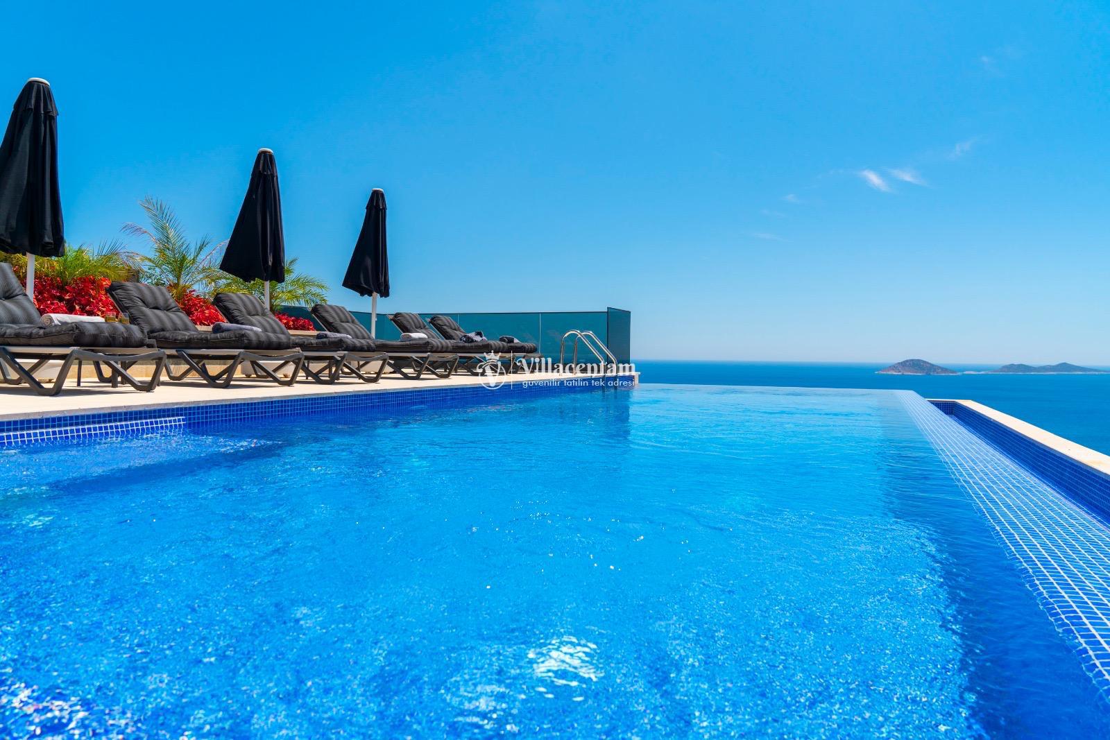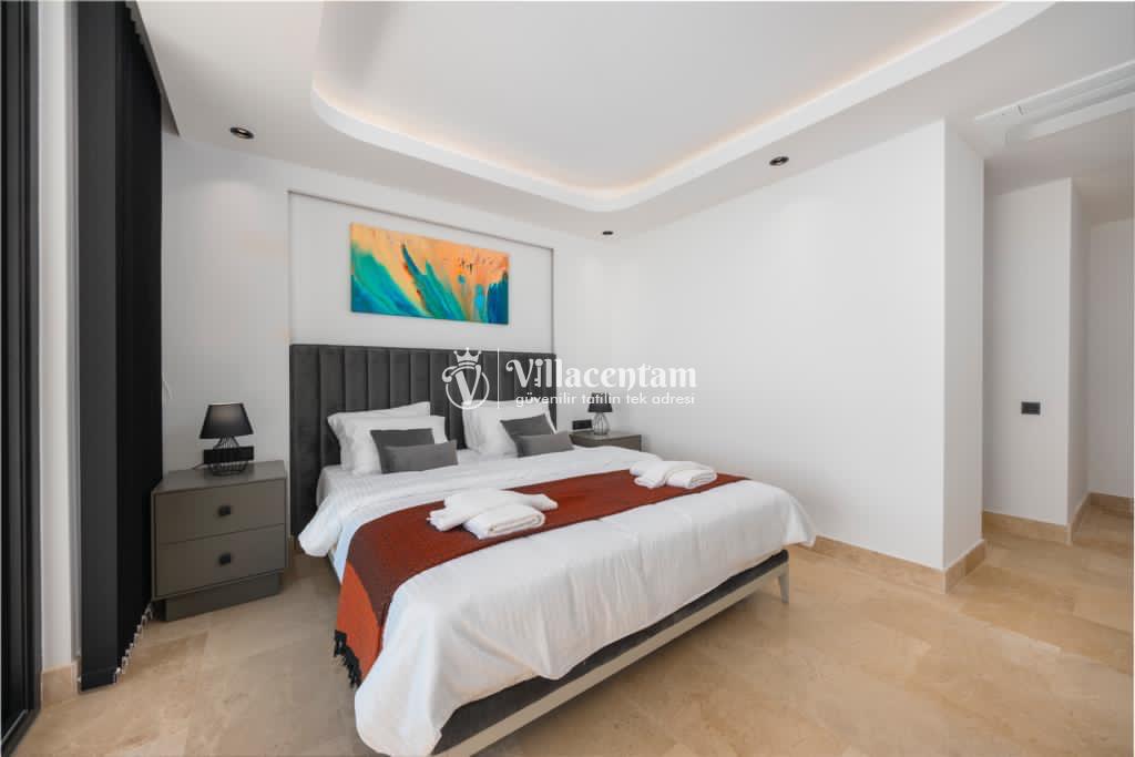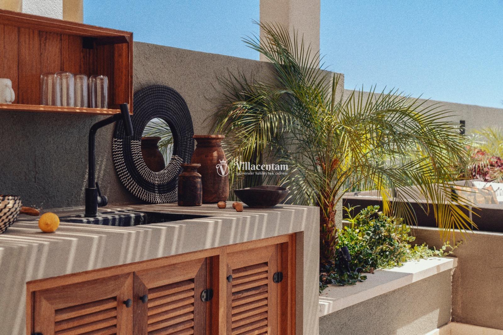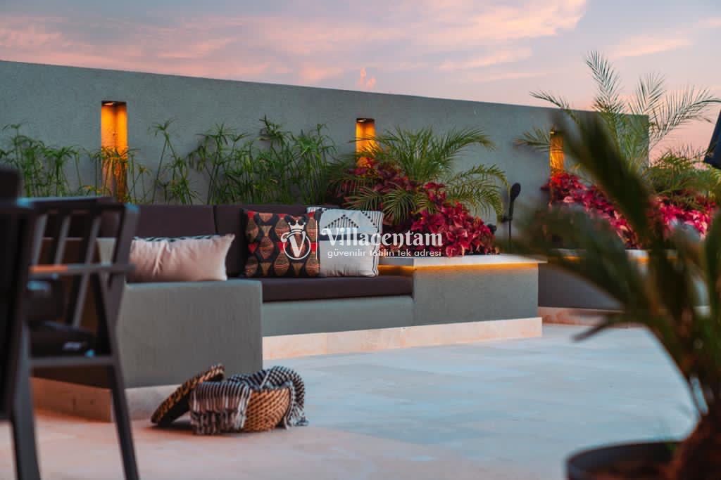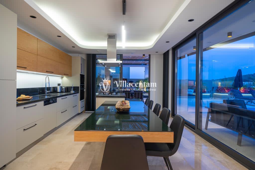 Villa Ayşe, Kalkan merkezinin tüm olanaklarına yürüme mesafesinde, eşsiz deniz manzarasına hakim konumuyla öne çıkan bu özel villa; konfor, şıklık ve huzuru bir arada sunan benzersiz bir tatil deneyimi için tasarlanmıştır. Modern mimarisi, geniş yaşam alanları ve ihtiyaç duyabileceğiniz tüm detayların düşünülmüş olmasıyla, hem kalabalık aileler hem de arkadaş grupları için ideal bir konaklama imkânı sağlar. Toplamda 12 kişilik konaklama kapasitesine sahip villamız; ferah odaları, yüksek tavanlı iç mekânları ve panoramik manzara sunan pencereleriyle aydınlık bir atmosfer yaratır. Her odada rahat yataklar, modern mobilyalar ve özel depolama alanları bulunur. Ayrıca bazı odalar özel balkon veya teras çıkışına sahiptir. Villa Ayşe' ye adım attığınız anda sizi karşılayan geniş salon; deniz manzarasına açılan büyük cam yüzeyleri, konforlu oturma grubu ve zarif dekorasyonuyla hem dinlenmek hem de sevdiklerinizle kaliteli zaman geçirmek için mükemmeldir. Açık plan mutfak, tam donanımlı yapısı sayesinde kolaylıkla yemek hazırlamanızı sağlar.
