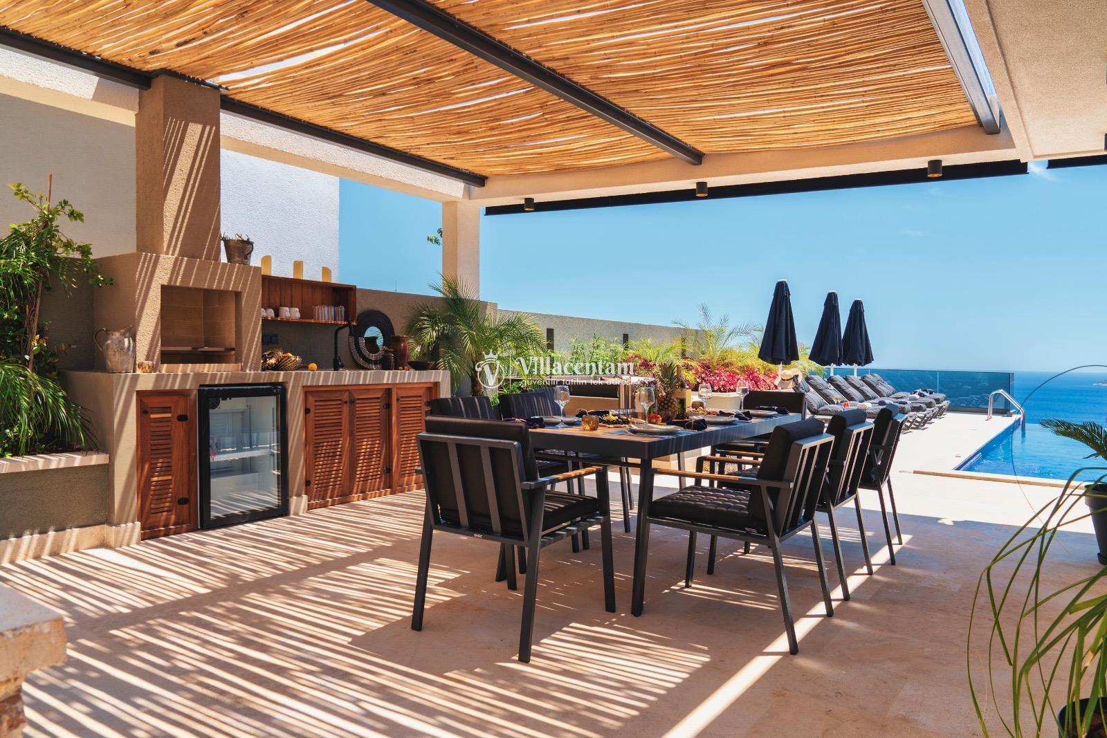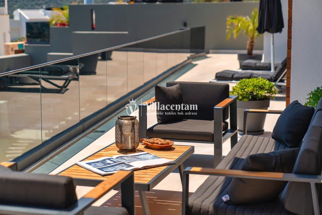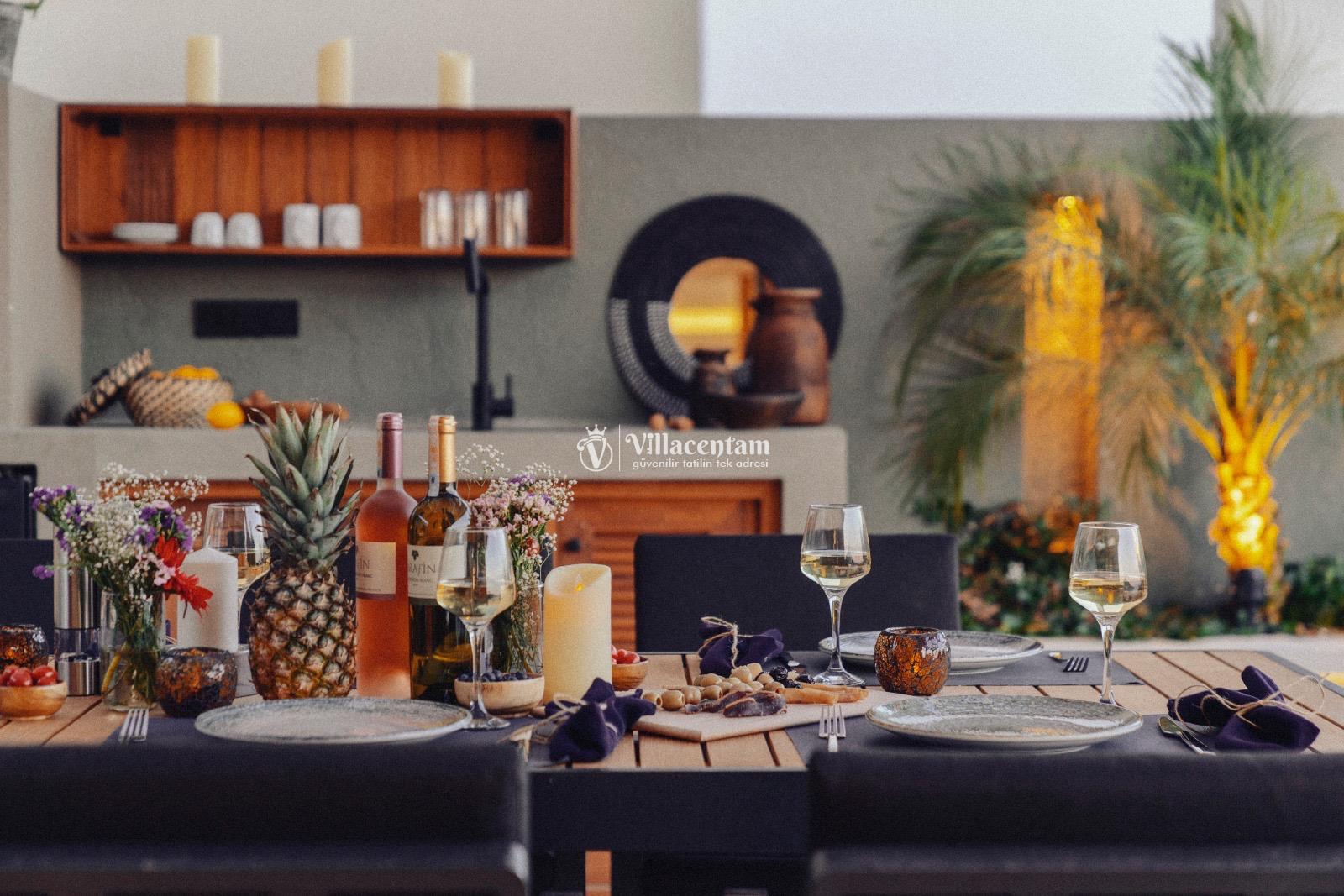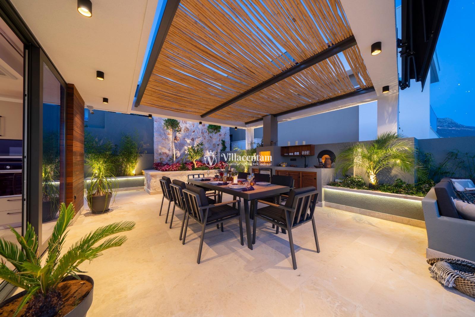Villa Ayşe, Kalkan merkezinin tüm olanaklarına yürüme mesafesinde, eşsiz deniz manzarasına hakim konumuyla öne çıkan bu özel villa; konfor, şıklık ve huzuru bir arada sunan benzersiz bir tatil deneyimi için tasarlanmıştır. Modern mimarisi, geniş yaşam alanları ve ihtiyaç duyabileceğiniz tüm detayların düşünülmüş olmasıyla, hem kalabalık aileler hem de arkadaş grupları için ideal bir konaklama imkânı sağlar. Toplamda 12 kişilik konaklama kapasitesine sahip villamız; ferah odaları, yüksek tavanlı iç mekânları ve panoramik manzara sunan pencereleriyle aydınlık bir atmosfer yaratır. Her odada rahat yataklar, modern mobilyalar ve özel depolama alanları bulunur. Ayrıca bazı odalar özel balkon veya teras çıkışına sahiptir. Villa Ayşe' ye adım attığınız anda sizi karşılayan geniş salon; deniz manzarasına açılan büyük cam yüzeyleri, konforlu oturma grubu ve zarif dekorasyonuyla hem dinlenmek hem de sevdiklerinizle kaliteli zaman geçirmek için mükemmeldir. Açık plan mutfak, tam donanımlı yapısı sayesinde kolaylıkla yemek hazırlamanızı sağlar.