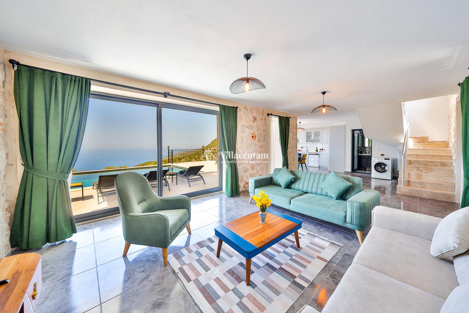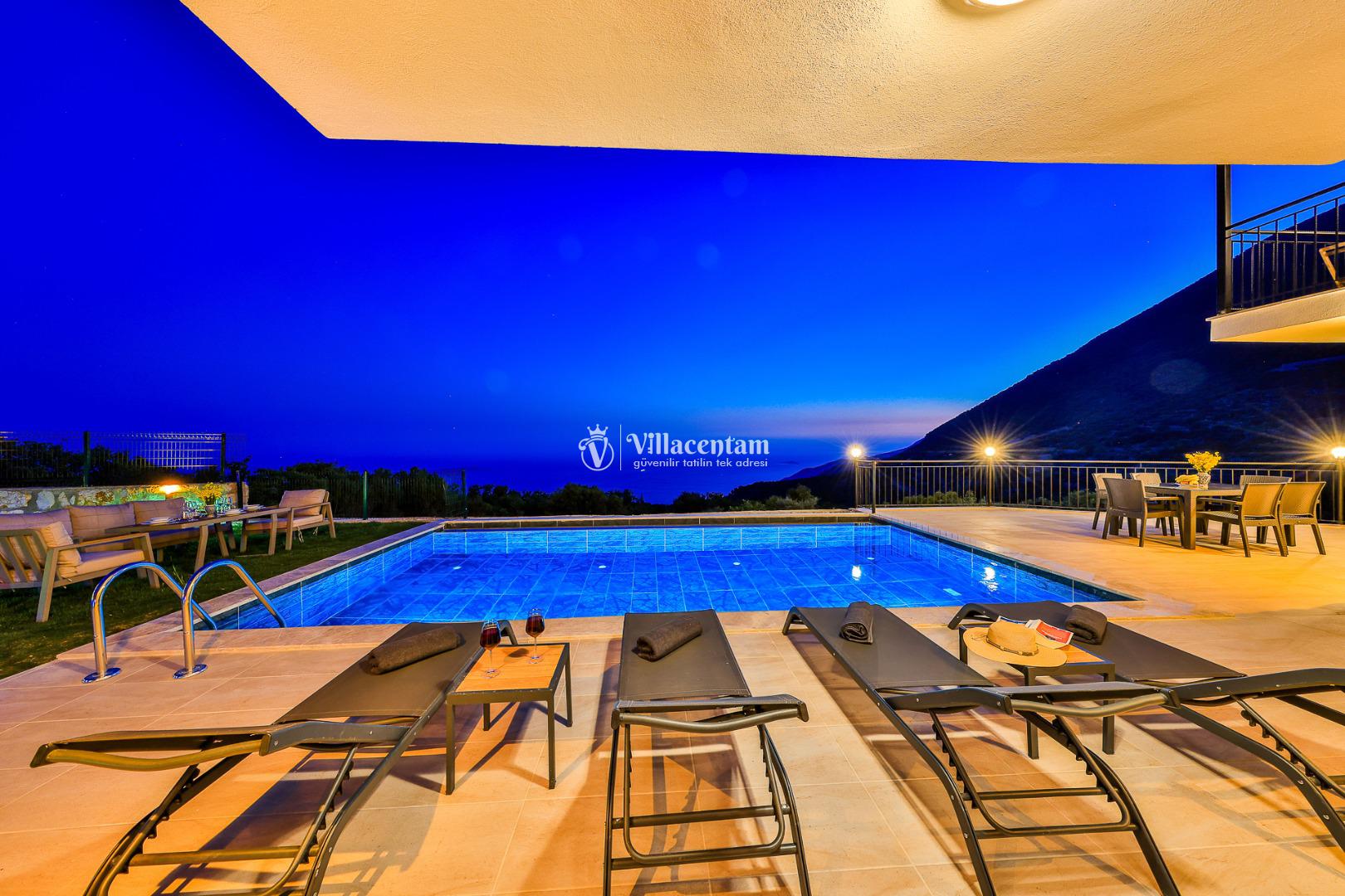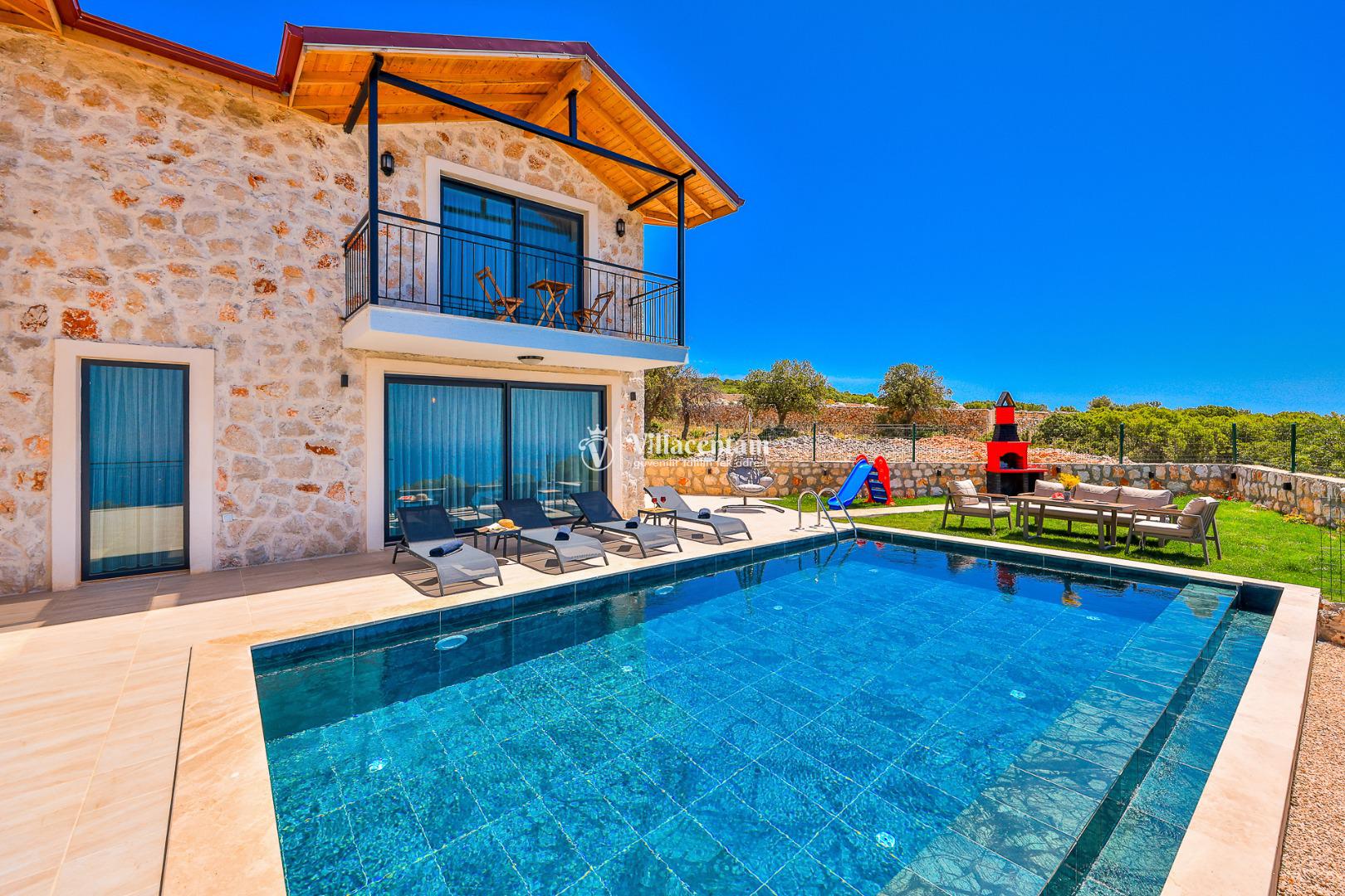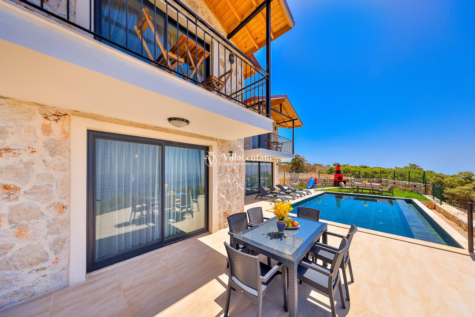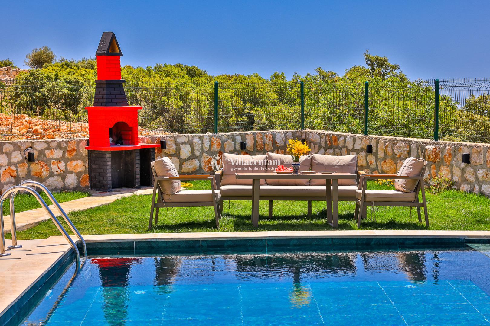 Villa Badem Çiçeği, Kaş Mumuda mevkiinde konumlanan muhteşem deniz manzarasıyla misafirlerini karşılayan bu özel villa, huzur, konfor ve ayrıcalığı bir arada sunarak unutulmaz bir tatil deneyimi vadediyor. Doğanın tüm renklerini ve denizin sonsuz maviliğini ayaklarınızın altına seren villa, özellikle sakinlik ve mahremiyet arayan misafirler için ideal bir konaklama seçeneğidir. Toplam 4 kişilik konaklama kapasitesine sahip olan villada, modern ve şık bir anlayışla tasarlanmış 2 adet yatak odası bulunmaktadır. Odalar ferah yapıları, konforlu yatakları ve özenle seçilmiş mobilyalarıyla misafirlerin rahatlığı düşünülerek hazırlanmıştır. Yatak odalarından deniz manzarasını izleyerek güne başlamak, tatilinize ayrı bir keyif katacaktır. Villa içerisinde tam donanımlı bir açık plan mutfak yer almakta olup; buzdolabı, fırın, ocak, bulaşık makinesi, su ısıtıcısı ve gerekli tüm mutfak gereçleri mevcuttur. Şık ve konforlu salon bölümü, deniz manzarasına açılan geniş pencereleriyle gün boyu aydınlık bir atmosfer sunar. Salonda rahat oturma grubu, televizyon ve klima bulunmaktadır. Villanın en dikkat çekici özelliklerinden biri ise geniş terası ve balkonudur. Burada gün batımını izleyebilir, deniz manzarası eşliğinde kahvenizi yudumlayabilir ya da sevdiklerinizle keyifli akşam yemekleri yiyebilirsiniz. Dış alan, tatilinizi açık havada doyasıya yaşamanız için özenle düzenlenmiştir.