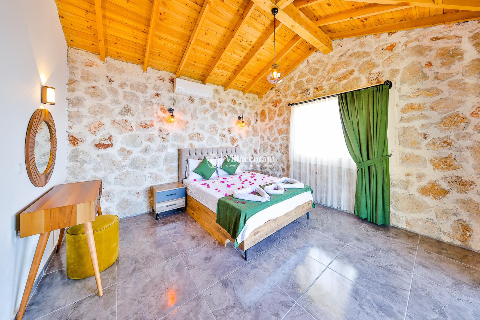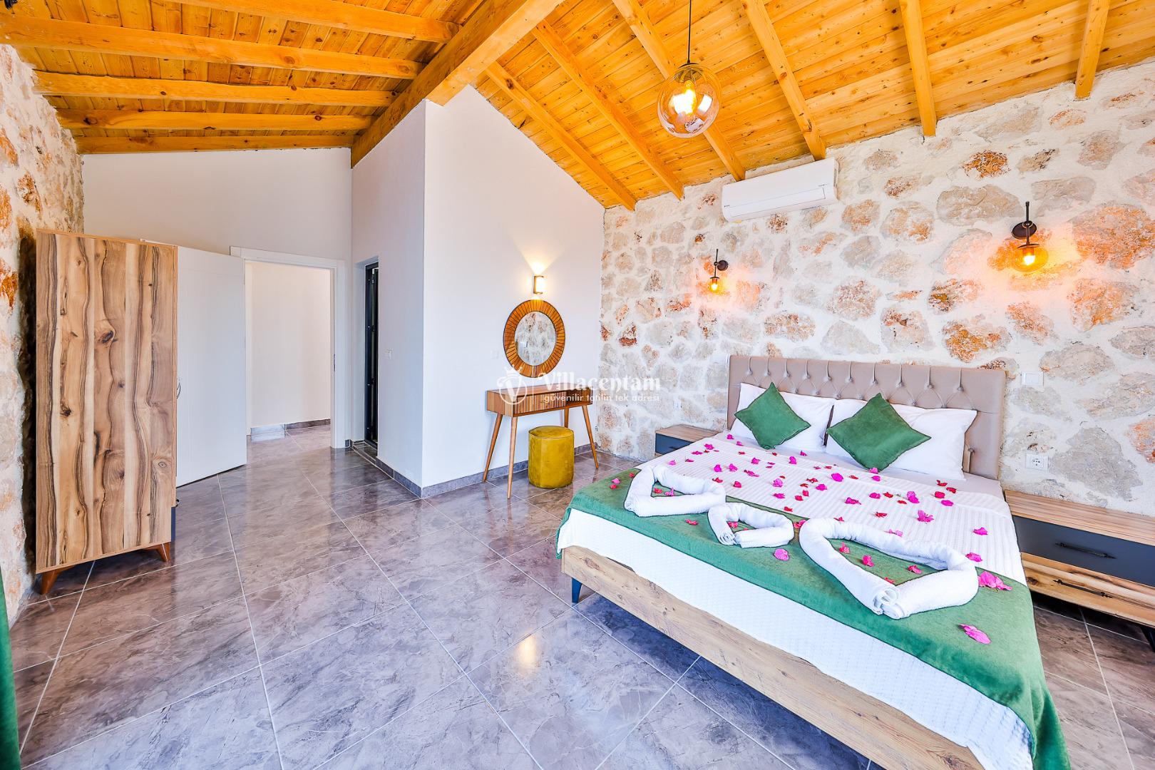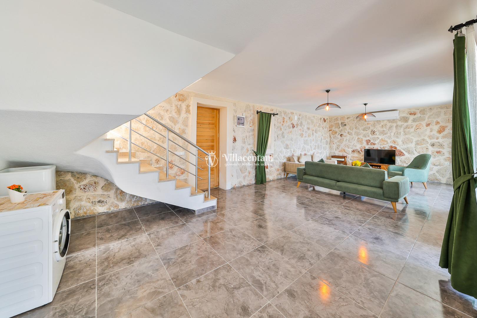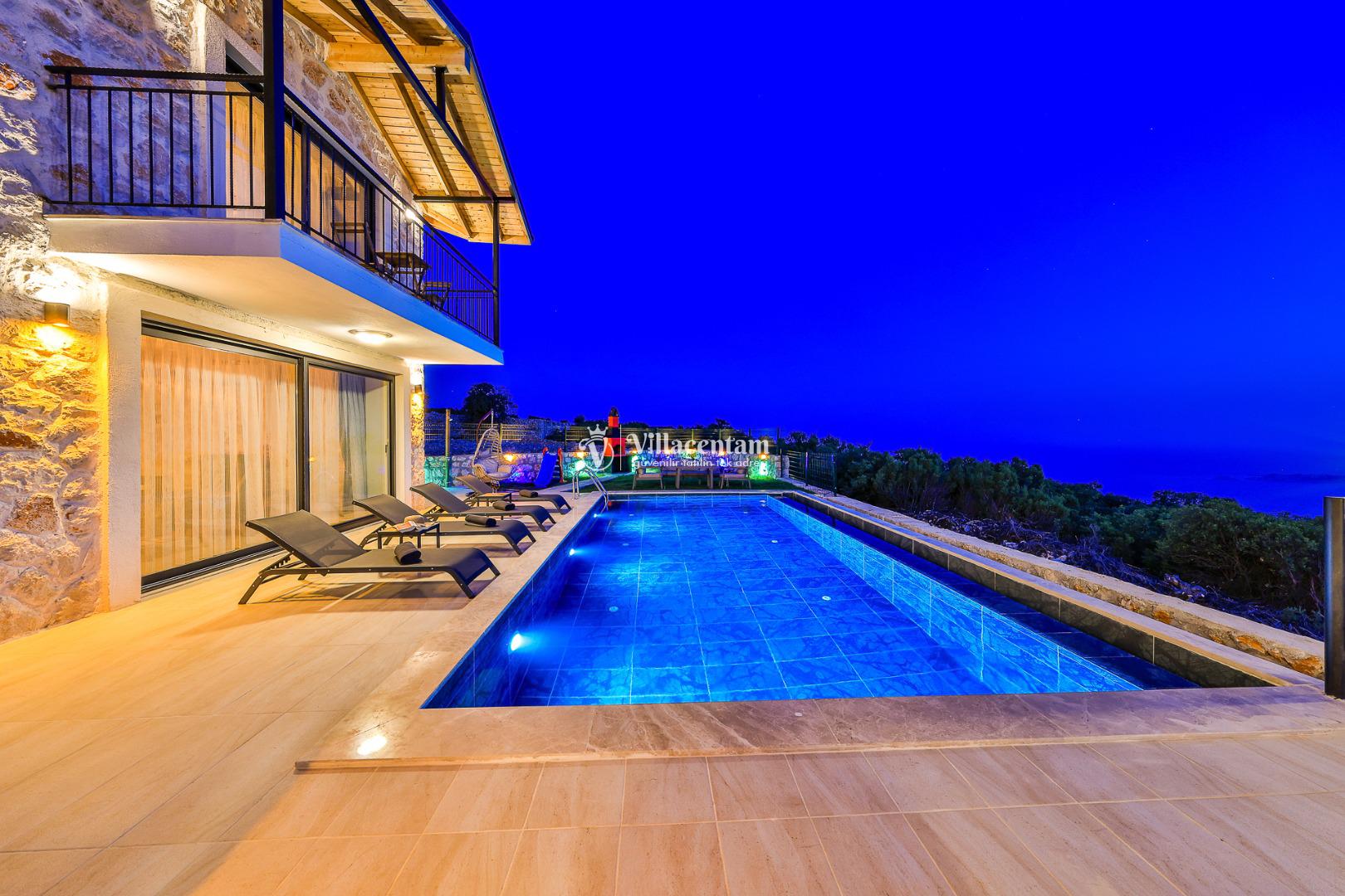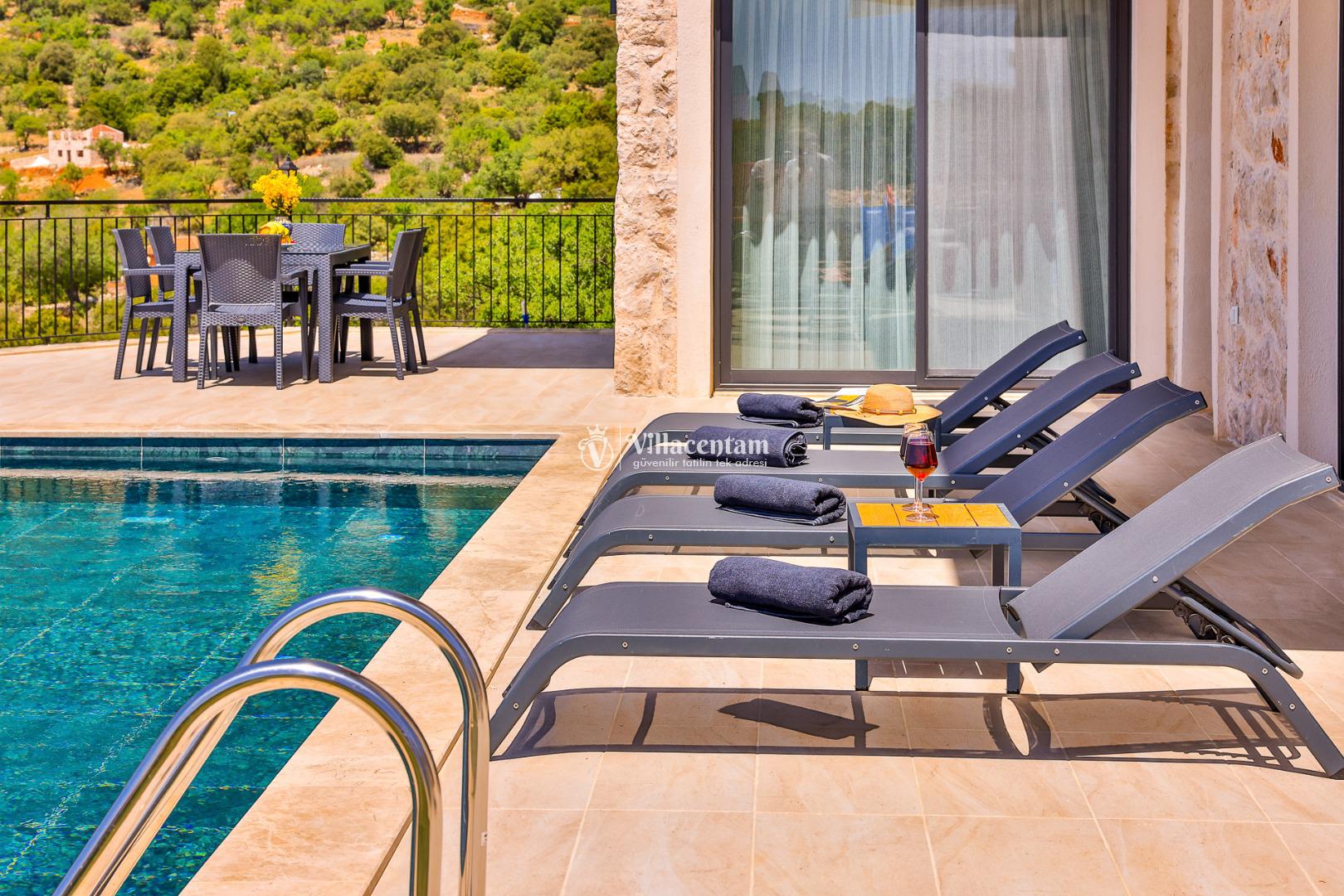 Villa Badem Çiçeği, Kaş Mumuda mevkiinde konumlanan muhteşem deniz manzarasıyla misafirlerini karşılayan bu özel villa, huzur, konfor ve ayrıcalığı bir arada sunarak unutulmaz bir tatil deneyimi vadediyor. Doğanın tüm renklerini ve denizin sonsuz maviliğini ayaklarınızın altına seren villa, özellikle sakinlik ve mahremiyet arayan misafirler için ideal bir konaklama seçeneğidir. Toplam 4 kişilik konaklama kapasitesine sahip olan villada, modern ve şık bir anlayışla tasarlanmış 2 adet yatak odası bulunmaktadır. Odalar ferah yapıları, konforlu yatakları ve özenle seçilmiş mobilyalarıyla misafirlerin rahatlığı düşünülerek hazırlanmıştır. Yatak odalarından deniz manzarasını izleyerek güne başlamak, tatilinize ayrı bir keyif katacaktır. Villa içerisinde tam donanımlı bir açık plan mutfak yer almakta olup; buzdolabı, fırın, ocak, bulaşık makinesi, su ısıtıcısı ve gerekli tüm mutfak gereçleri mevcuttur. Şık ve konforlu salon bölümü, deniz manzarasına açılan geniş pencereleriyle gün boyu aydınlık bir atmosfer sunar. Salonda rahat oturma grubu, televizyon ve klima bulunmaktadır. Villanın en dikkat çekici özelliklerinden biri ise geniş terası ve balkonudur. Burada gün batımını izleyebilir, deniz manzarası eşliğinde kahvenizi yudumlayabilir ya da sevdiklerinizle keyifli akşam yemekleri yiyebilirsiniz. Dış alan, tatilinizi açık havada doyasıya yaşamanız için özenle düzenlenmiştir.