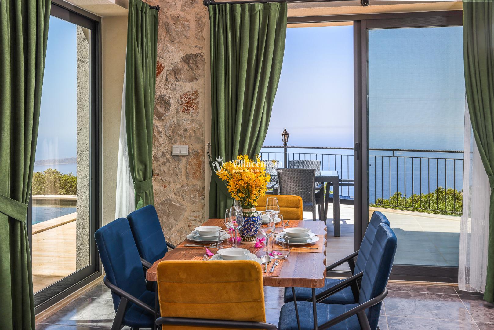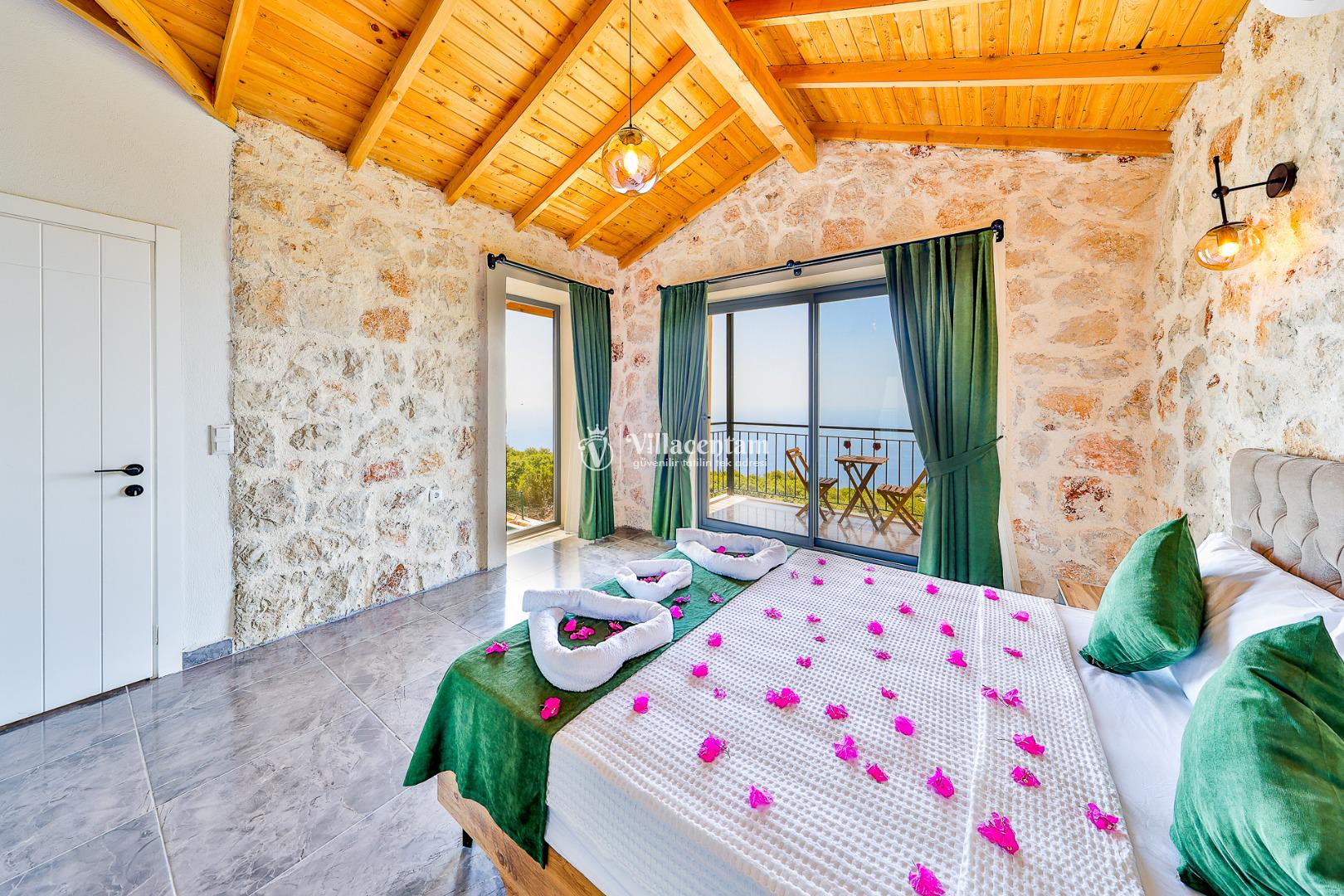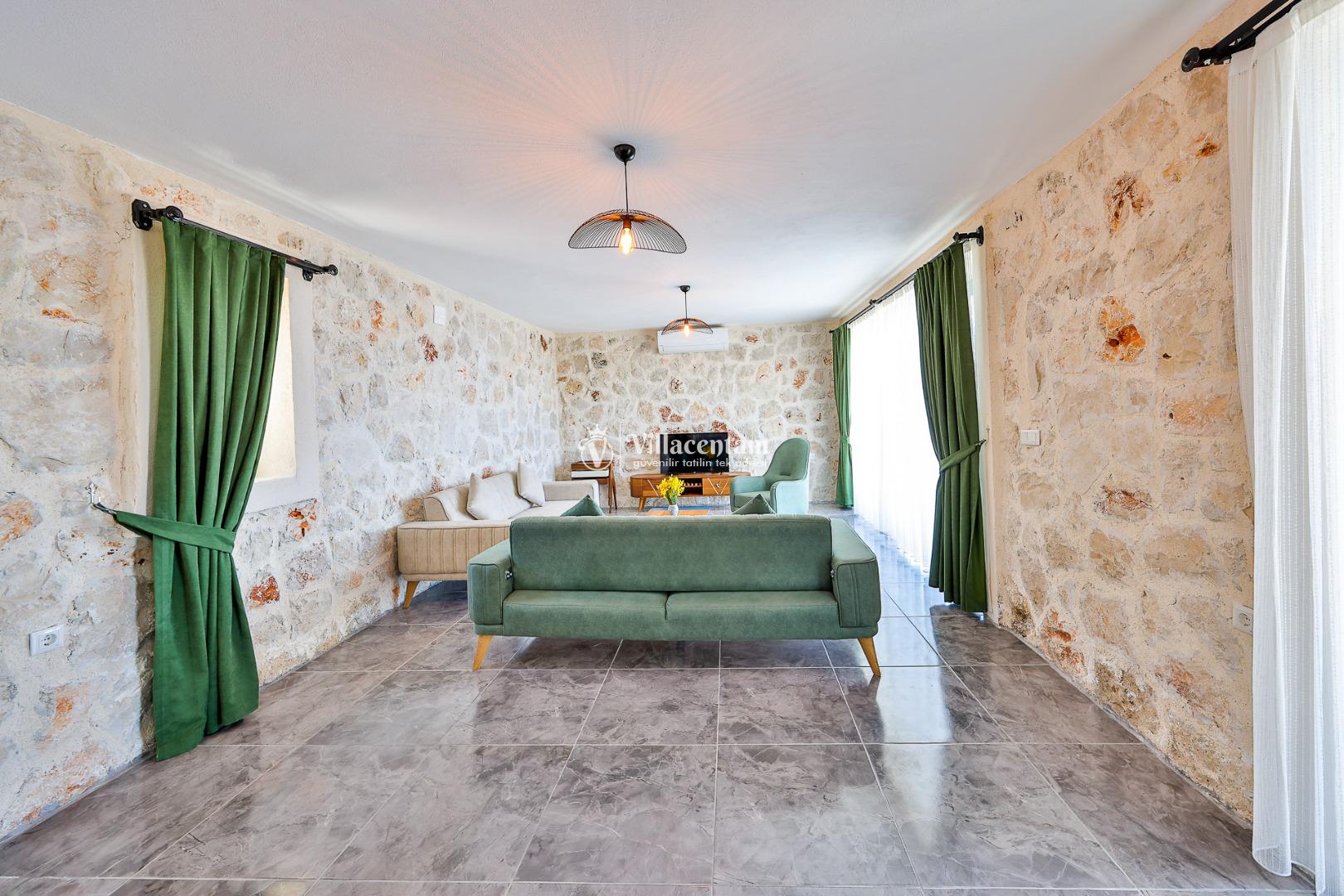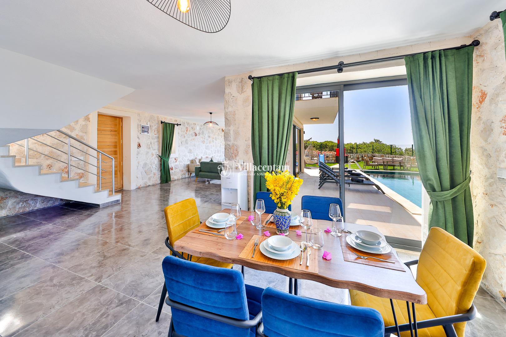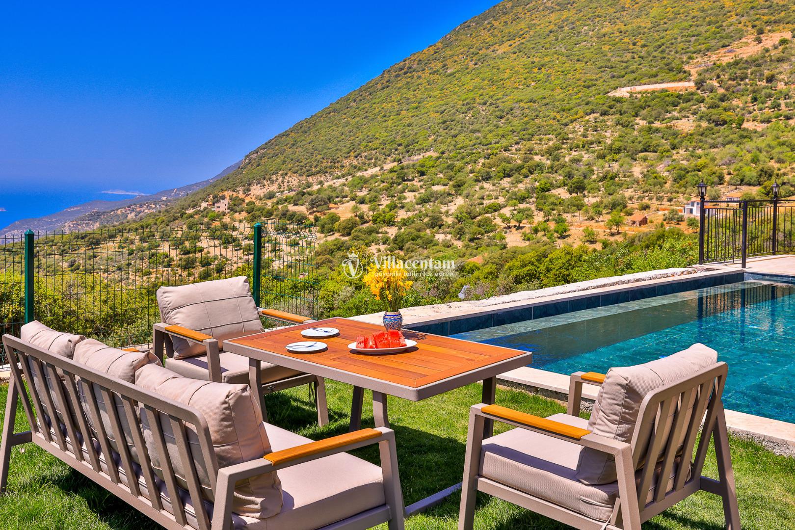 Villa Badem Çiçeği, Kaş Mumuda mevkiinde konumlanan muhteşem deniz manzarasıyla misafirlerini karşılayan bu özel villa, huzur, konfor ve ayrıcalığı bir arada sunarak unutulmaz bir tatil deneyimi vadediyor. Doğanın tüm renklerini ve denizin sonsuz maviliğini ayaklarınızın altına seren villa, özellikle sakinlik ve mahremiyet arayan misafirler için ideal bir konaklama seçeneğidir. Toplam 4 kişilik konaklama kapasitesine sahip olan villada, modern ve şık bir anlayışla tasarlanmış 2 adet yatak odası bulunmaktadır. Odalar ferah yapıları, konforlu yatakları ve özenle seçilmiş mobilyalarıyla misafirlerin rahatlığı düşünülerek hazırlanmıştır. Yatak odalarından deniz manzarasını izleyerek güne başlamak, tatilinize ayrı bir keyif katacaktır. Villa içerisinde tam donanımlı bir açık plan mutfak yer almakta olup; buzdolabı, fırın, ocak, bulaşık makinesi, su ısıtıcısı ve gerekli tüm mutfak gereçleri mevcuttur. Şık ve konforlu salon bölümü, deniz manzarasına açılan geniş pencereleriyle gün boyu aydınlık bir atmosfer sunar. Salonda rahat oturma grubu, televizyon ve klima bulunmaktadır. Villanın en dikkat çekici özelliklerinden biri ise geniş terası ve balkonudur. Burada gün batımını izleyebilir, deniz manzarası eşliğinde kahvenizi yudumlayabilir ya da sevdiklerinizle keyifli akşam yemekleri yiyebilirsiniz. Dış alan, tatilinizi açık havada doyasıya yaşamanız için özenle düzenlenmiştir.