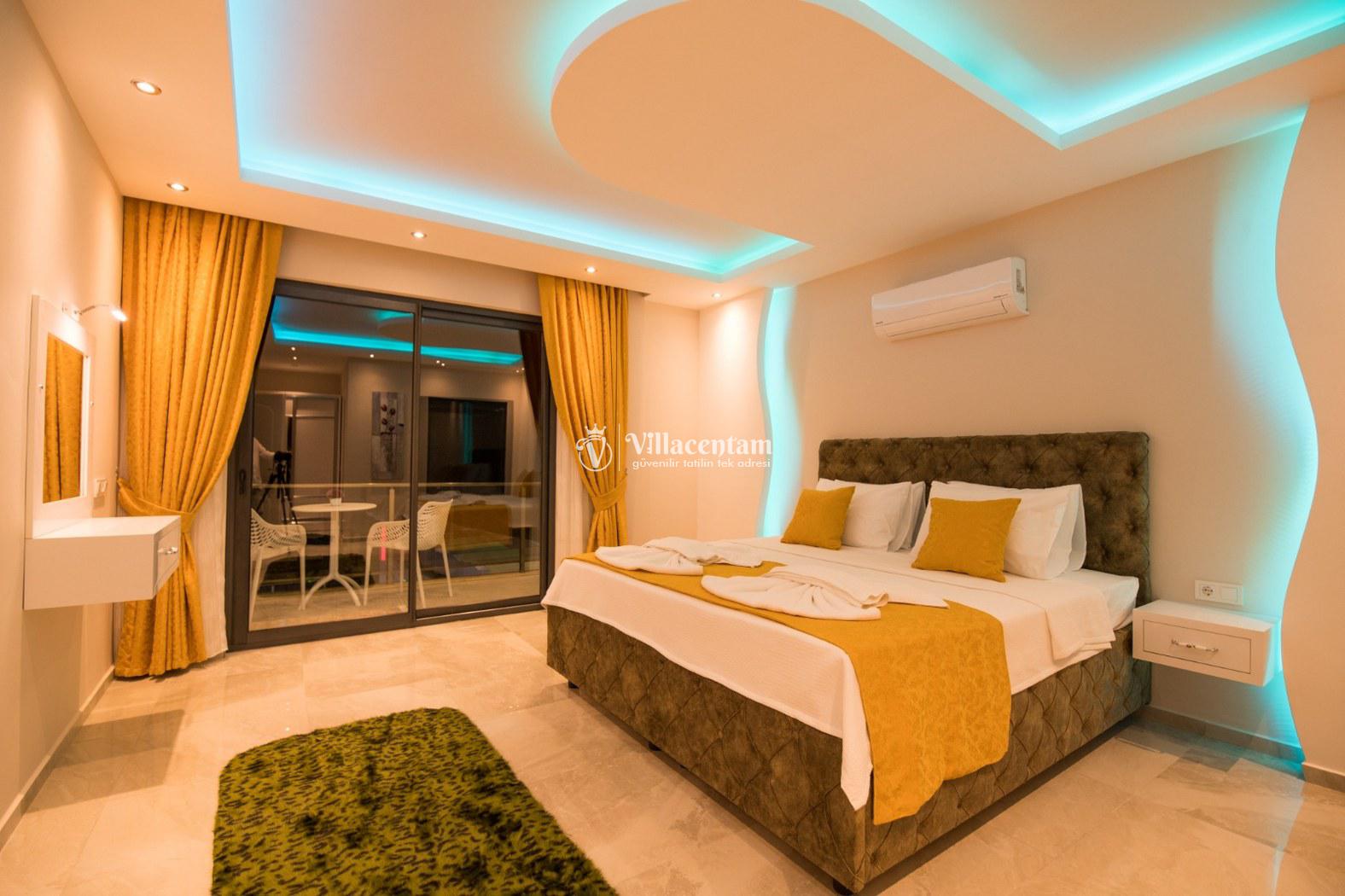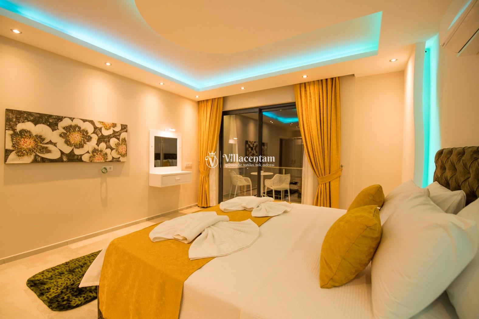 Muhafazakar aileler için uygun şekilde tasarlanmış bu villa, sakin ve huzurlu bir tatil isteyenler için mükemmel bir seçimdir. Kalkan merkezine ve plajlara araçla kısa mesafede konumlanan Villa Bedir, maviyle yeşilin buluştuğu eşsiz manzarasıyla unutulmaz bir tatil deneyimi sunar.