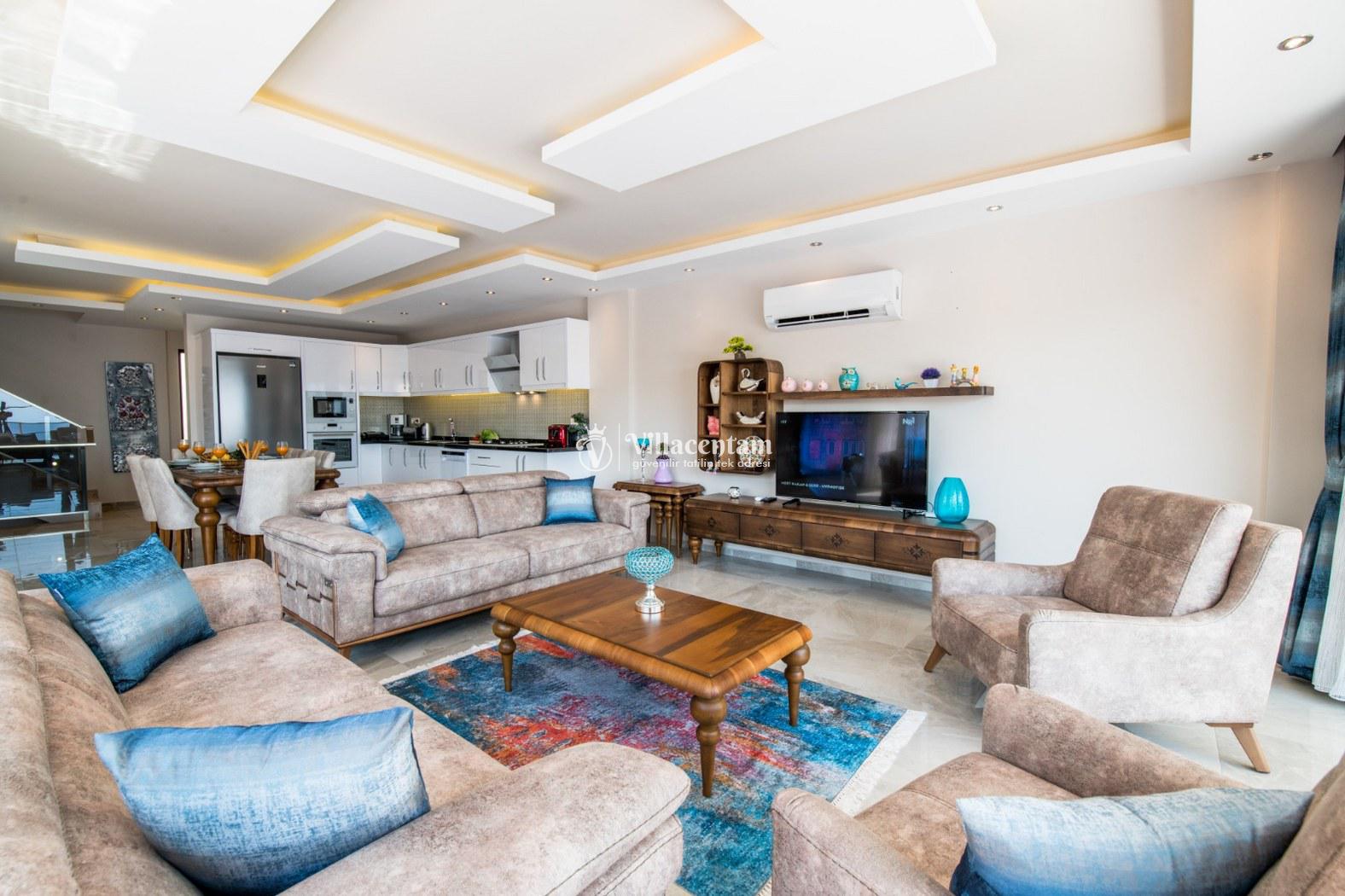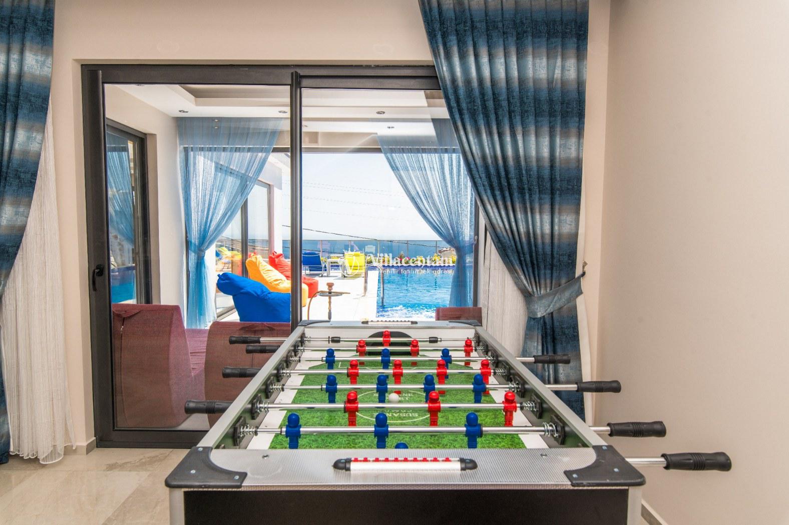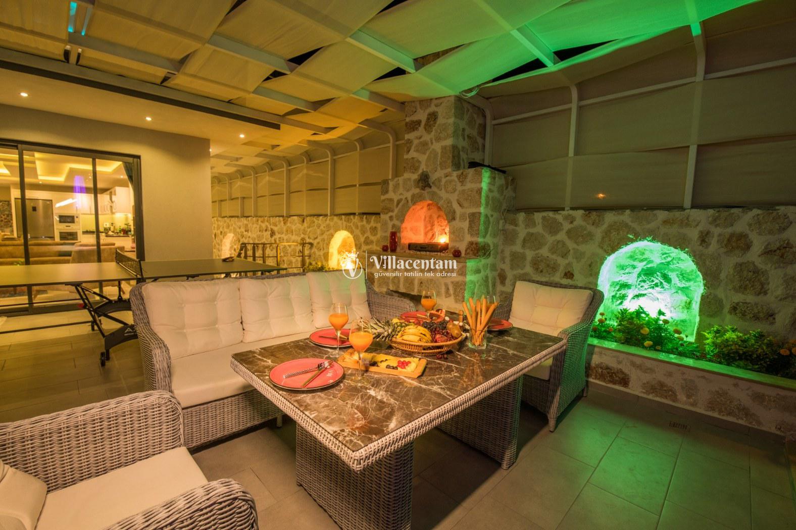 Villada modern ve ferah yaşam alanları; konforlu salon, tam donanımlı mutfak ve özgün dekorasyon detaylarıyla tasarlanmıştır. İç mekânda sauna, jakuzi, sinema odası, langırt ve masa tenisi gibi eğlence özellikleri tatilinizi daha da keyifli hale getirir.