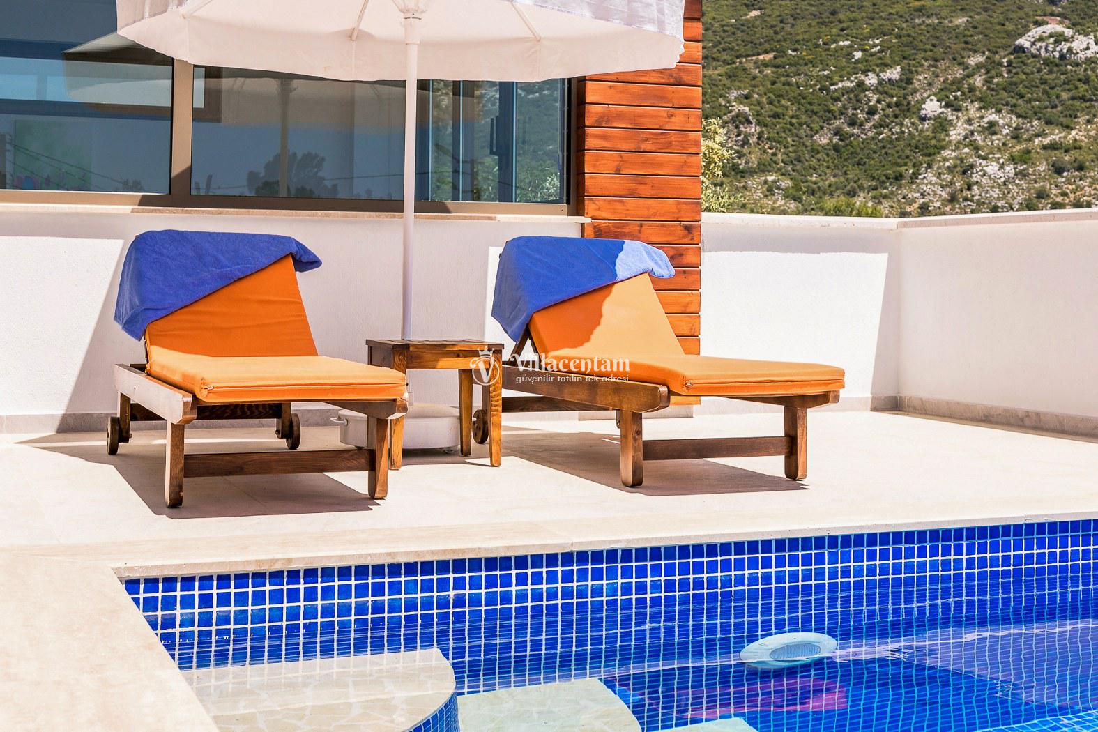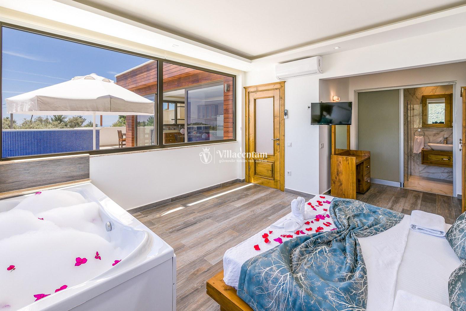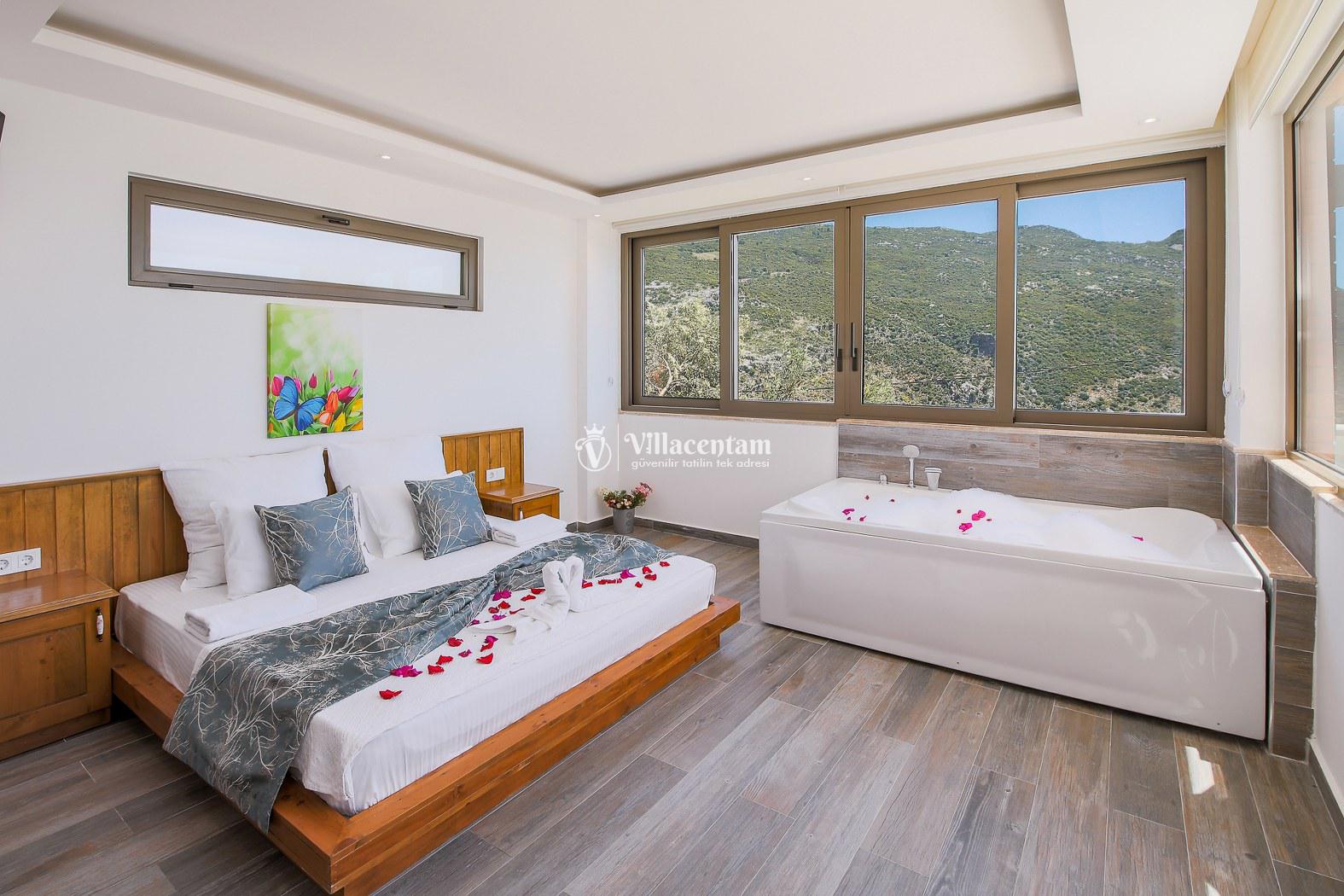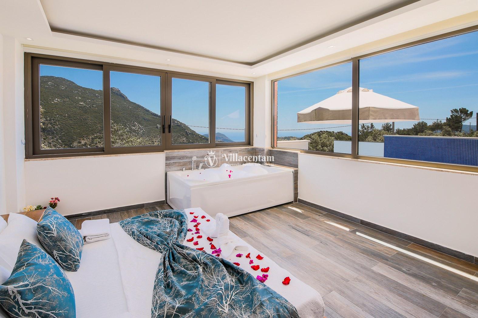 Kalkan İslamlar köyünde konumlanmakta olan Villa Bella 1, doğa ile iç içe panoramik açıdan deniz manzarasına sahip kiralık villalarımız arasında yer almaktadır. Şık ve konforlu bir şekilde dekore edilen yazlık villamızda 1 adet yatak odası bulunmakta olup, 2 kişiye konaklama imkanı sağlamaktadır. Özellikle balayı çiftlerimiz için hazırlanmış olan modern villamızın yatak odasında tüm yorgunluğunuz atabileceğiniz jakuzi yer almaktadır. Havuz ve havuz terası korunaklı hale getirilen yazlık villamızı muhafazakar çiftlerimiz gönül rahatlığıyla tercih edebilirler. Hayallerinizin de ötesinde muhteşem bir yazlık villada balayı tatili siz değerli misafirlerimizi bekliyor.
