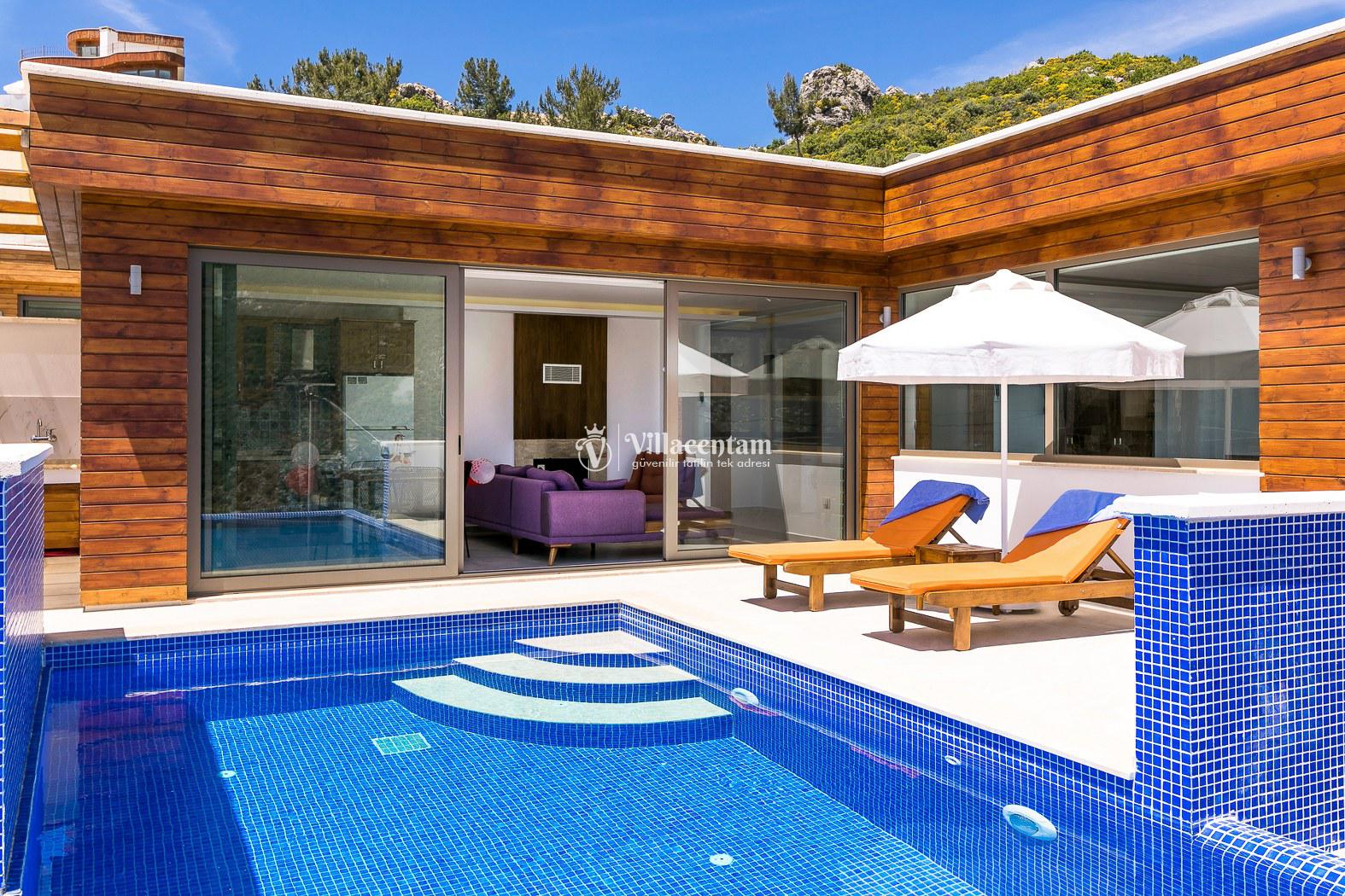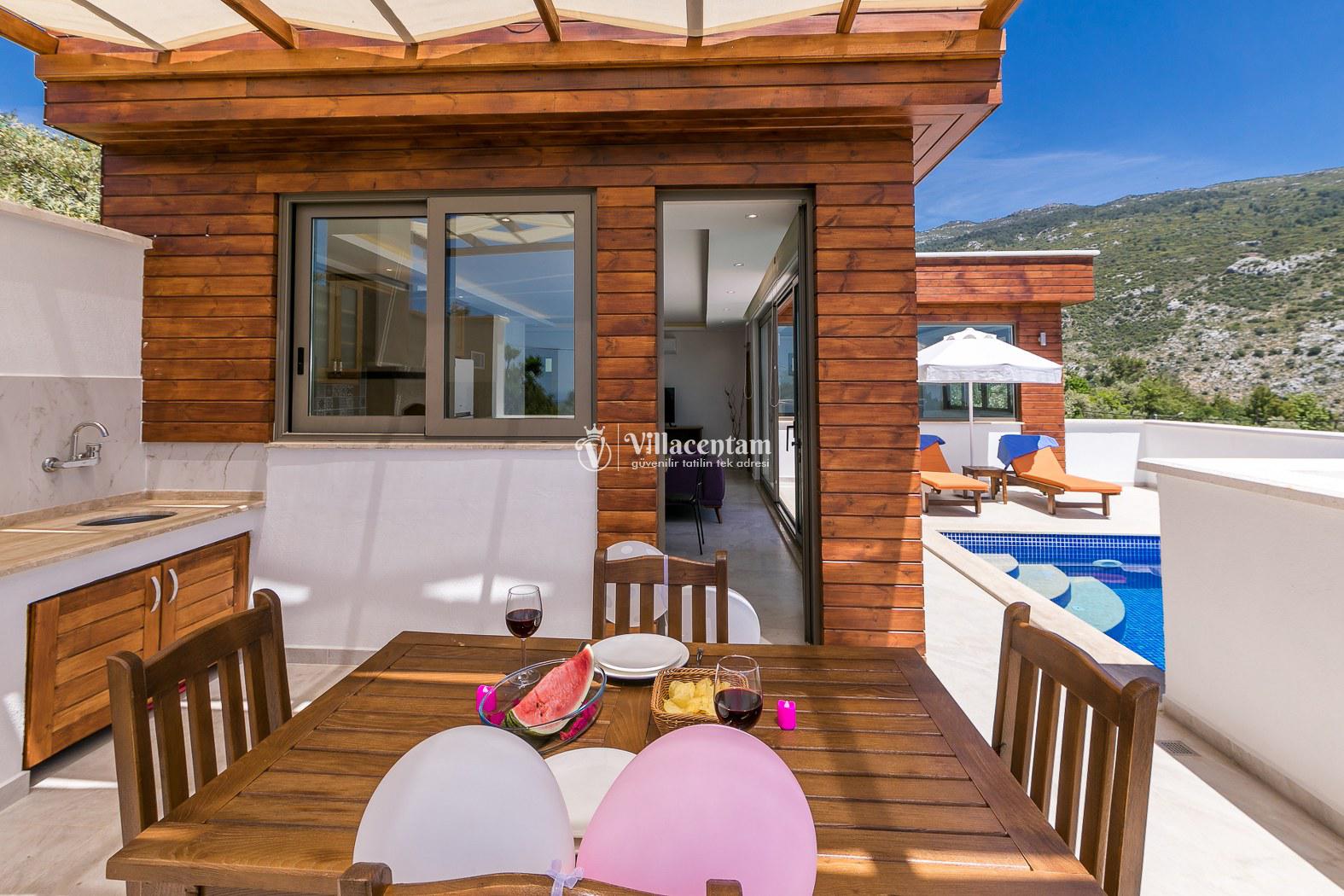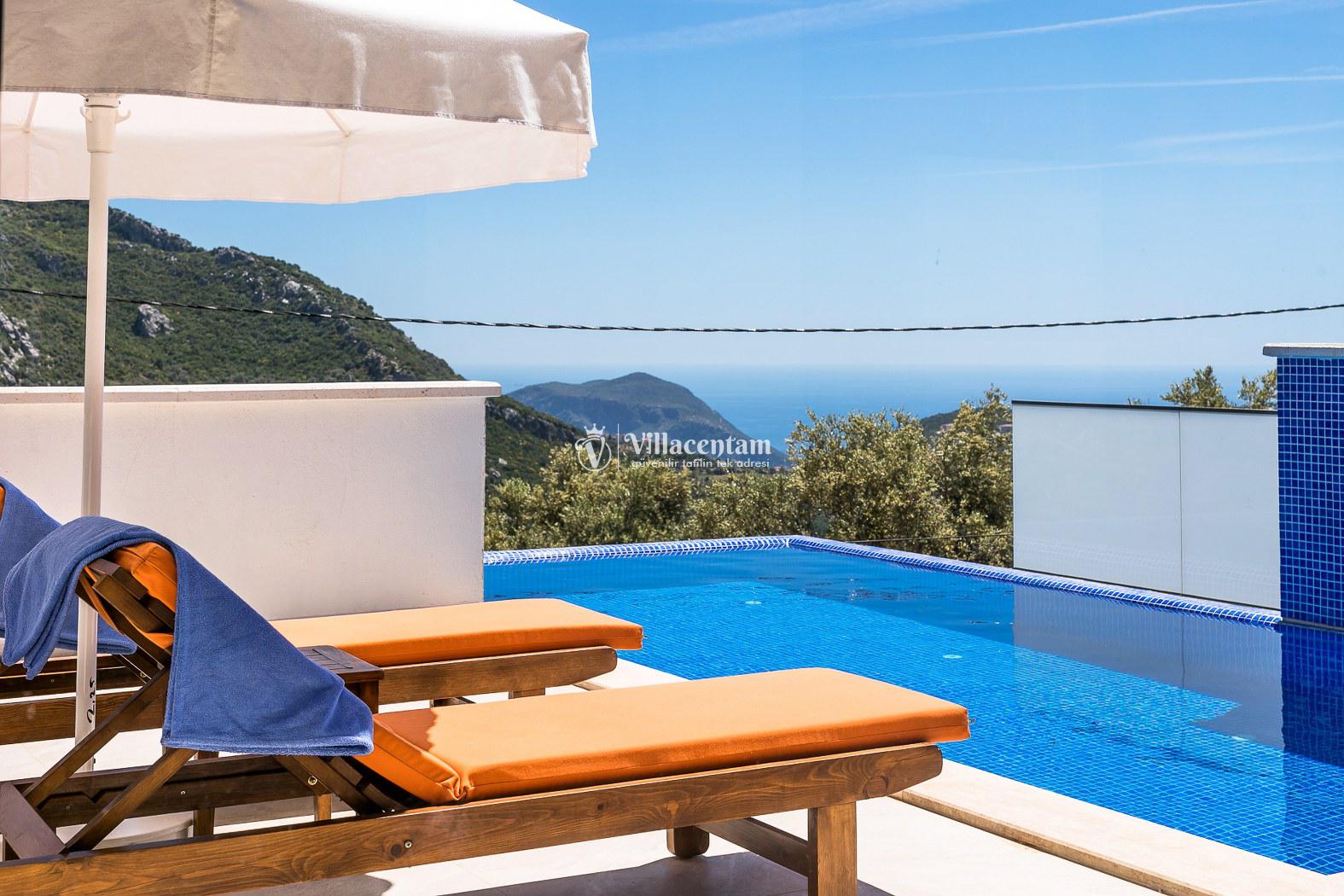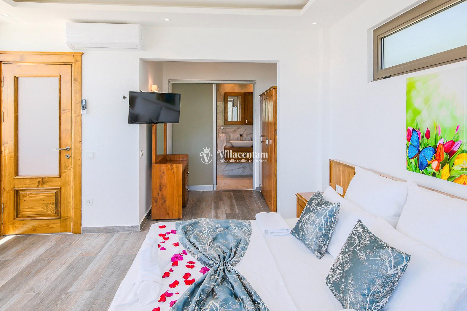Kalkan İslamlar köyünde konumlanmakta olan Villa Bella 1, doğa ile iç içe panoramik açıdan deniz manzarasına sahip kiralık villalarımız arasında yer almaktadır. Şık ve konforlu bir şekilde dekore edilen yazlık villamızda 1 adet yatak odası bulunmakta olup, 2 kişiye konaklama imkanı sağlamaktadır. Özellikle balayı çiftlerimiz için hazırlanmış olan modern villamızın yatak odasında tüm yorgunluğunuz atabileceğiniz jakuzi yer almaktadır. Havuz ve havuz terası korunaklı hale getirilen yazlık villamızı muhafazakar çiftlerimiz gönül rahatlığıyla tercih edebilirler. Hayallerinizin de ötesinde muhteşem bir yazlık villada balayı tatili siz değerli misafirlerimizi bekliyor.