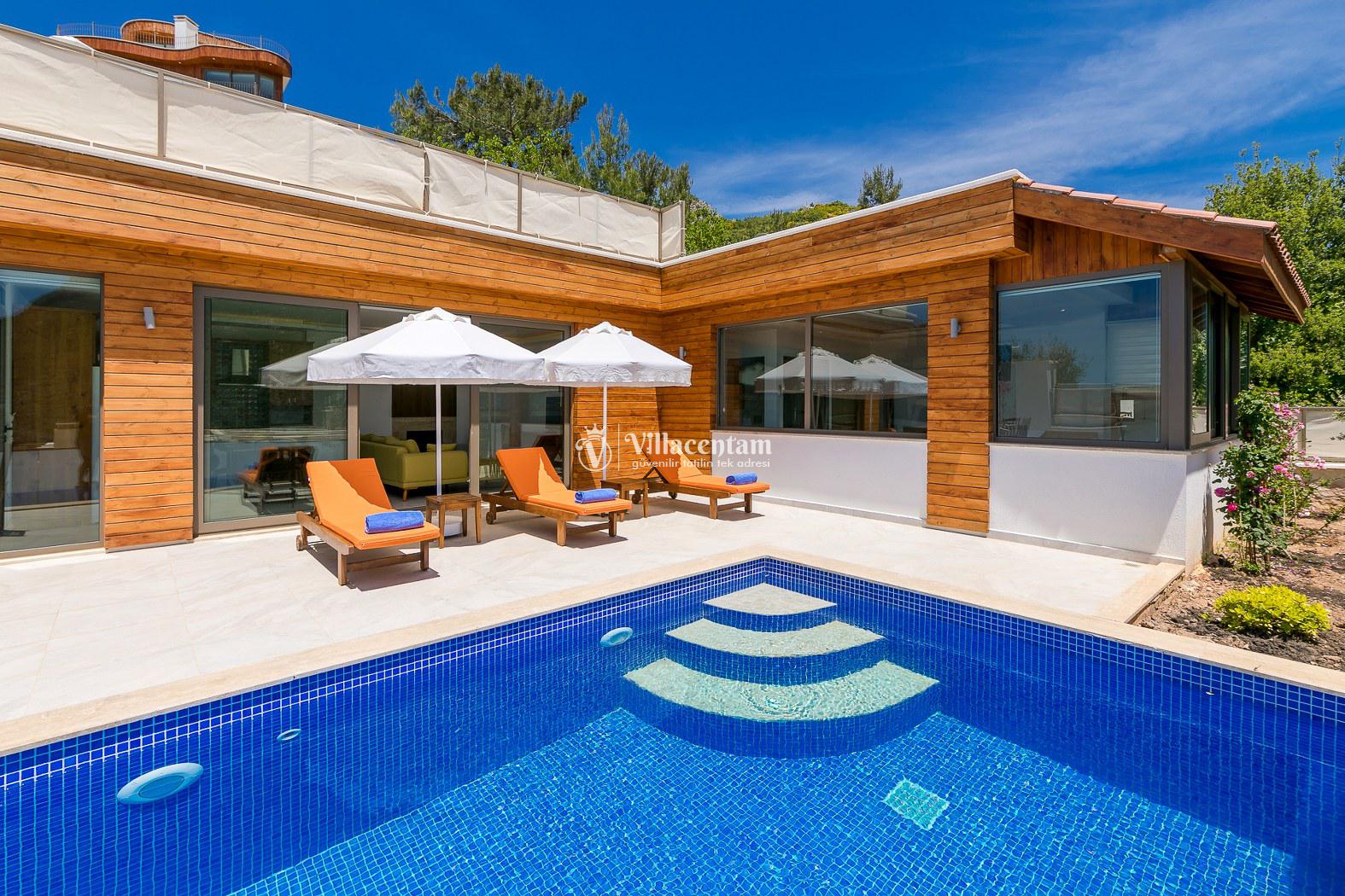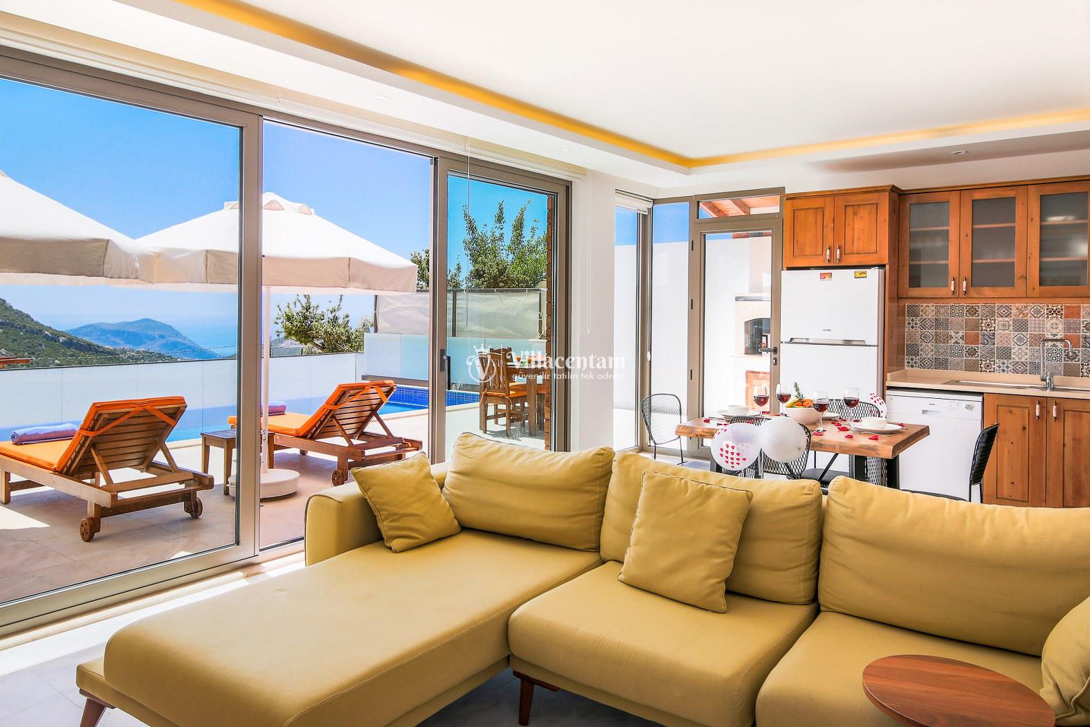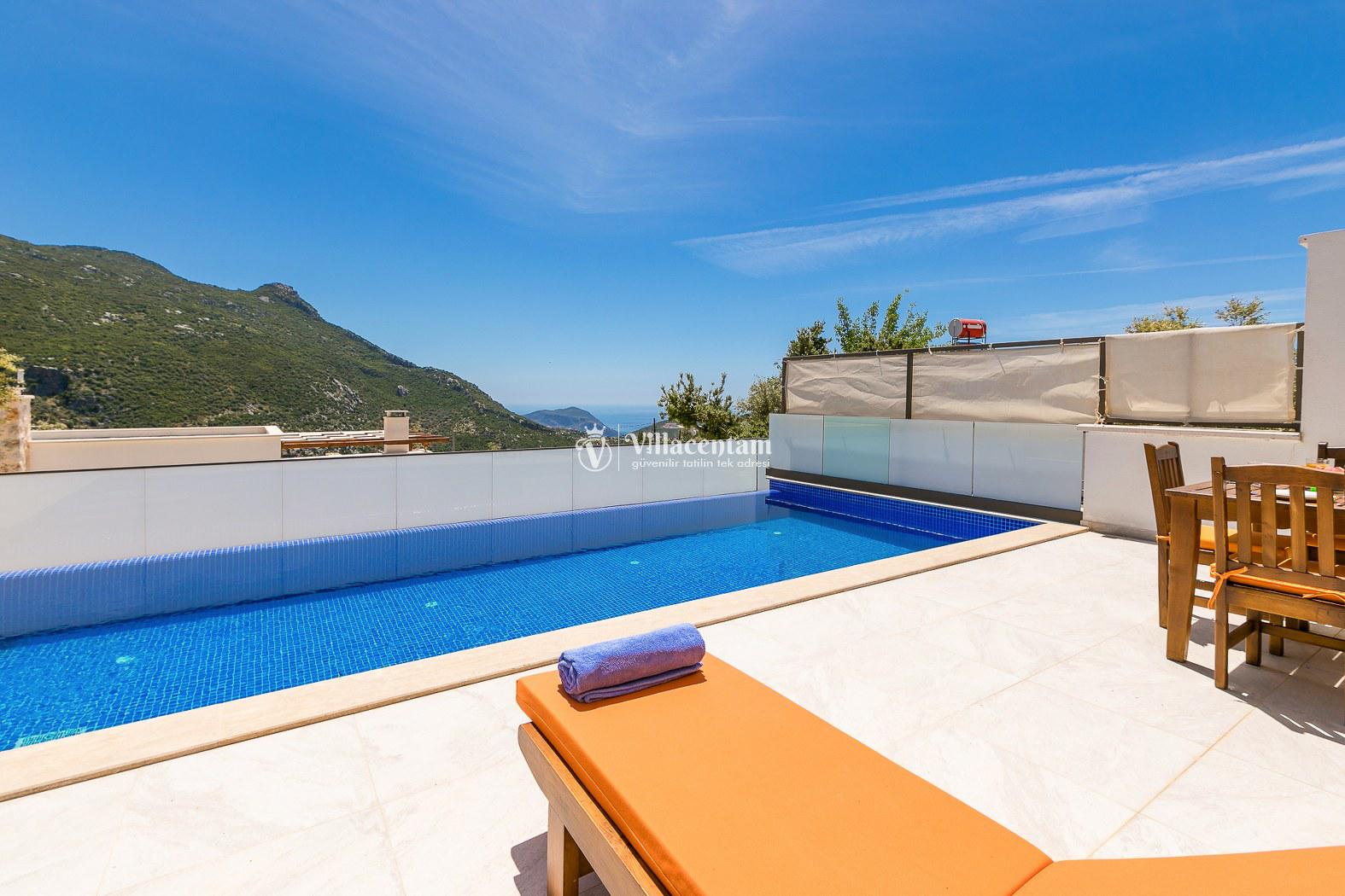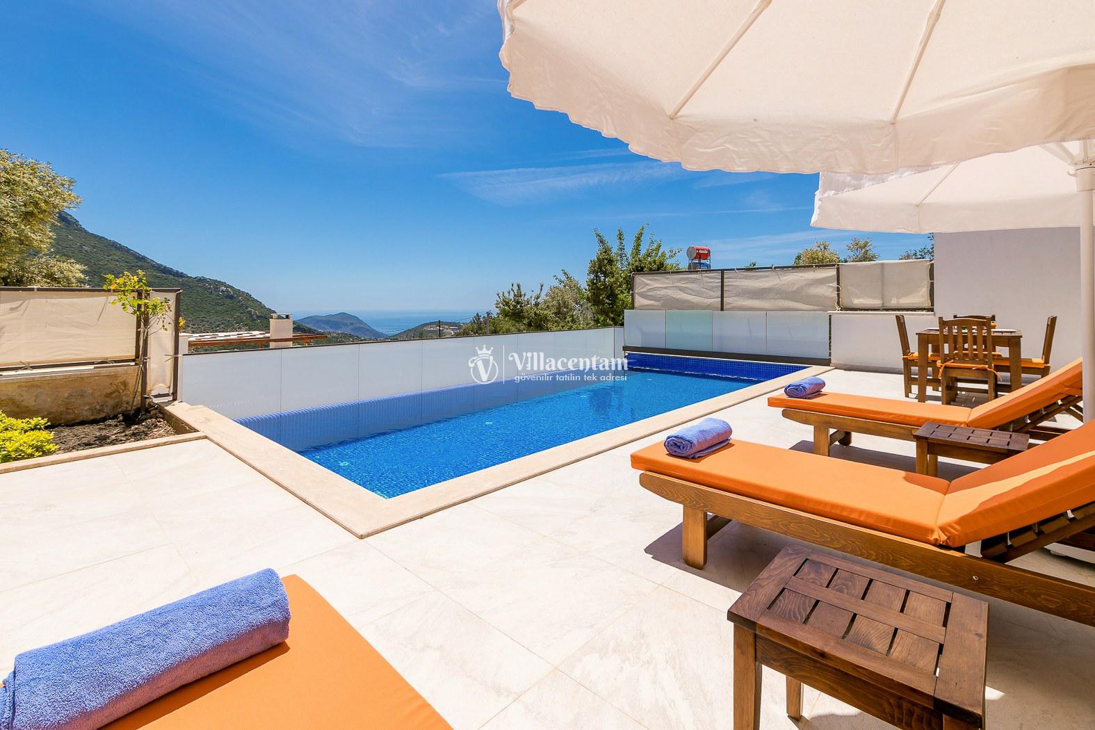 Kalkan İslamlar köyünde konumlanmakta olan bol oksijenli doğaya ve panoramik deniz manzarasına sahip kiralık villalarımız arasında yer almaktadır. Konforu sağlanarak hizmetinize sunulan modern yazlık villamızda 2 adet yatak odası bulunmakta olup, 4 kişiye konaklama imkanı sağlamaktadır. Çift kişilik yatak odasının içerisinde tüm yılın vermiş olduğu yorgunluğu atabileceğiniz jakuzi yer almaktadır. Havuz ve havuz terası korunaklı hale getirilen yazlık villamız dışarıdan gözükmemektedir. Balayı çiftlerimiz, muhafazakar ailelerimiz gönül rahatlığı ile tercih edebilirler. Uzun uzun kahvaltı ve barbekü keyifleri yapabileceğiniz sevdiklerinizle birlikte dilediğinizce eğlenebileceğiniz muhteşem bir yazlık villada tatil için Villa Bella 3’ü tercih edebilirsiniz.