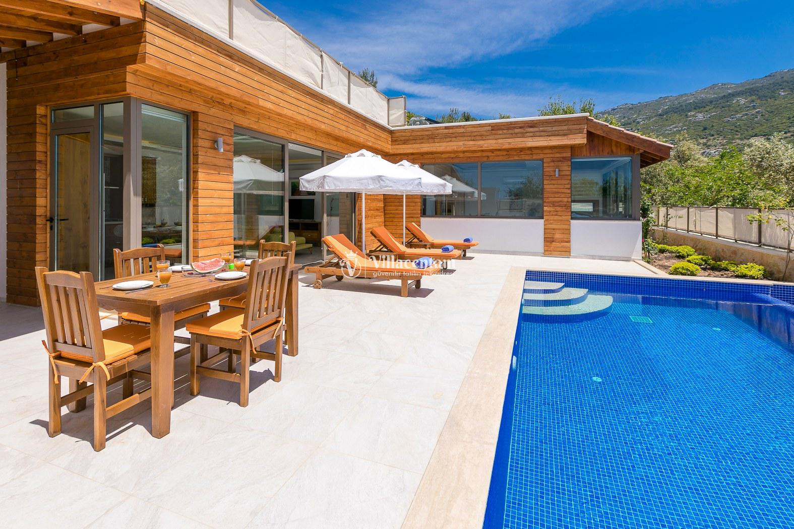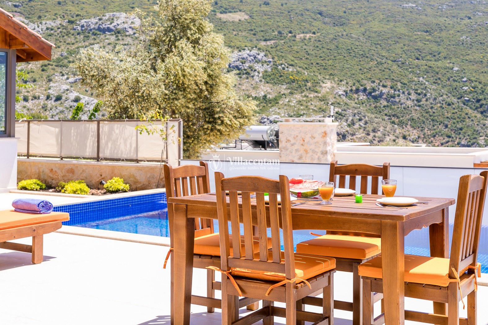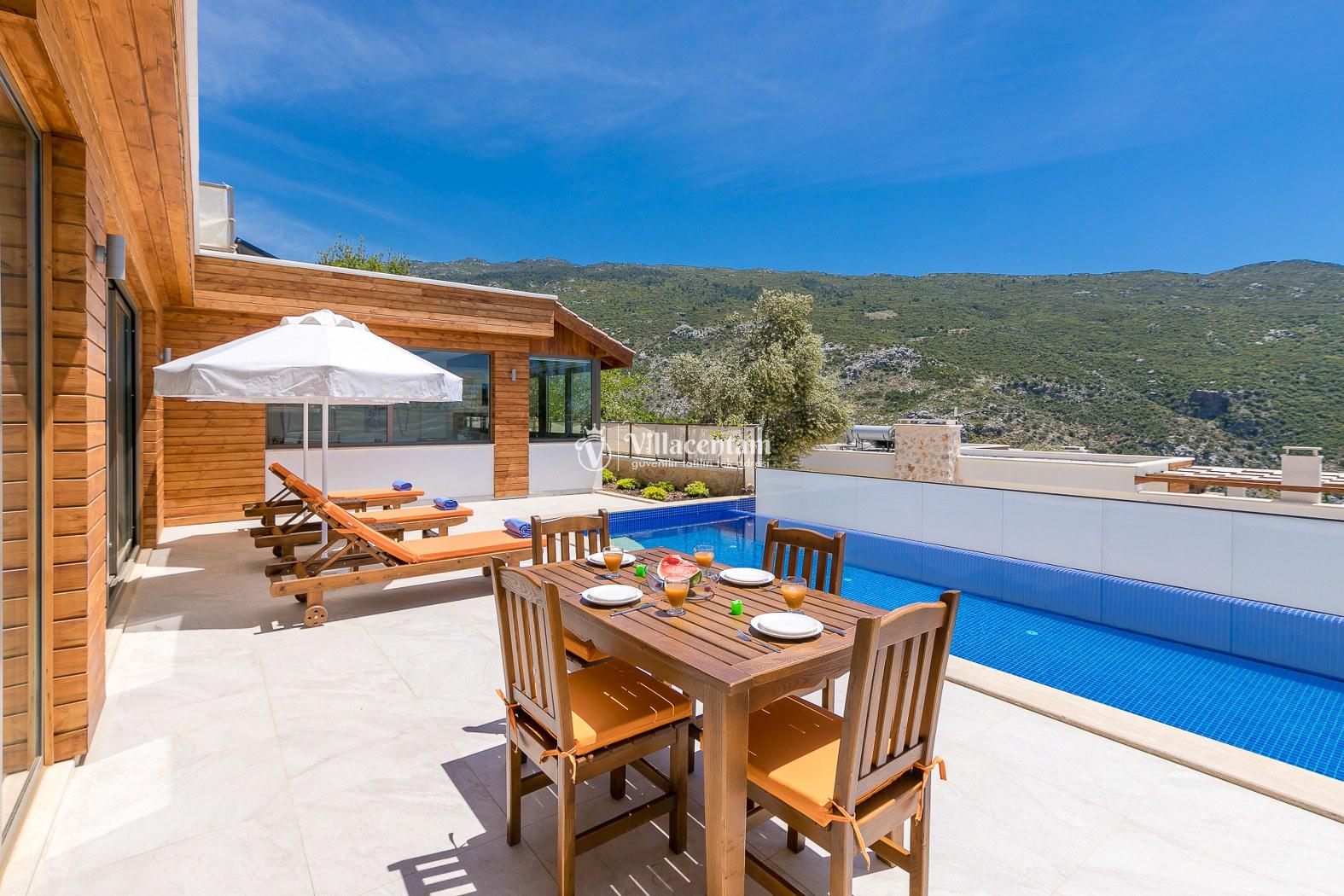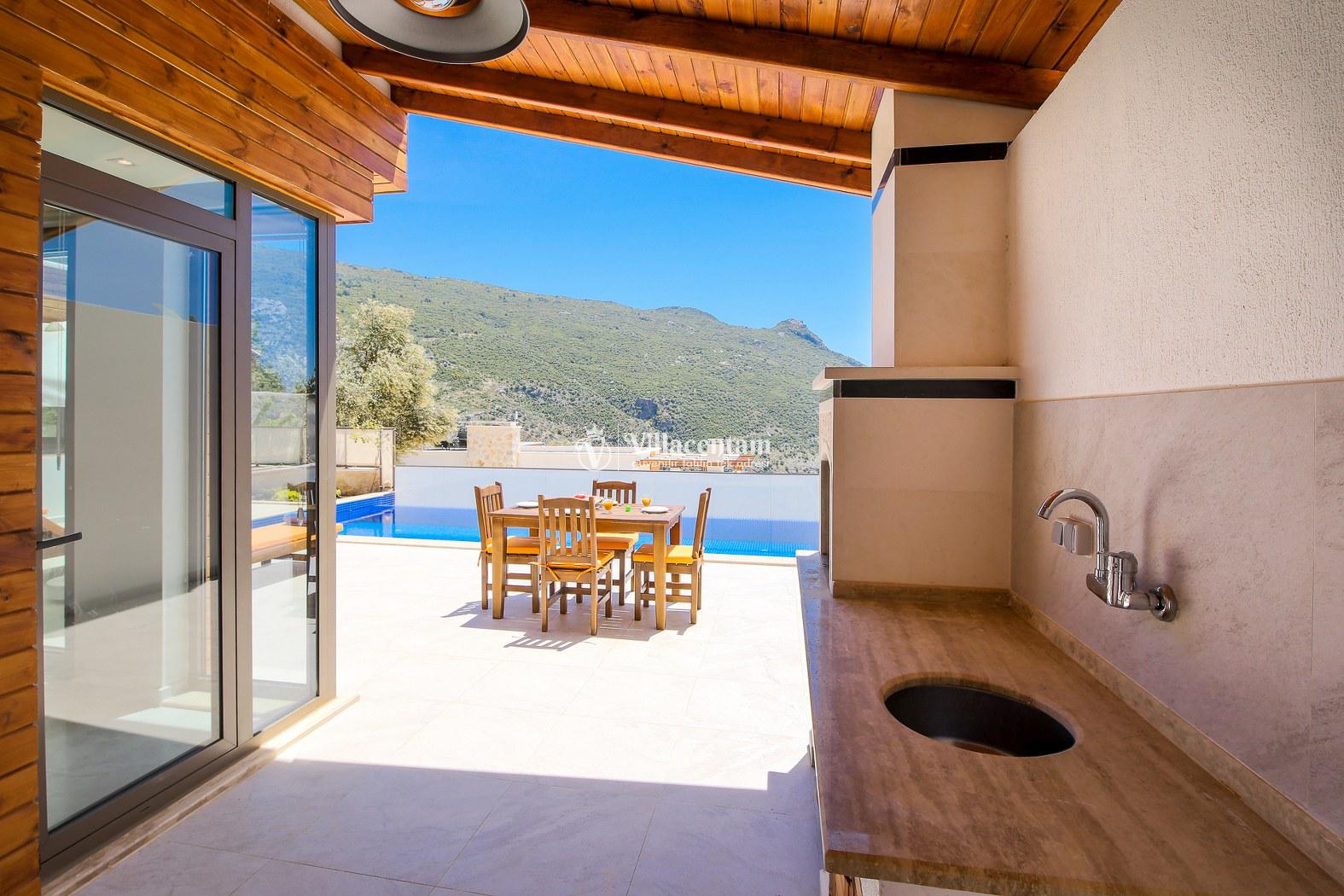 Kalkan İslamlar köyünde konumlanmakta olan bol oksijenli doğaya ve panoramik deniz manzarasına sahip kiralık villalarımız arasında yer almaktadır. Konforu sağlanarak hizmetinize sunulan modern yazlık villamızda 2 adet yatak odası bulunmakta olup, 4 kişiye konaklama imkanı sağlamaktadır. Çift kişilik yatak odasının içerisinde tüm yılın vermiş olduğu yorgunluğu atabileceğiniz jakuzi yer almaktadır. Havuz ve havuz terası korunaklı hale getirilen yazlık villamız dışarıdan gözükmemektedir. Balayı çiftlerimiz, muhafazakar ailelerimiz gönül rahatlığı ile tercih edebilirler. Uzun uzun kahvaltı ve barbekü keyifleri yapabileceğiniz sevdiklerinizle birlikte dilediğinizce eğlenebileceğiniz muhteşem bir yazlık villada tatil için Villa Bella 3’ü tercih edebilirsiniz.