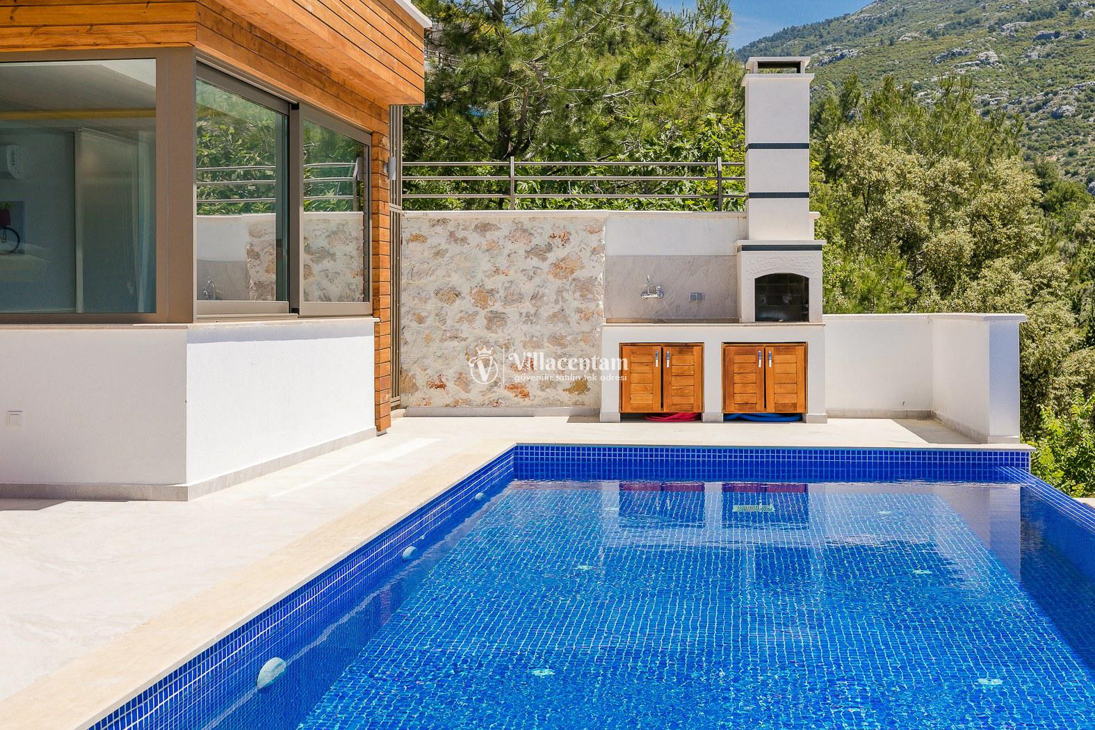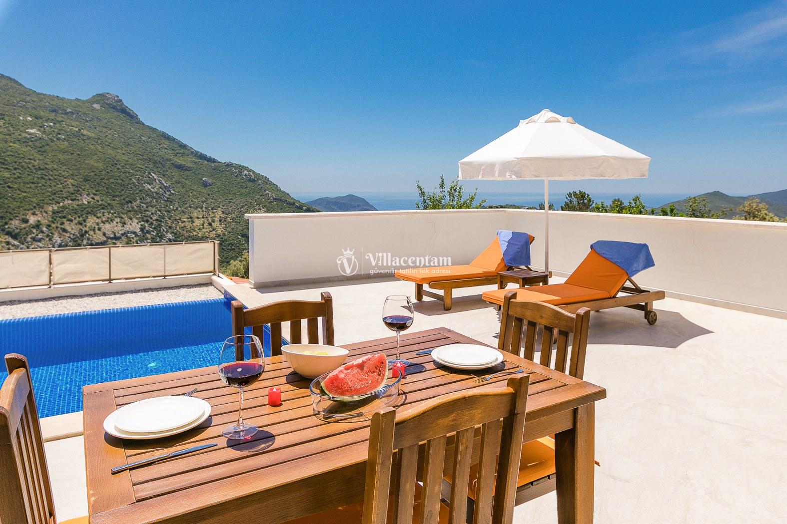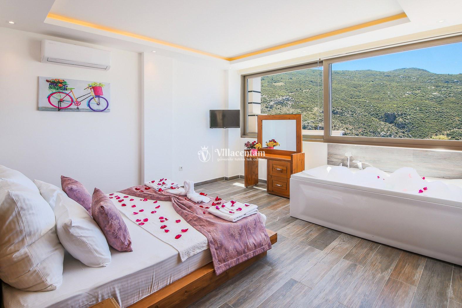 Kalkan İslamlar köyünde konumlanmakta olan yeşilliklerle kaplı doğa ve panoramik deniz manzarasına sahip kiralık villalarımız arasında yer almaktadır. Şık ve konforlu bir şekilde dizayn edilen yazlık villamızda 1 adet yatak odası bulunmakta olup, 2 kişiye konaklama imkanı sağlamaktadır. Yatak odasının içerisinde tüm yılın vermiş olduğu yorgunluğu atabileceğiniz jakuzi yer almaktadır. Özellikle balayı çiftlerimize hitap eden villamızın havuz ve havuz terası korunaklı hale getirilmiştir. Muhafazakar çiftlerimiz ve dışarıdan gözükmek istemeyen balayı çiftlerimiz gönül rahatlığı ile tercih edebilirler. Sessizlik ve sakinlik içerisinde huzur dolu bir balayı tatili içi Villa Bella 4’ü tercih edebilirsiniz.