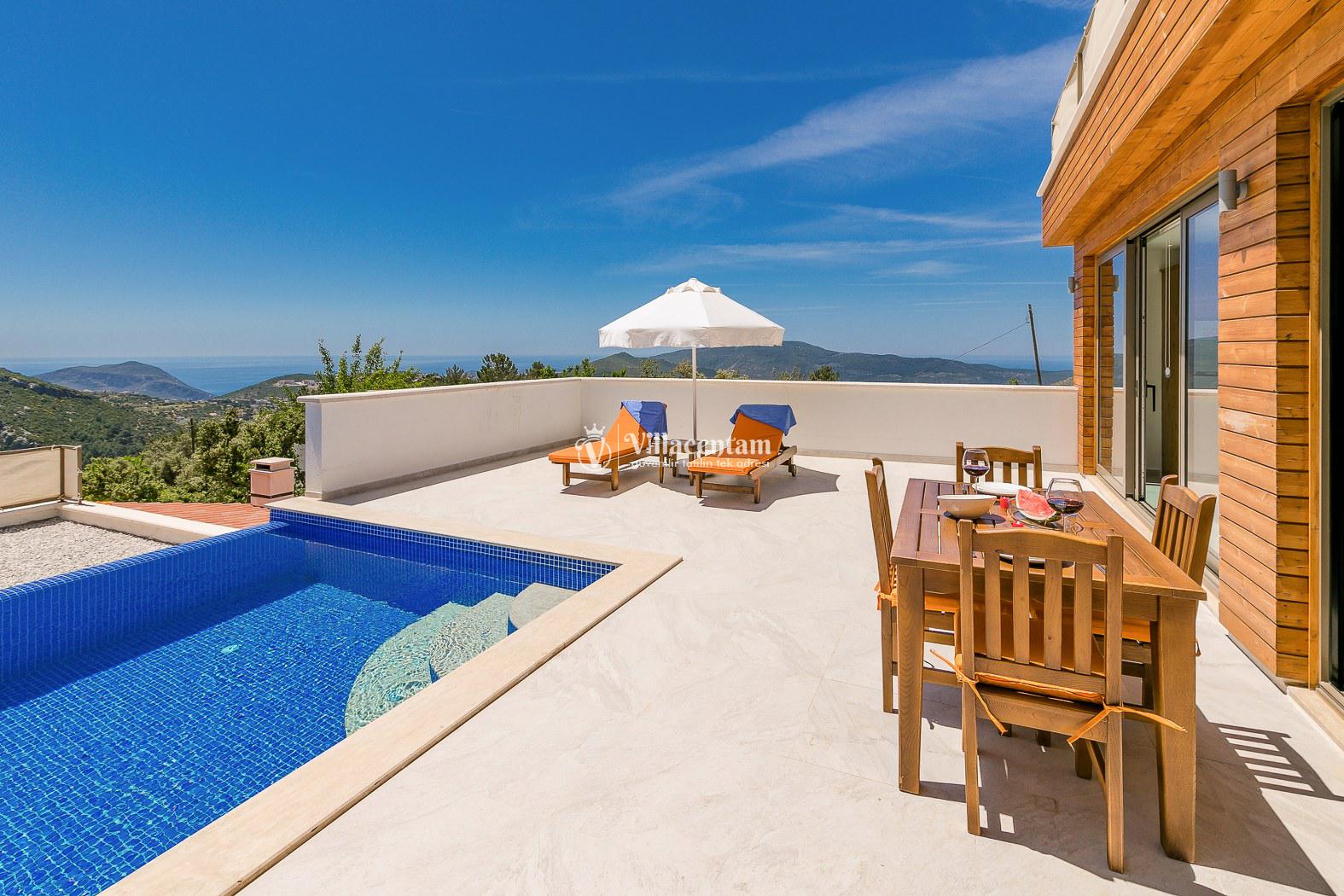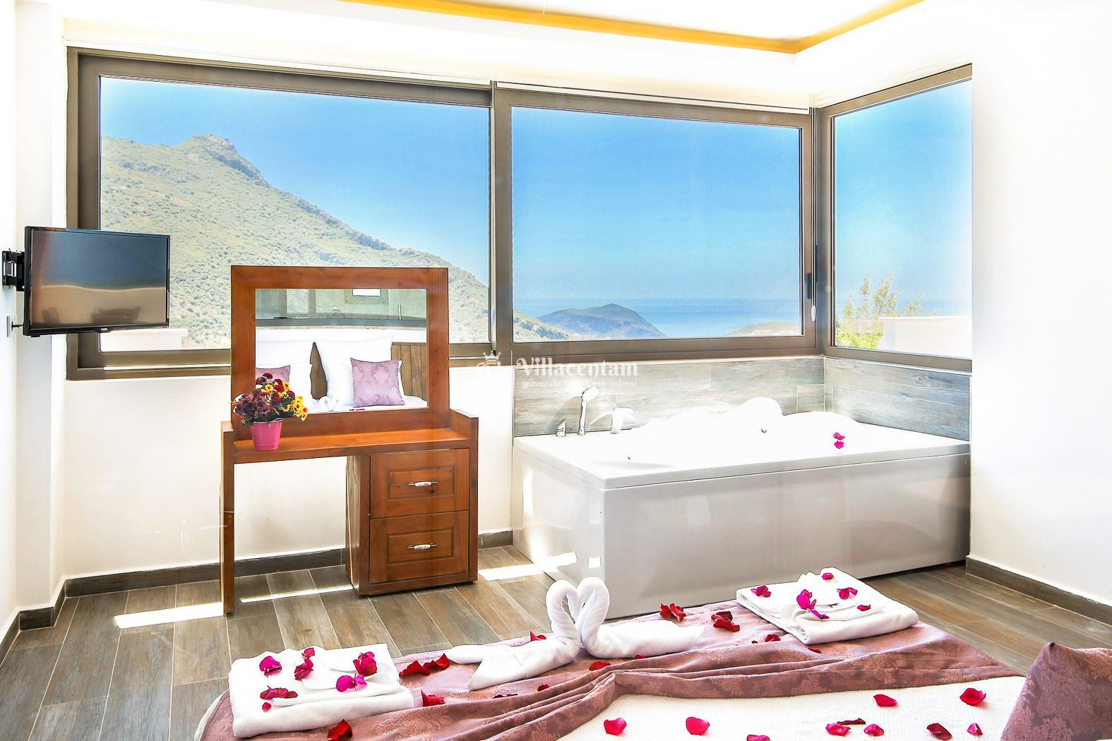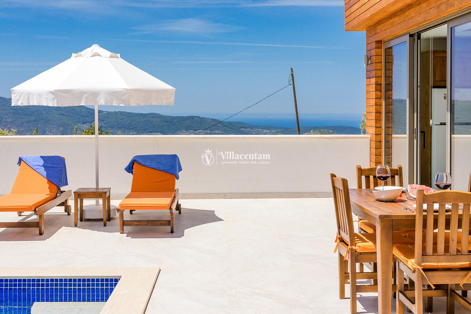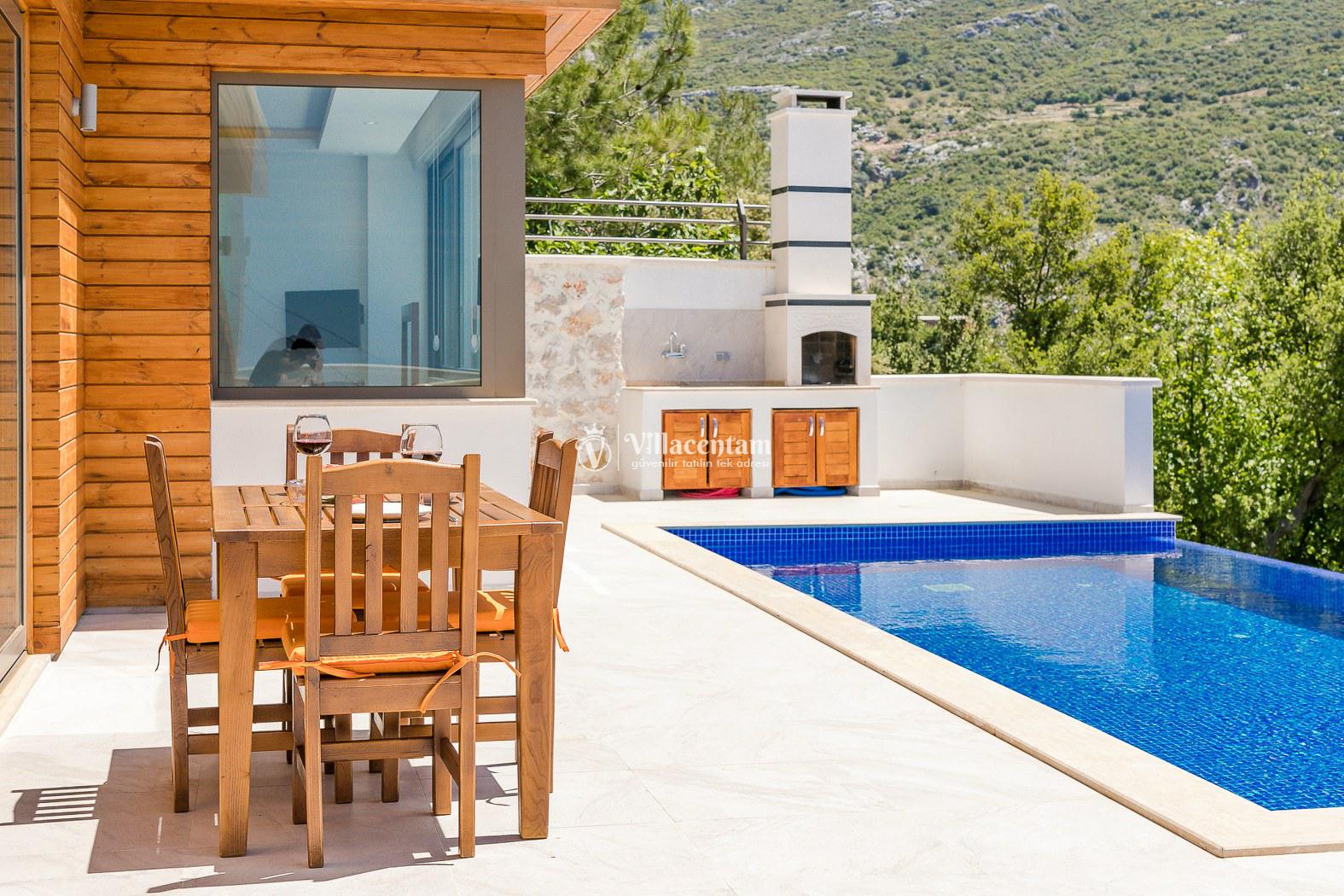Kalkan İslamlar köyünde konumlanmakta olan yeşilliklerle kaplı doğa ve panoramik deniz manzarasına sahip kiralık villalarımız arasında yer almaktadır. Şık ve konforlu bir şekilde dizayn edilen yazlık villamızda 1 adet yatak odası bulunmakta olup, 2 kişiye konaklama imkanı sağlamaktadır. Yatak odasının içerisinde tüm yılın vermiş olduğu yorgunluğu atabileceğiniz jakuzi yer almaktadır. Özellikle balayı çiftlerimize hitap eden villamızın havuz ve havuz terası korunaklı hale getirilmiştir. Muhafazakar çiftlerimiz ve dışarıdan gözükmek istemeyen balayı çiftlerimiz gönül rahatlığı ile tercih edebilirler. Sessizlik ve sakinlik içerisinde huzur dolu bir balayı tatili içi Villa Bella 4’ü tercih edebilirsiniz.