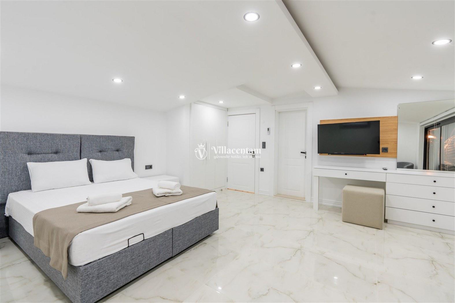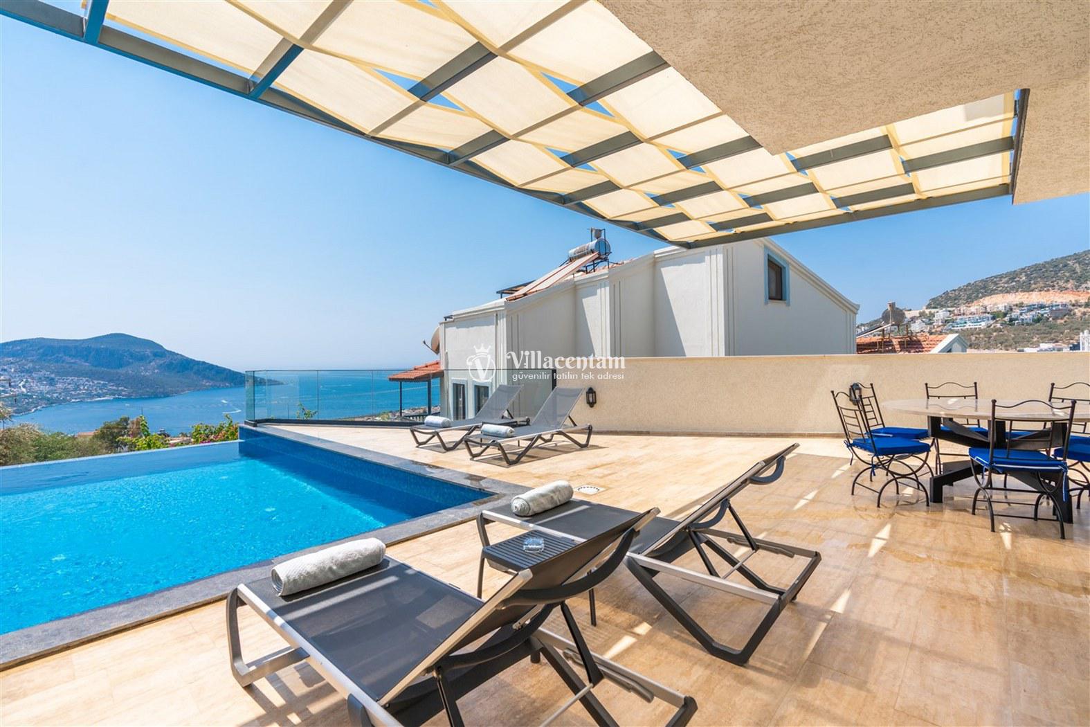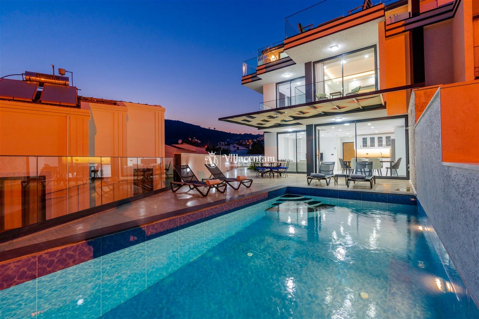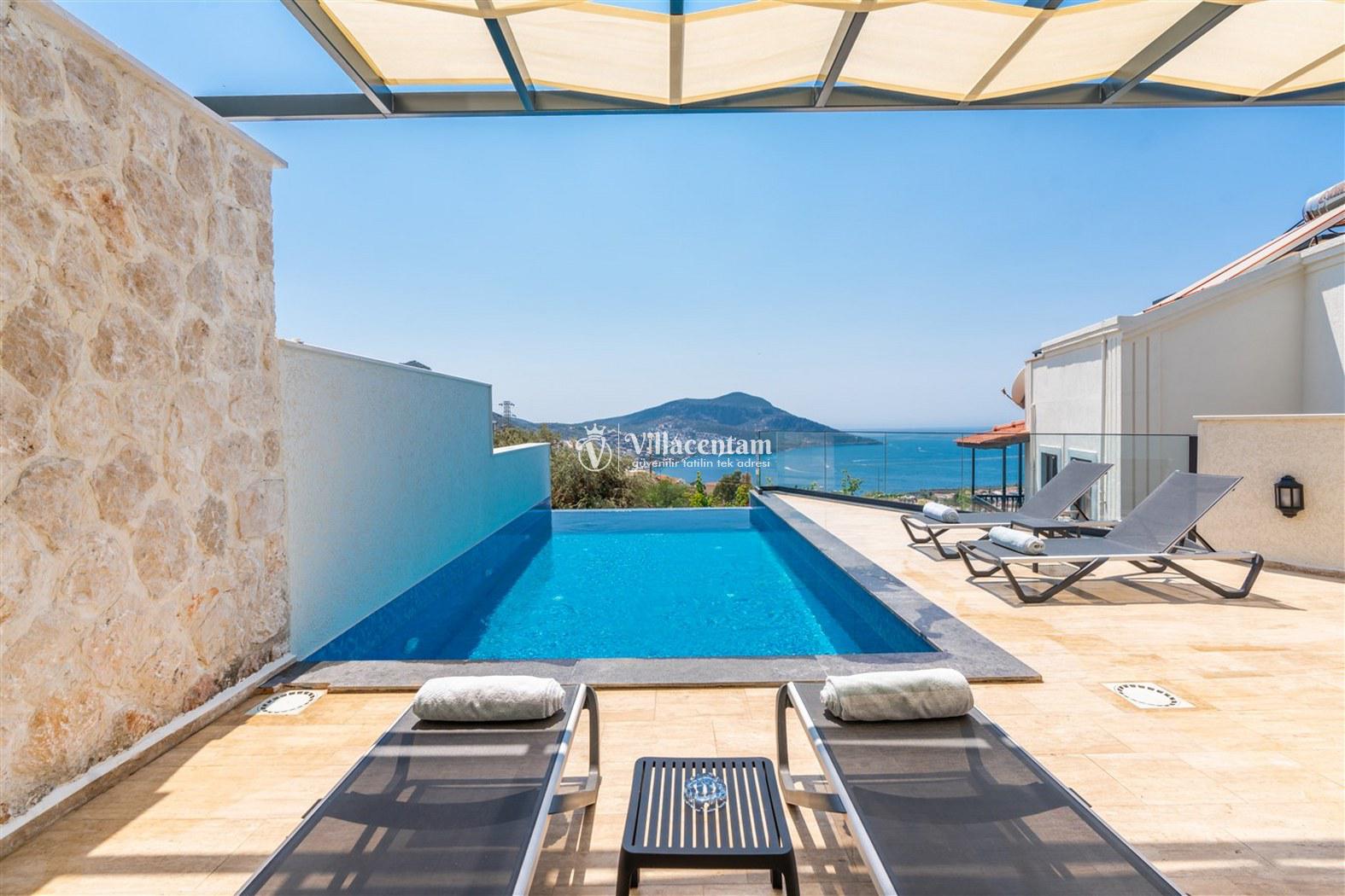 Kalkan Kızıltaş mevkiinde konumlanmakta olan Villa Beyaz Ev 1, muhteşem deniz ve doğa manzarasına sahip kiralık villalarımız arasında yer almaktadır. Modern ve konforlu bir şekilde dekore edilen yazlık villamızda 3 adet yatak odası bulunmakta olup, 6 kişiye konaklama imkanı sağlamaktadır. Villamızın teras katında tüm yılın vermiş olduğu yorgunluğu atabileceğiniz jakuzi yer almaktadır. Ferah ve donanımlı havuz terasınızda güneşlenebilir, havuzunuza girebilir, yeme içme keyfini en güzel hale getirebilirsiniz. Sessizlik ve sakinlik içerisinde huzur dolu bir yazlık villada tatil için Villa Beyaz Ev 1' i tercih edebilirsiniz.