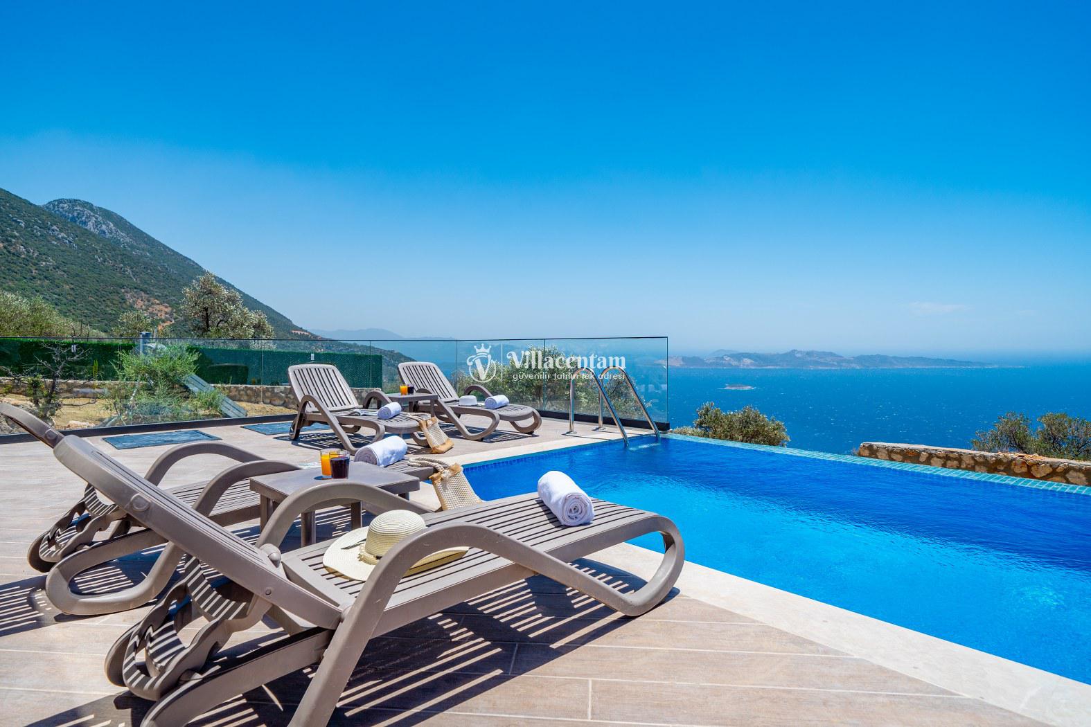 Konumu itibarıyla hem sakin bir atmosfer sunan hem de Kaş merkez ve plajlara araçla ulaşım kolaylığı sağlayan Villa Büyükada, deniz manzaralı, jakuzili ve konforlu bir villa tatili planlayan misafirler için ideal bir tercihtir.
