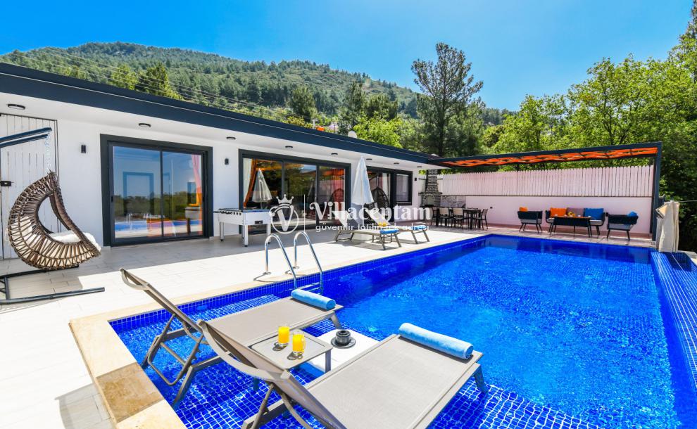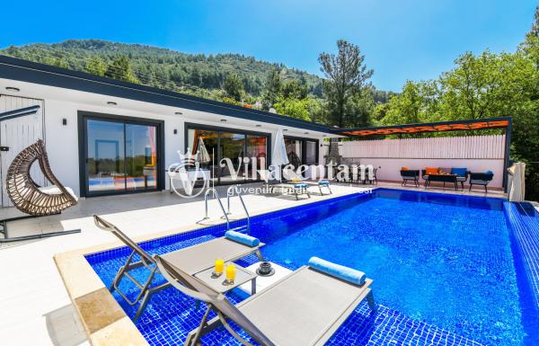 Villa Çakmak, Kalkan Üzümlü köyünde konumlanmakta olan yeşilliklerle kaplı doğa manzarasına hakim kiralık villalarımız arasında yer almaktadır. Modern ve konforlu bir şekilde dizayn edilen yazlık villamızda 2 adet yatak odası bulunmakta olup, 4 kişiye konaklama imkanı sağlamaktadır. Yatak odalarından bir tanesinin içerisinde tüm yılın vermiş olduğu yorgunluğu giderebileceğiniz jakuzi bulunmaktadır. Eğlenceli zaman geçirebilmeniz için villamızda langırt bulunmaktadır. Ferah bir havuz ve havuz terasına sahip yazlık villamız korunaklı hale getirilmiştir. Dışarıdan bir kimse tarafından görülmemesi nedeni ile muhafazakar aileler, balayı çiftleri ve arkadaş grupları rahatlıkla tercih edebilirler. Dış özel yüzme havuzuna entegre sığ havuz mevcuttur. Hayallerinizin de ötesinde sessizlik ve sakinlik içerisinde huzur dolu bir yazlık villada tatil için Villa Çakmak’ ı tercih edebilirsiniz.