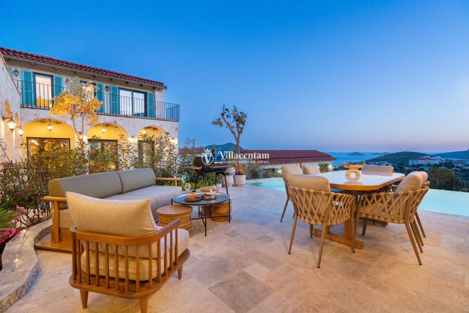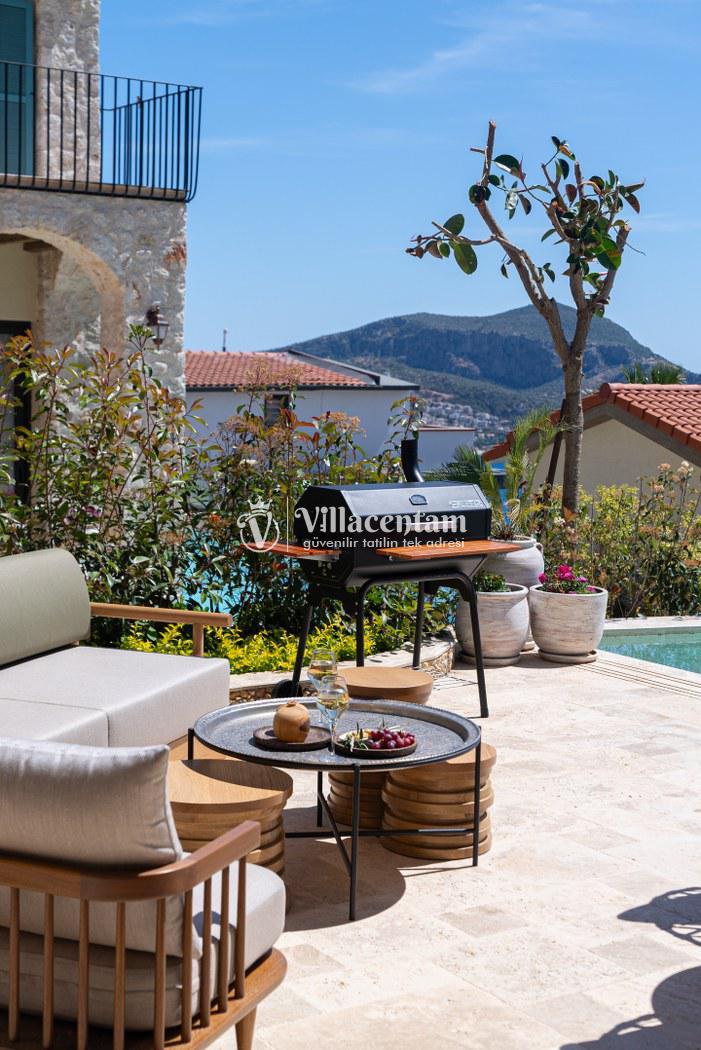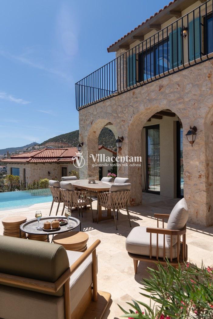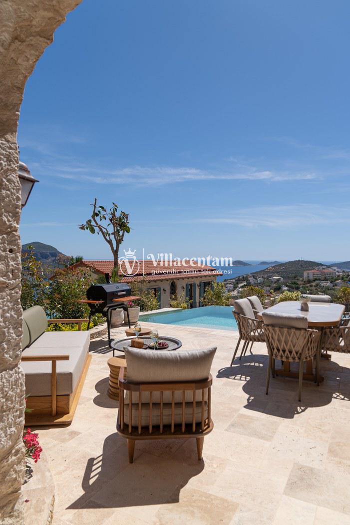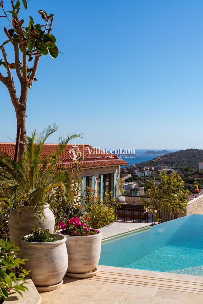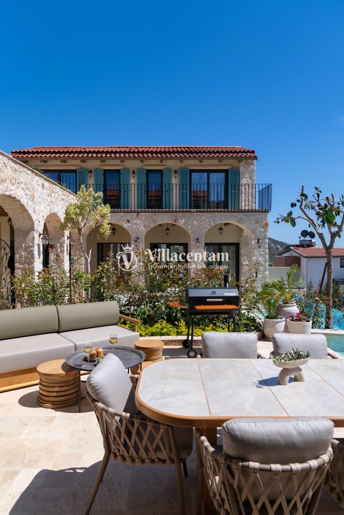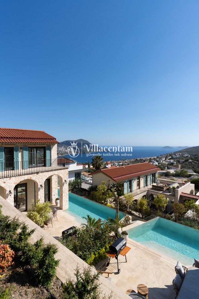 Villa Calliope, Kalkan Kızıltaş bölgesinde konumlanan, eşsiz deniz ve doğa manzarasına sahip lüks bir tatil villasıdır. 3 yatak odası, 4 banyosu ve 6 kişi konaklama kapasitesiyle aileler ve arkadaş grupları için konforlu bir tatil imkânı sunar. Modern mimarisi, geniş yaşam alanları, tam donanımlı mutfağı, özel havuzu, küveti ve keyifli veranda alanı ile misafirlerine ayrıcalıklı bir konaklama deneyimi yaşatır. Şehir merkezine yakın konumu sayesinde hem huzurlu hem de ulaşımı kolay bir tatil arayanlar için ideal bir seçenektir.