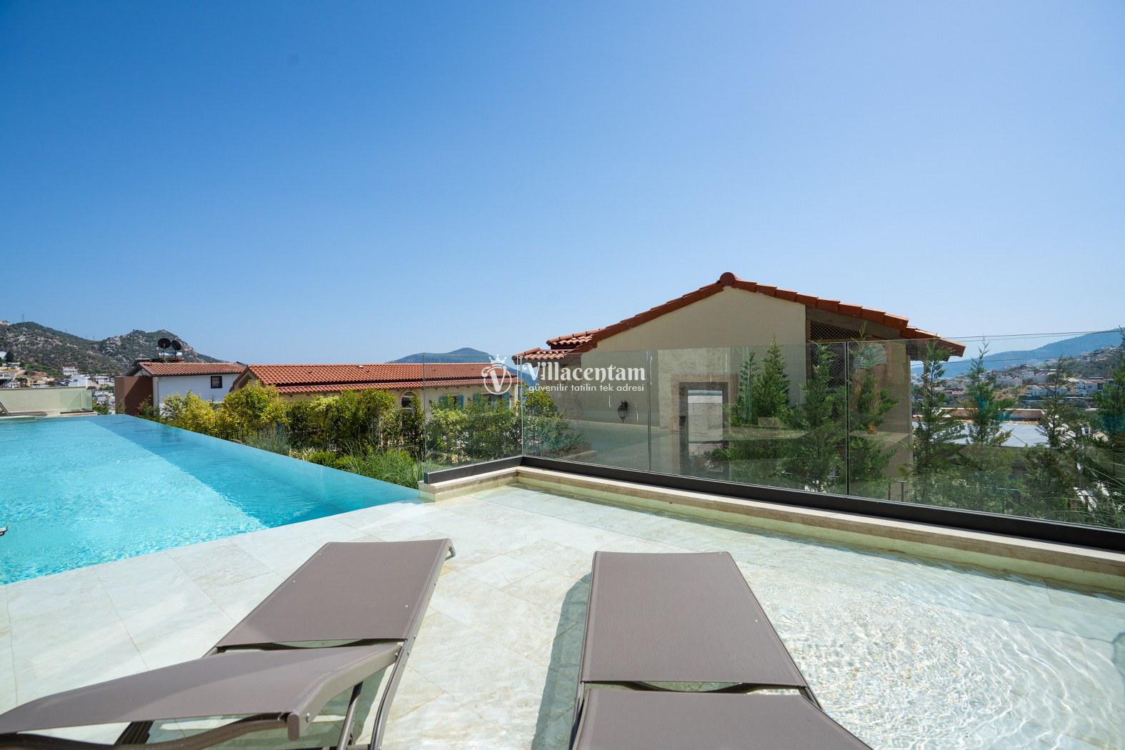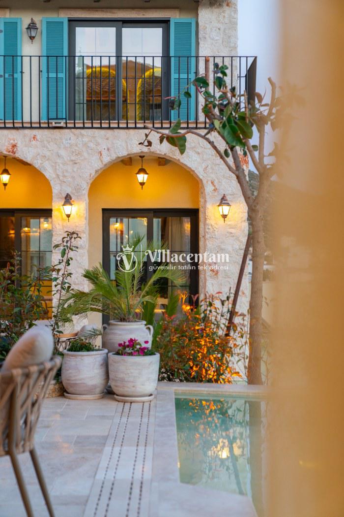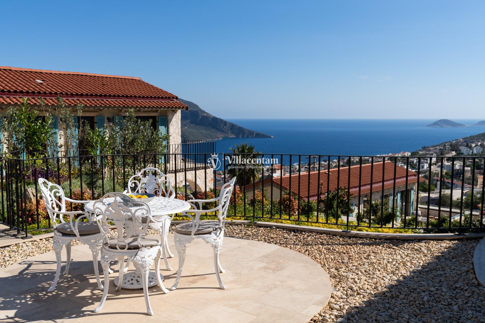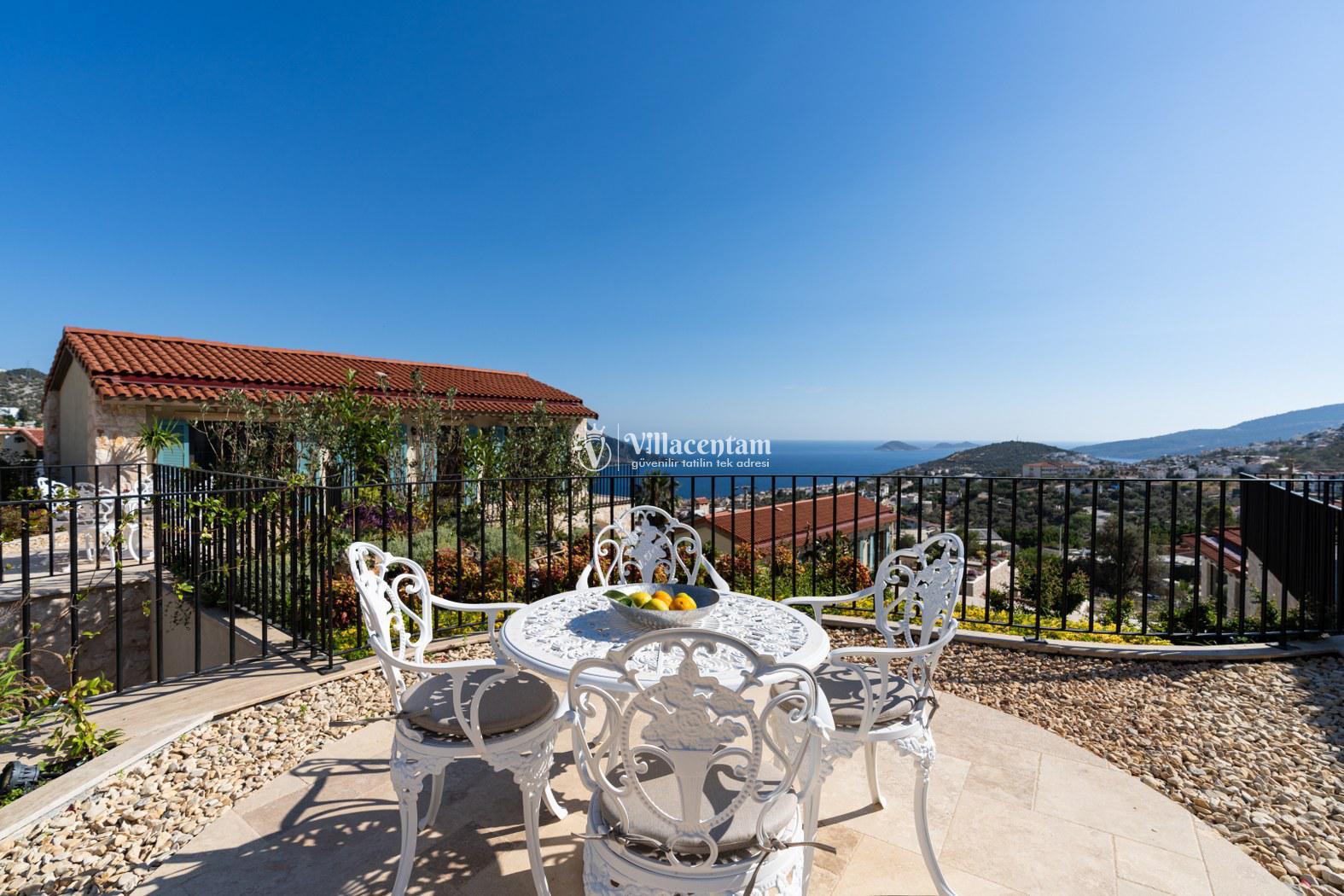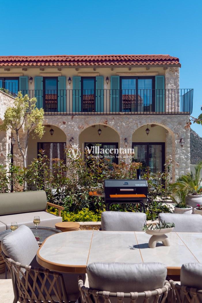 Villa Calliope, Kalkan Kızıltaş bölgesinde konumlanan, eşsiz deniz ve doğa manzarasına sahip lüks bir tatil villasıdır. 3 yatak odası, 4 banyosu ve 6 kişi konaklama kapasitesiyle aileler ve arkadaş grupları için konforlu bir tatil imkânı sunar. Modern mimarisi, geniş yaşam alanları, tam donanımlı mutfağı, özel havuzu, küveti ve keyifli veranda alanı ile misafirlerine ayrıcalıklı bir konaklama deneyimi yaşatır. Şehir merkezine yakın konumu sayesinde hem huzurlu hem de ulaşımı kolay bir tatil arayanlar için ideal bir seçenektir.